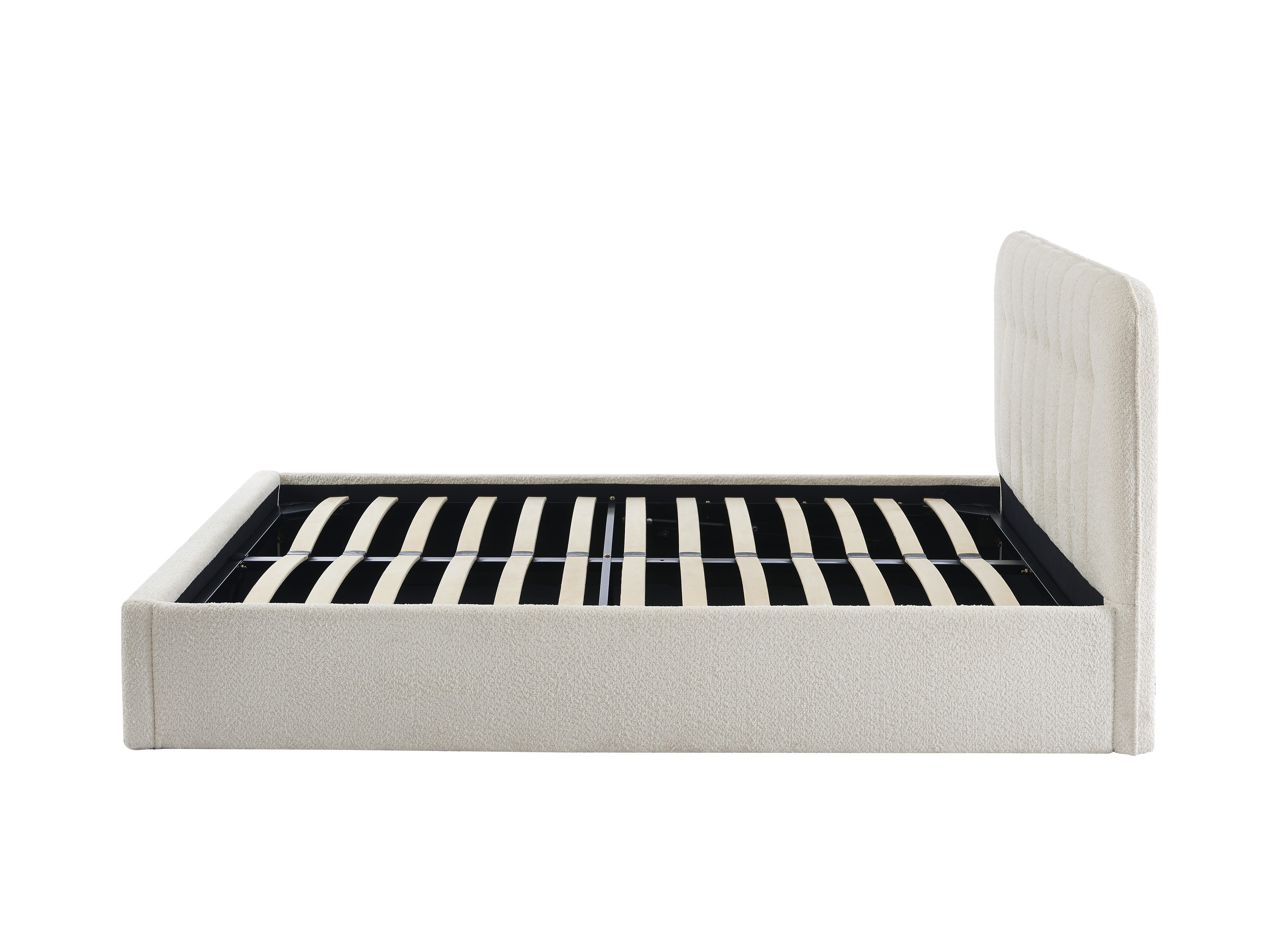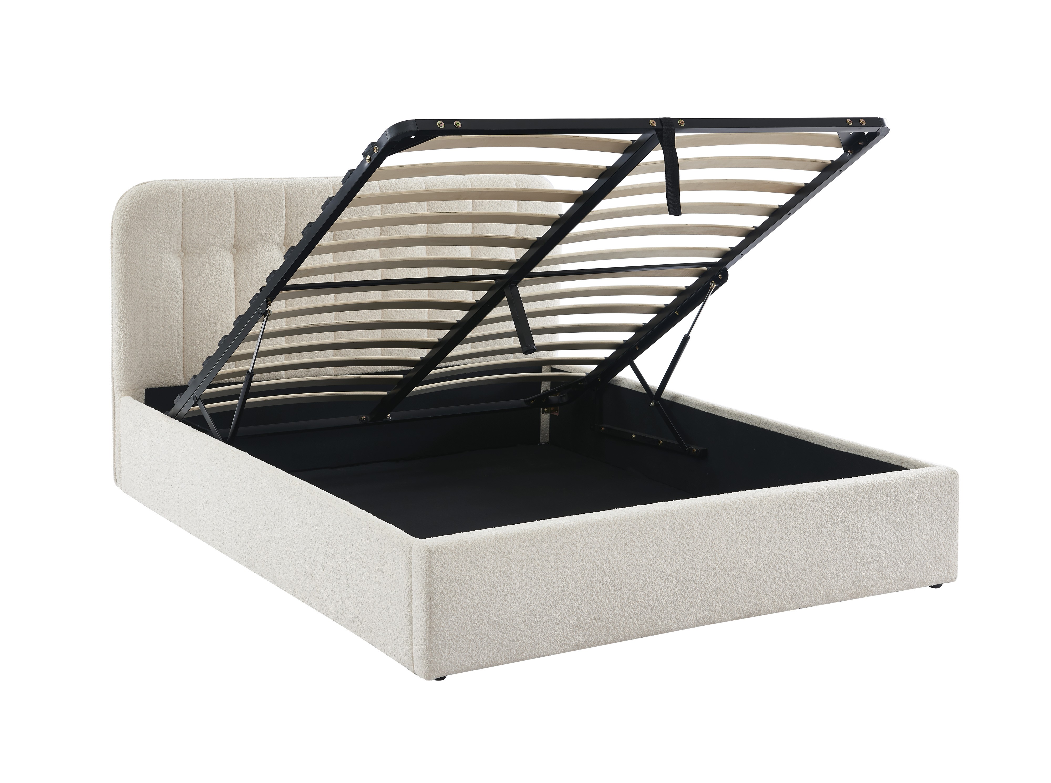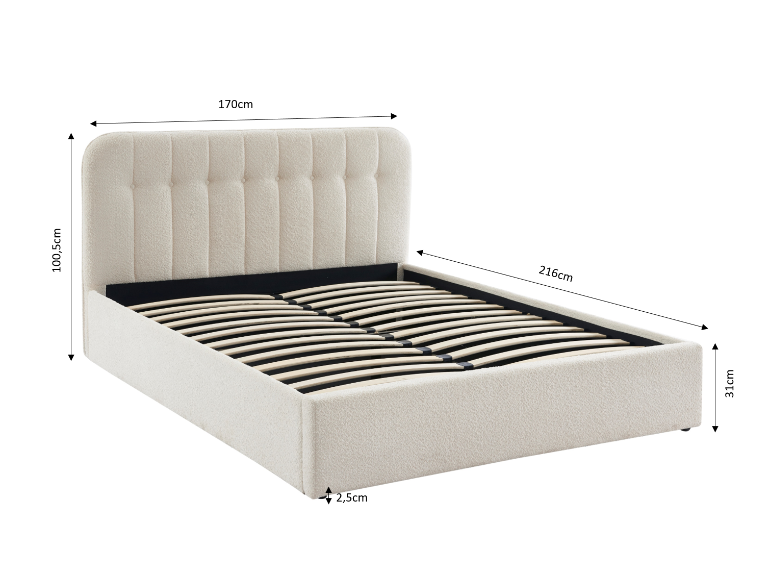 Lit coffre ANDRE tissu bouclettes écru 160x200 sommier inclus