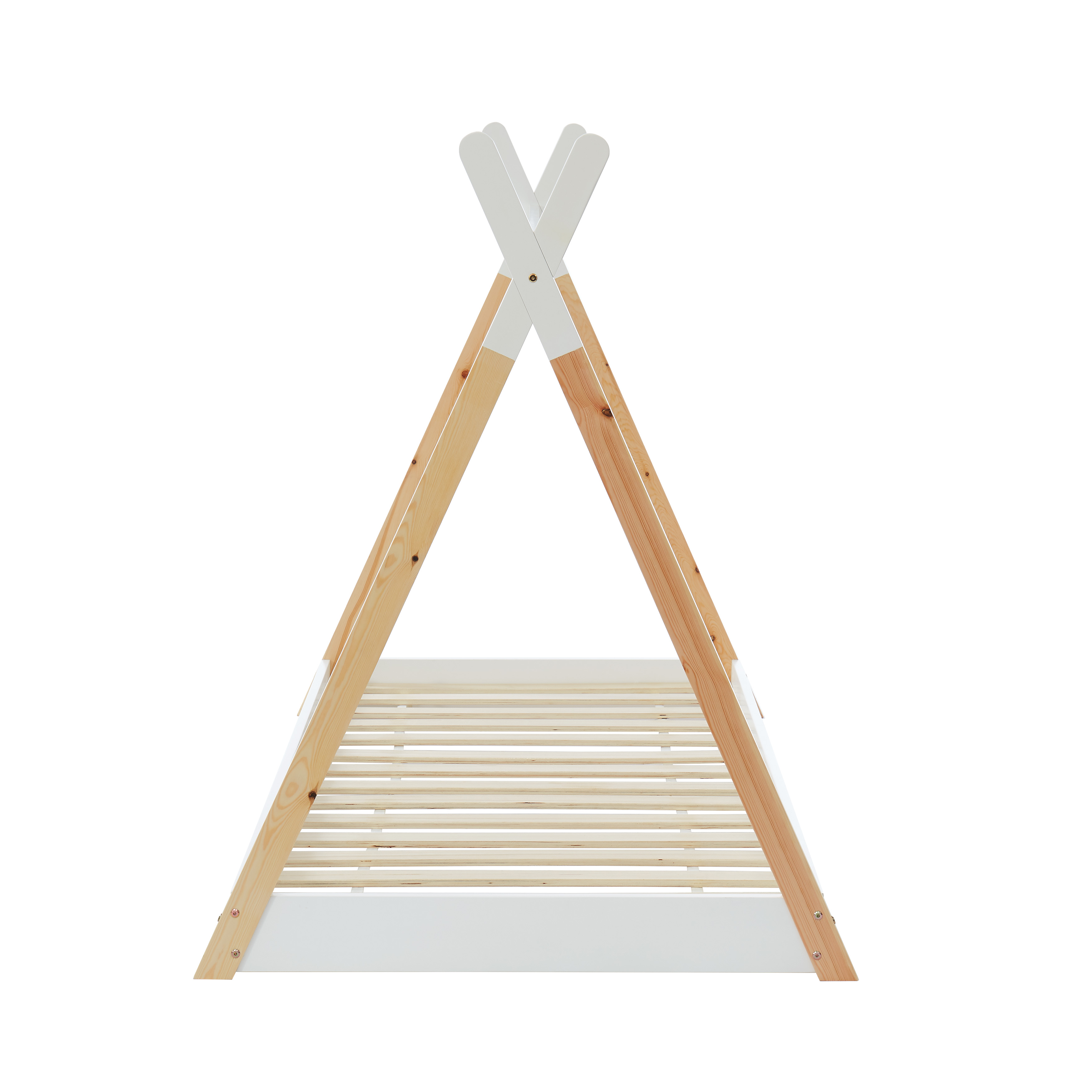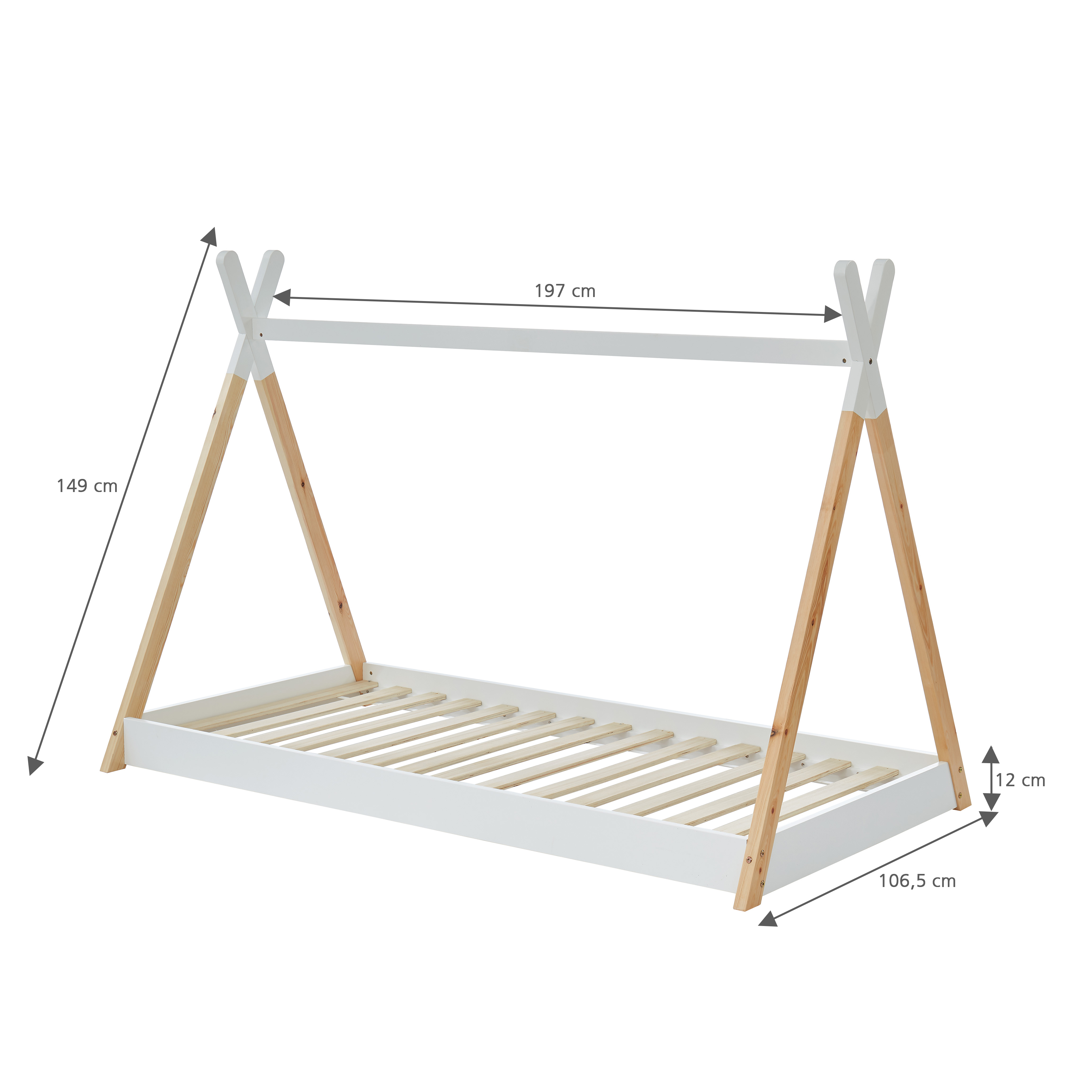 Lit enfant tipi TINY en pin blanc avec sommier inclus - dimensions du lit : 197 x 106,5 x 136,5 cm - dimensions couchage : 90 x 190 cm