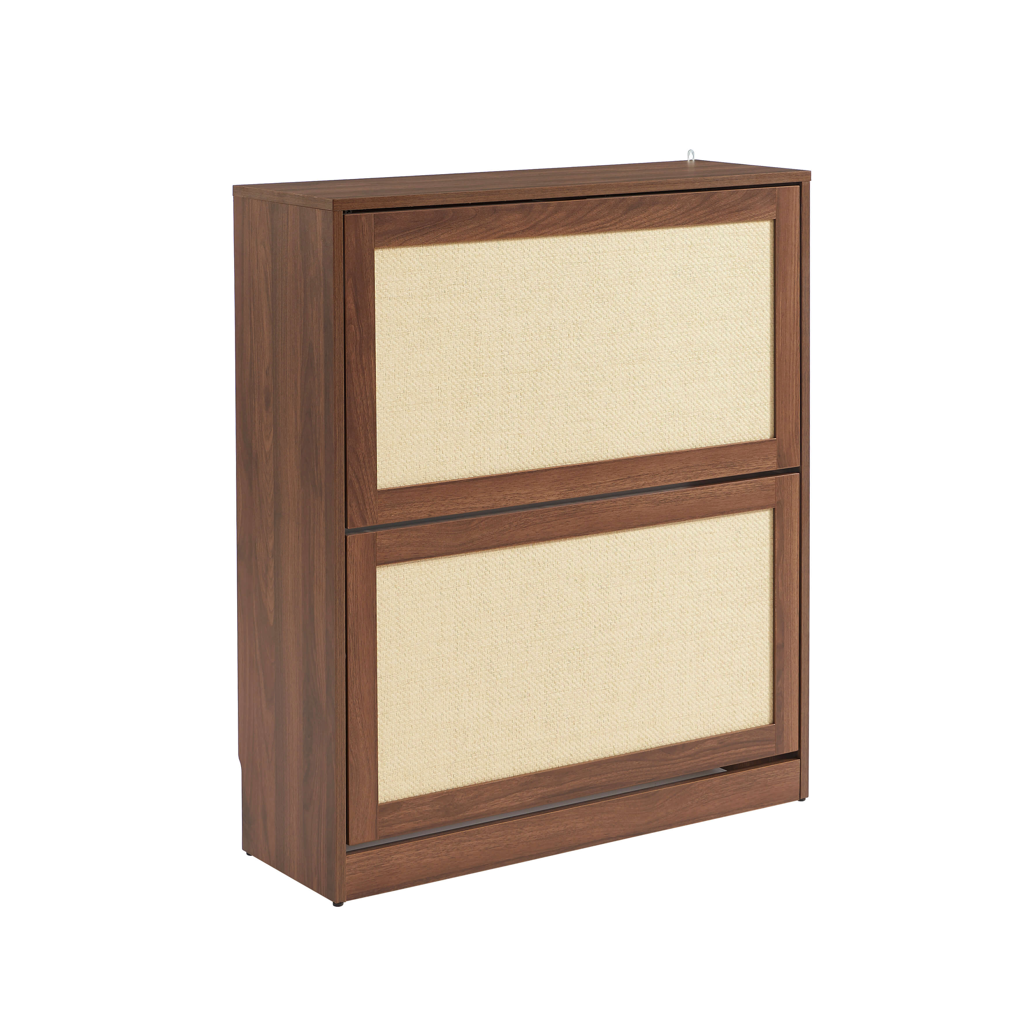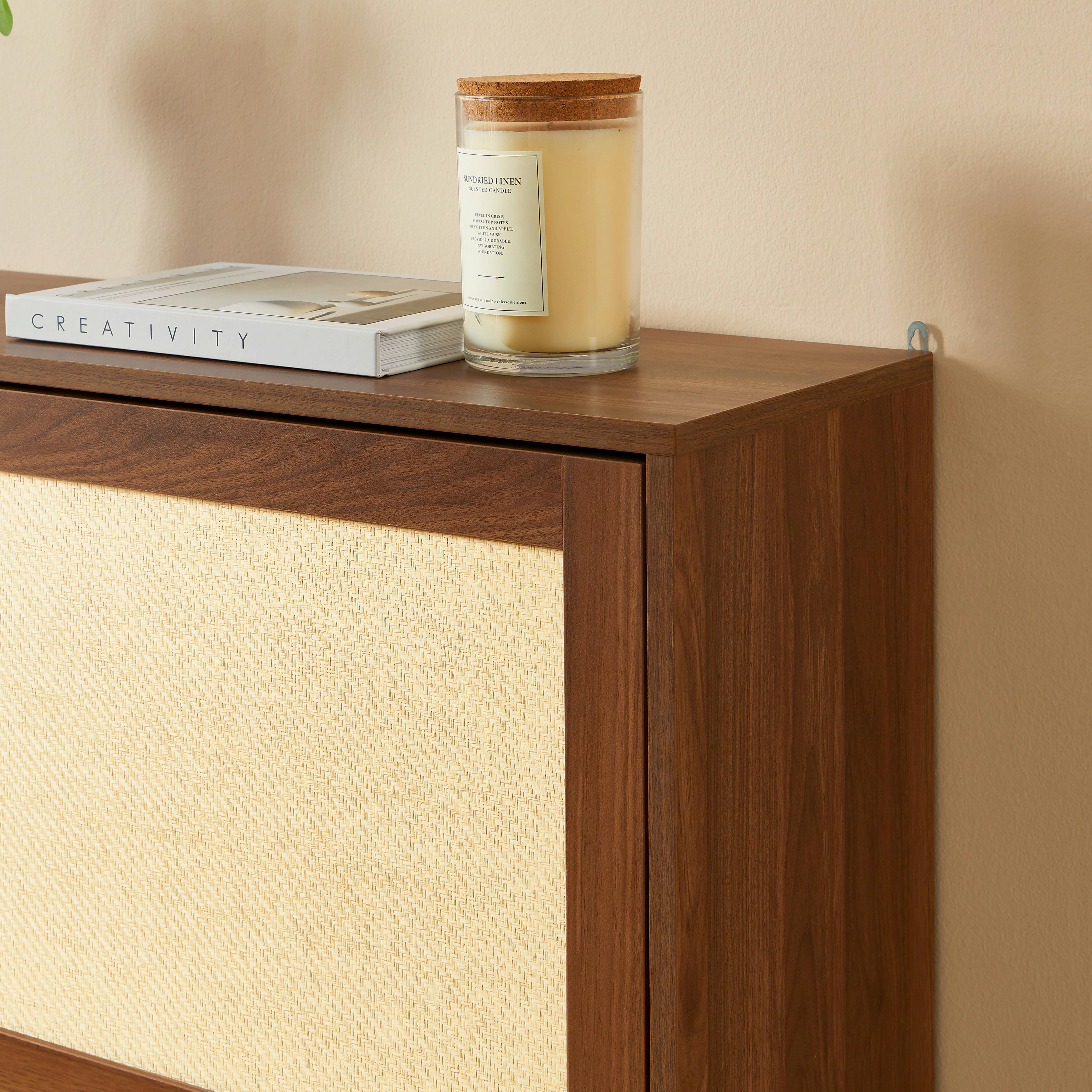 Le meuble à chaussures HARIA séduit par son revêtement effet noyer et ses portes habillées de rotin, qui apporteront du caractère et une ambiance naturelle à votre intérieur. Parfait pour une décoration bohème, vintage ou scandinave, il habille élégamment une entrée ou un couloir tout en restant discret.