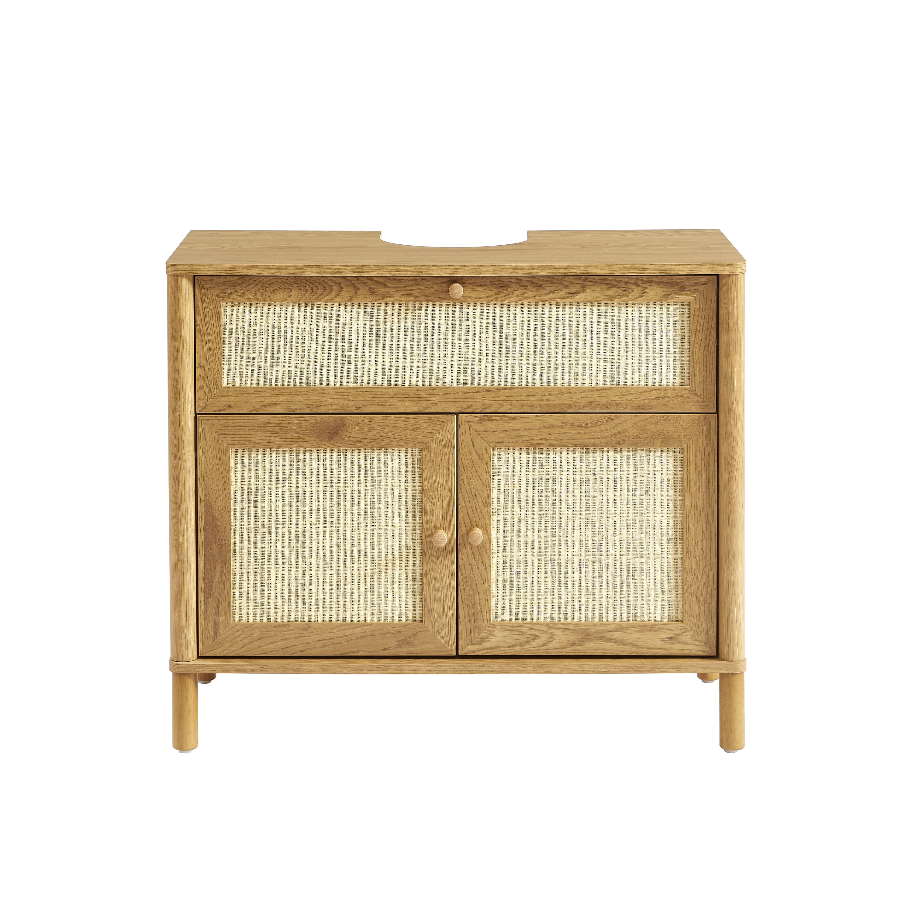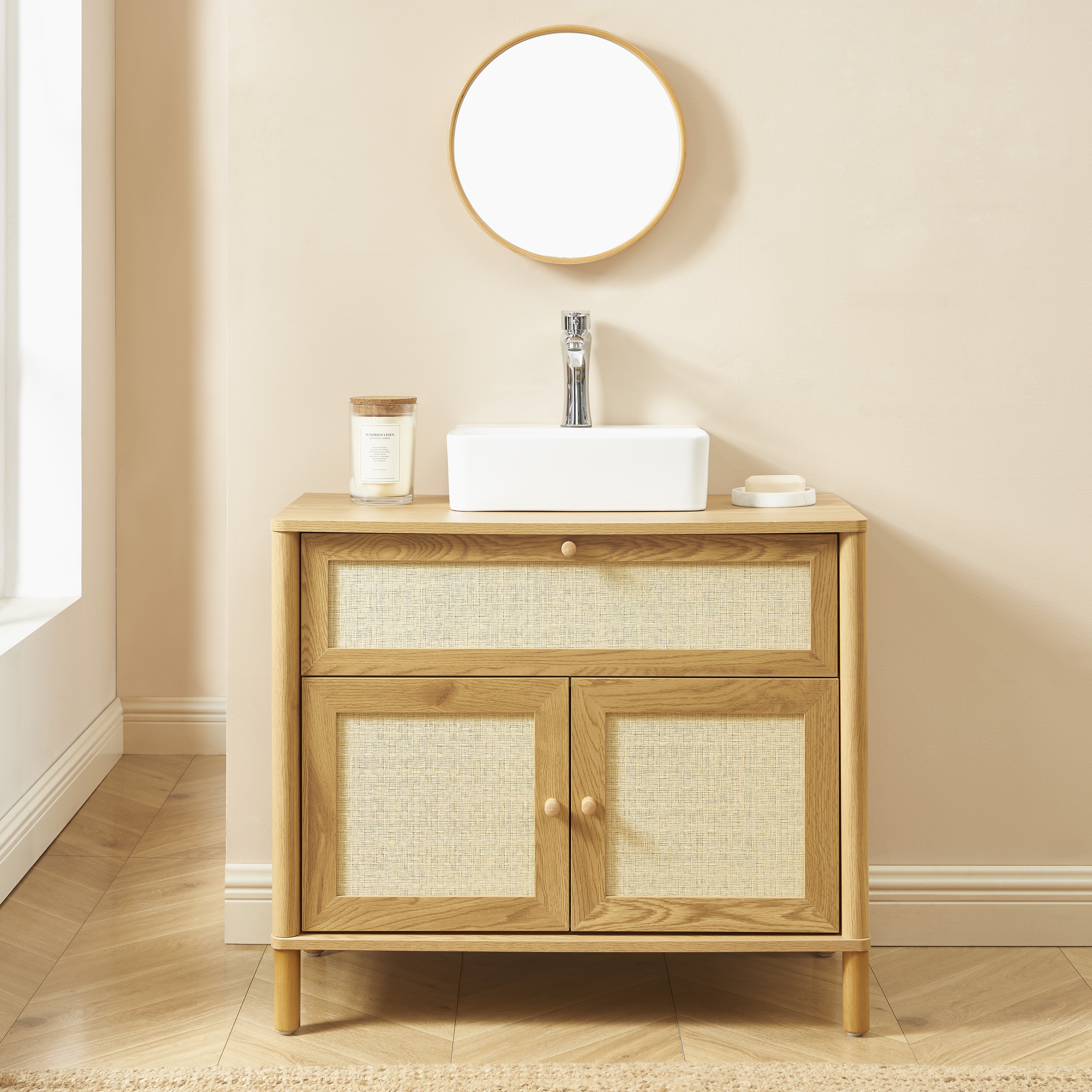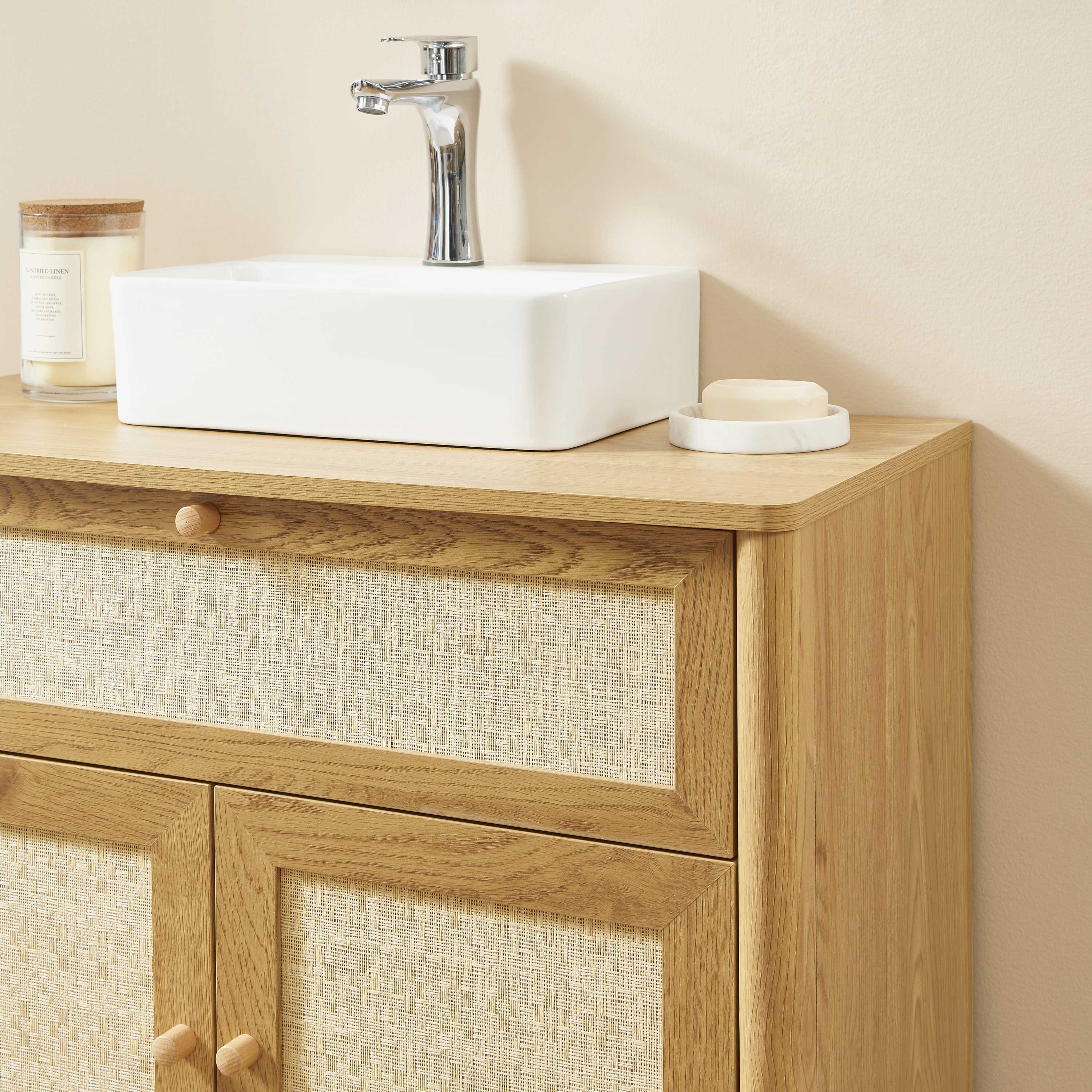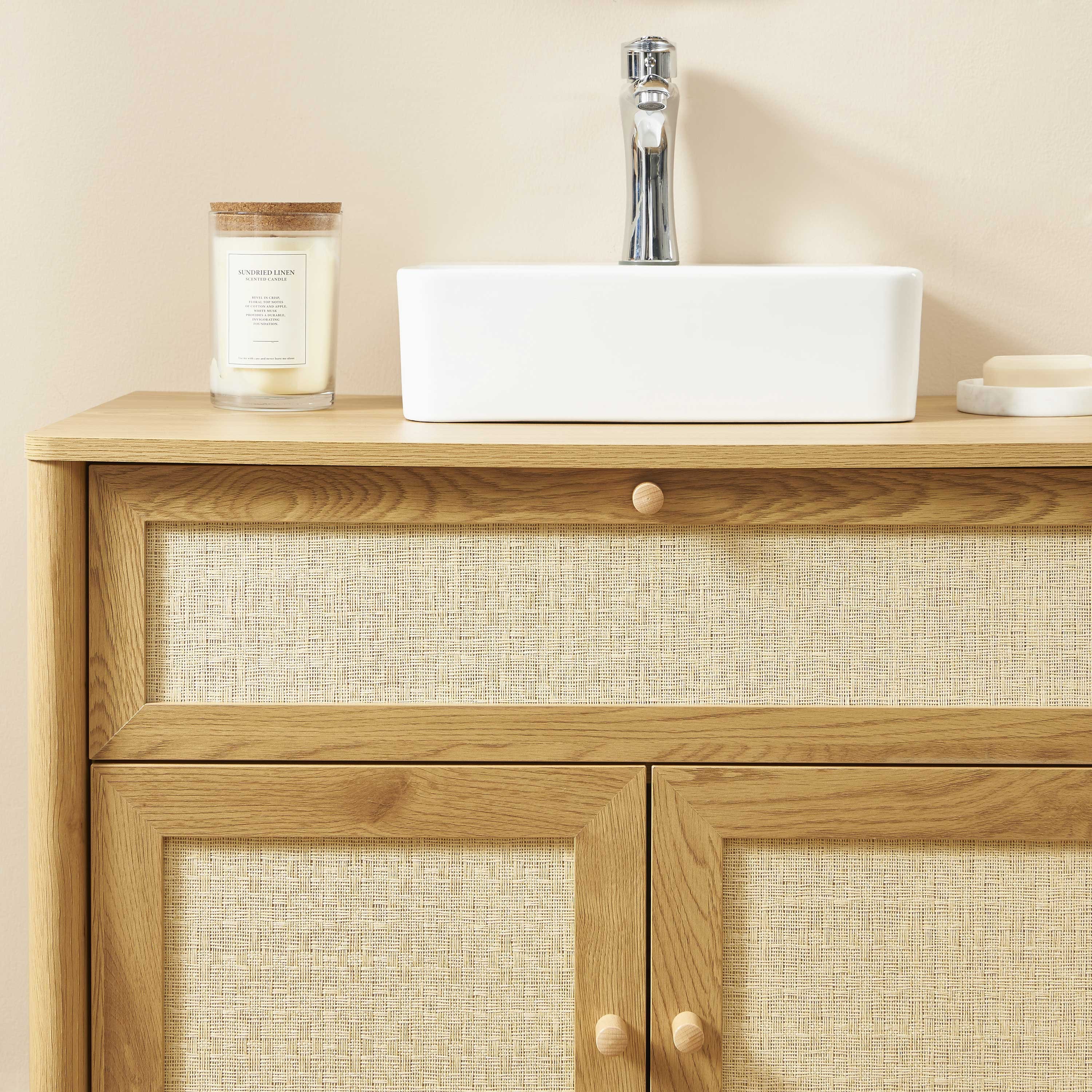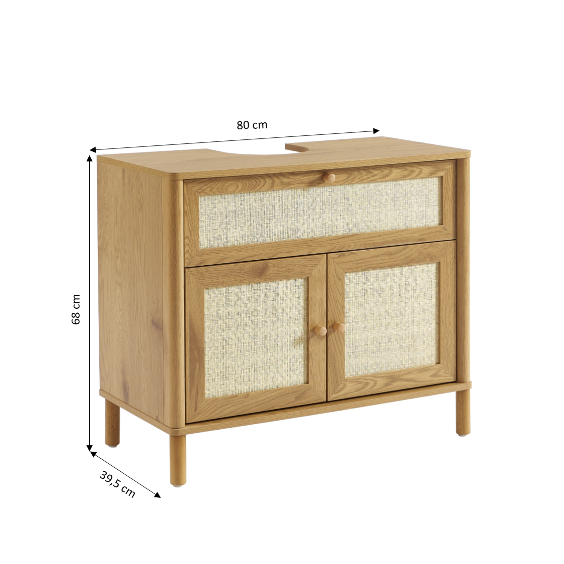 Meuble de salle de bain HAIDA effet chêne et rotin 80cm