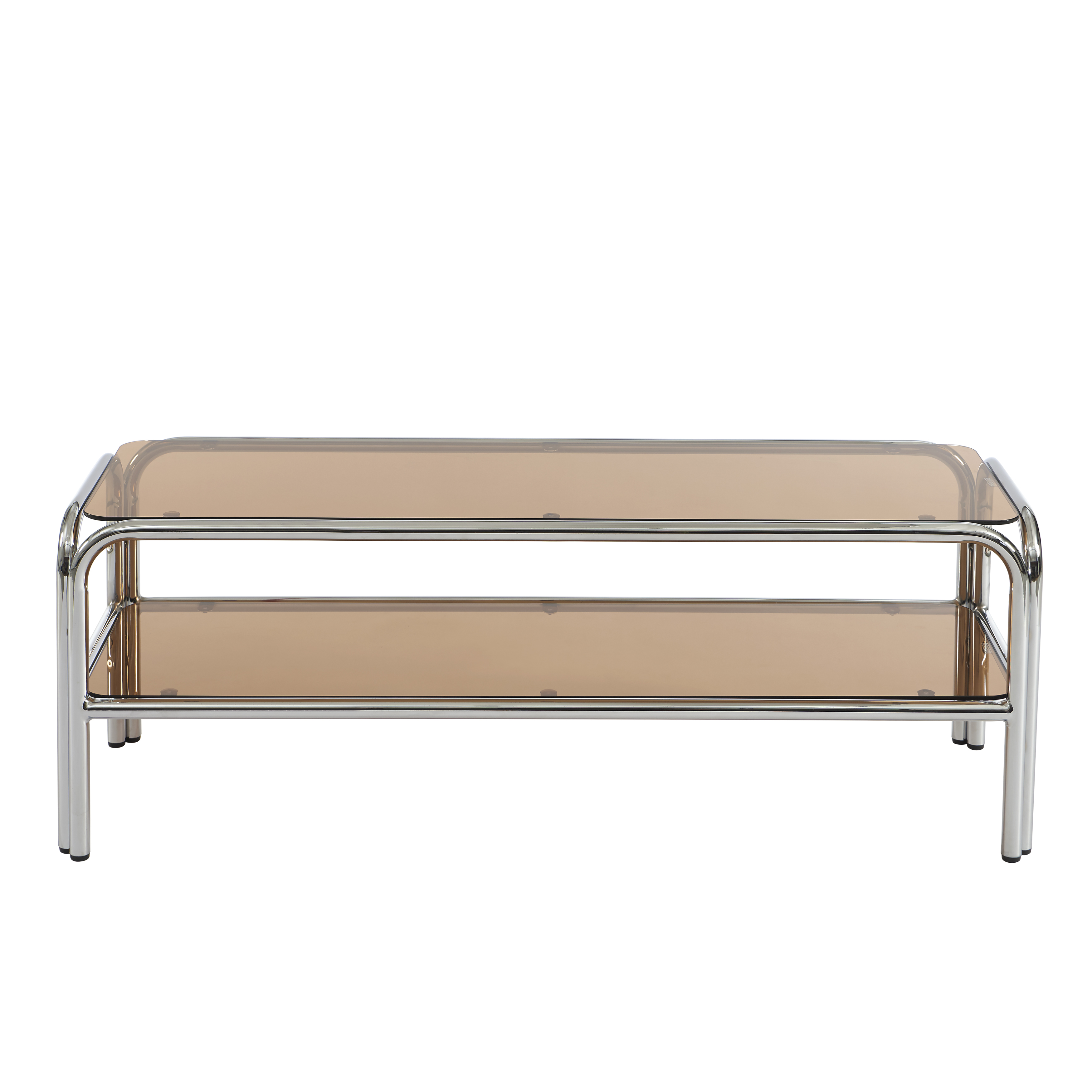 Meuble TV MAGGY verre trempé orange foncé et structure en chrome