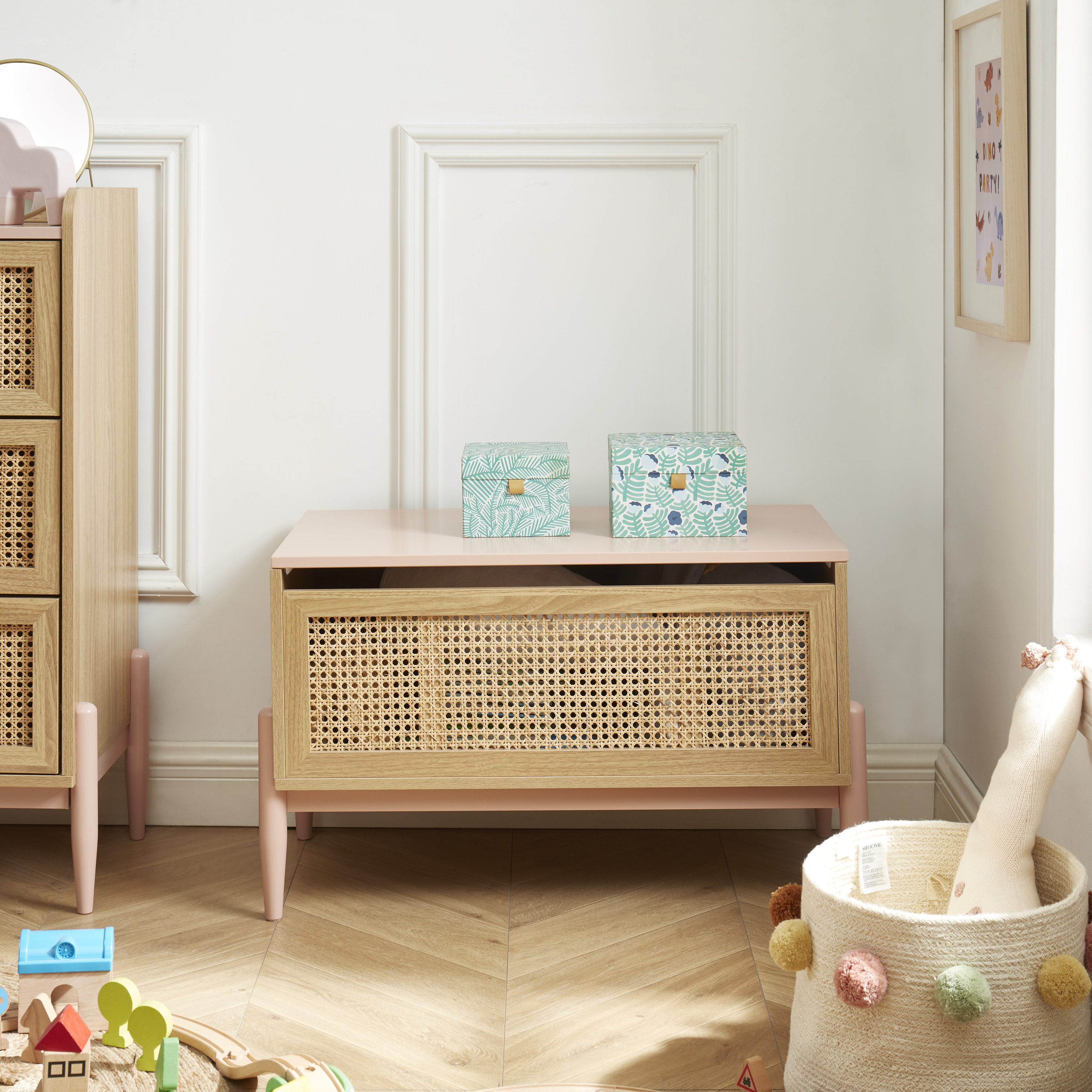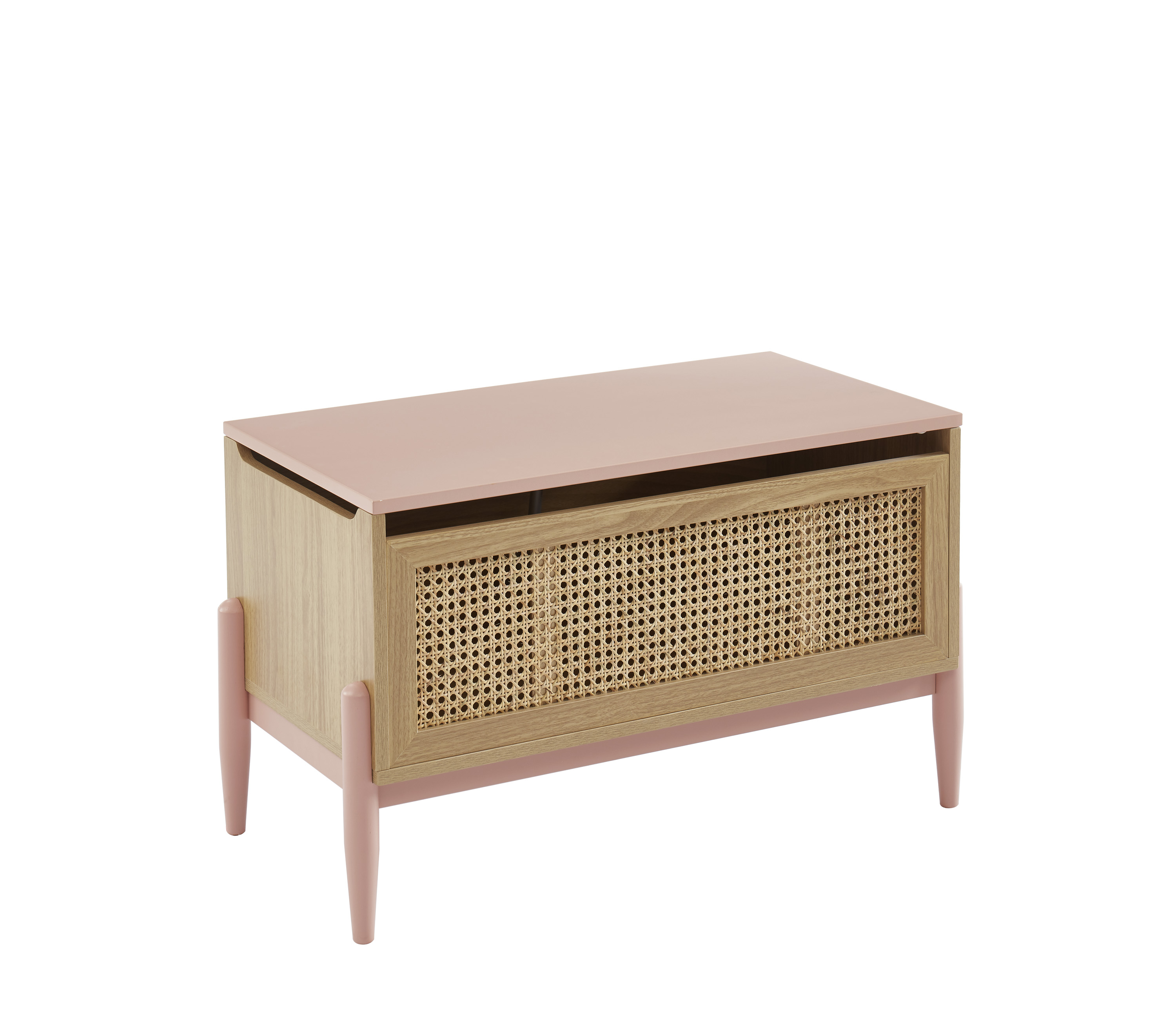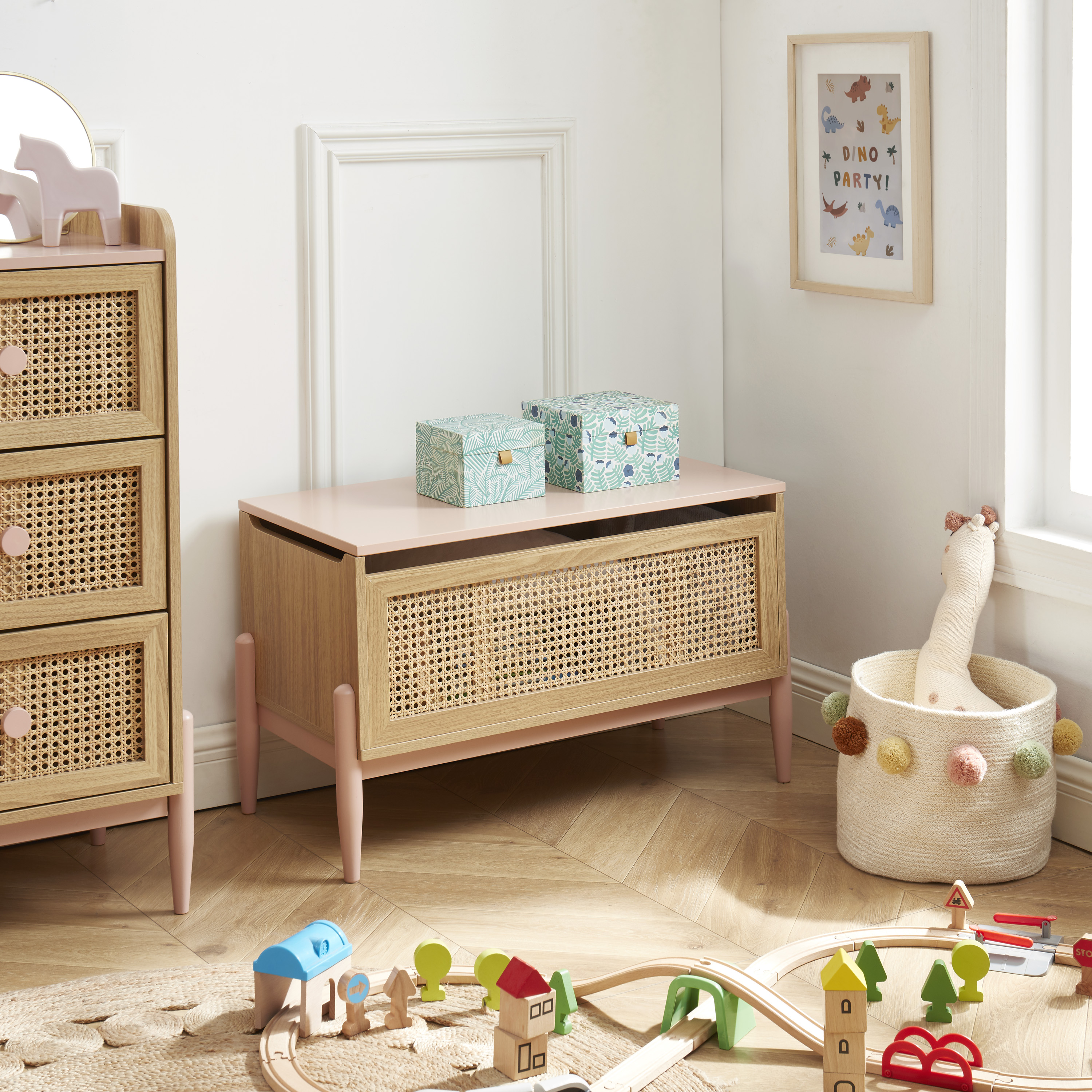 Coffre à jouet PABLO rose et cannage rotin