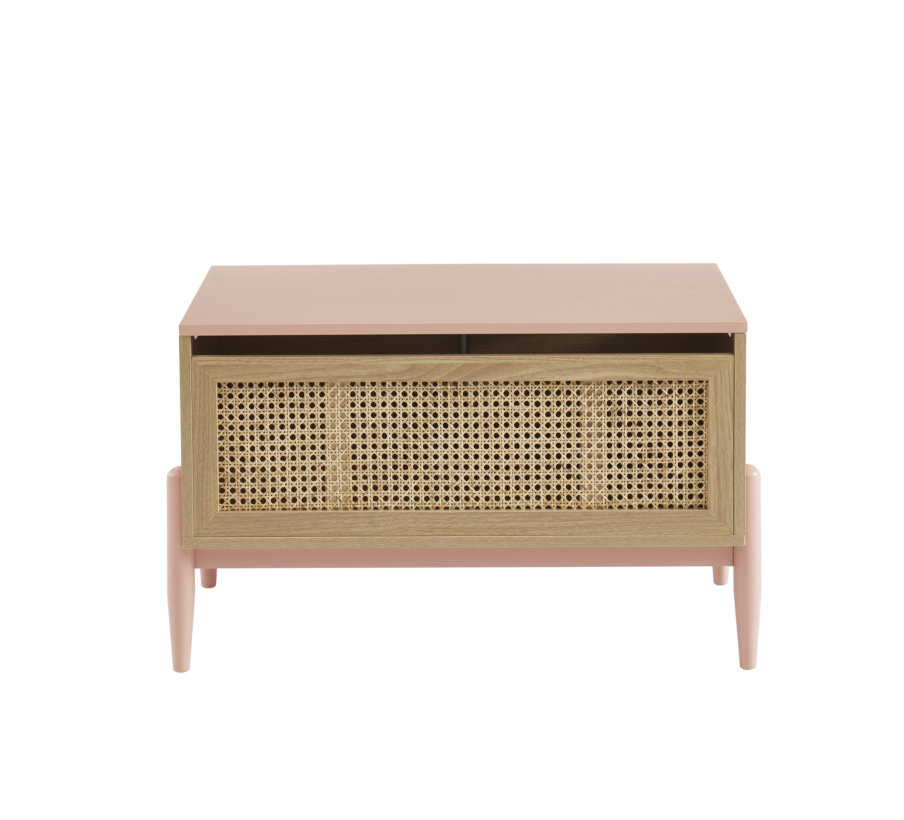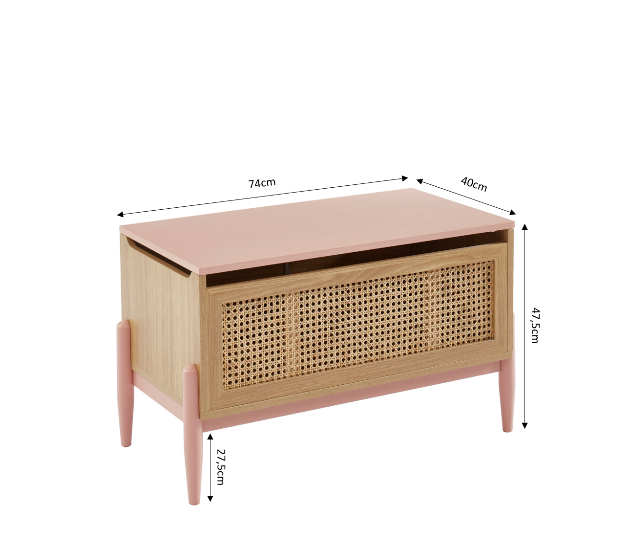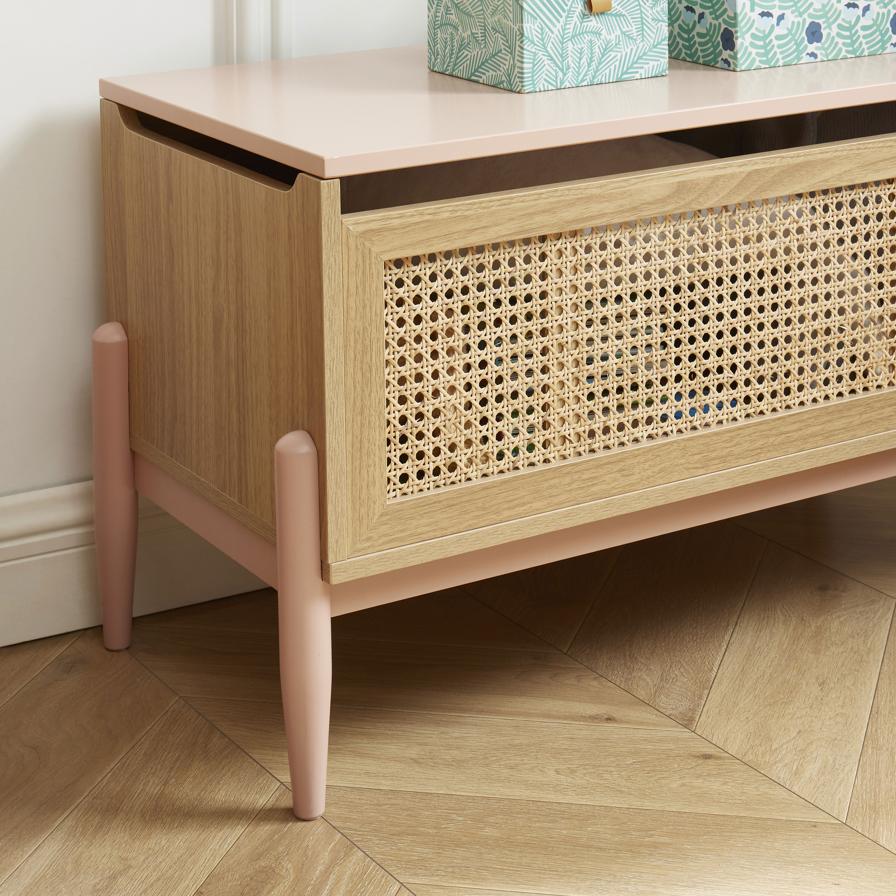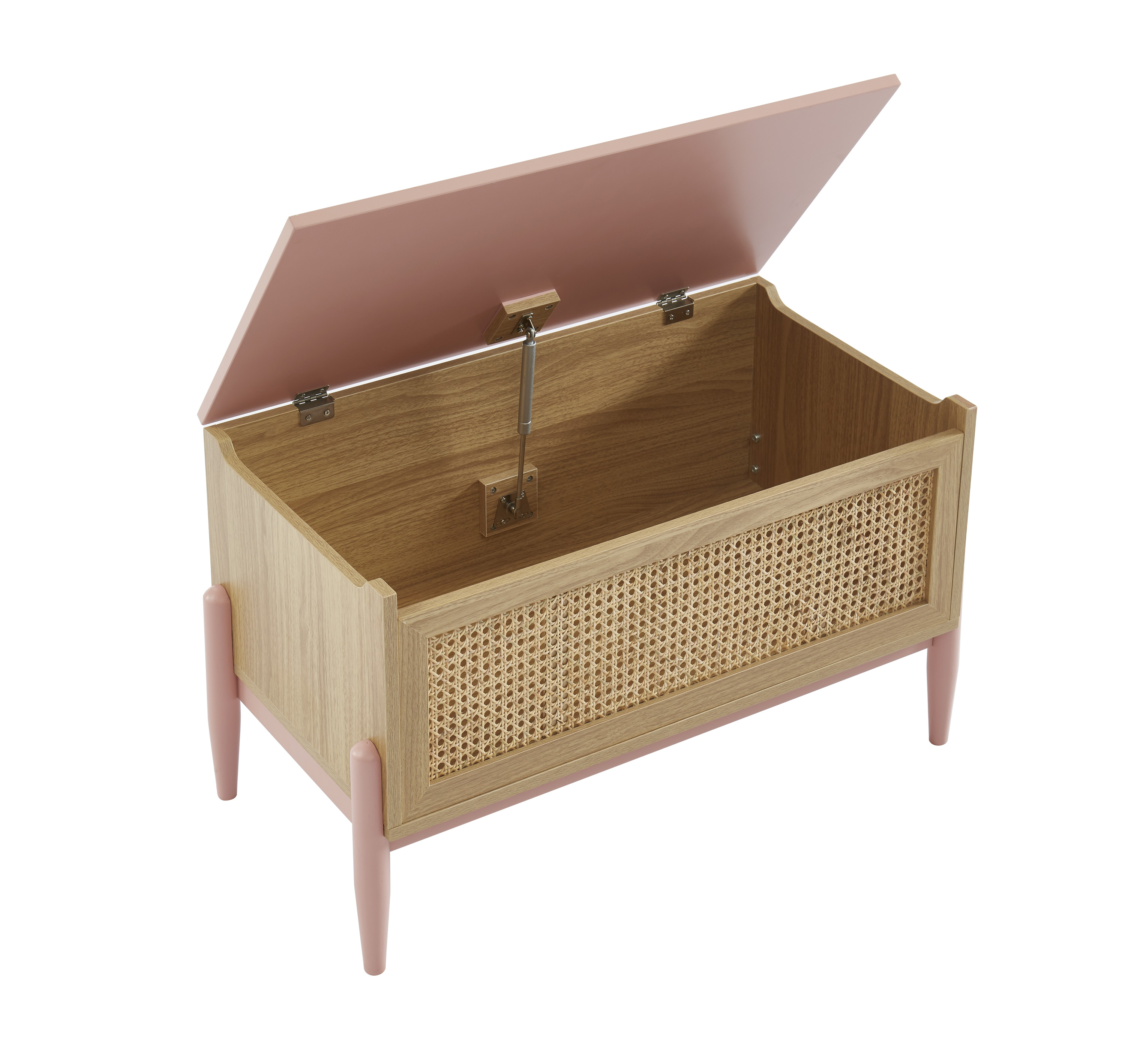 Coffre à jouet PABLO rose et cannage rotin