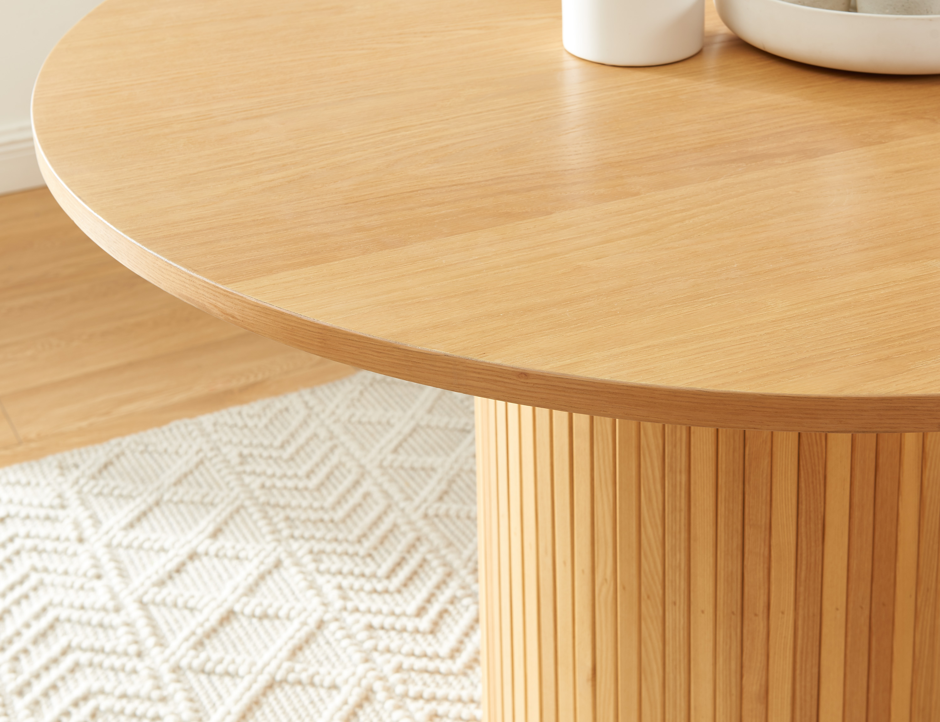 Envie d'une table ronde dans votre salle à manger pour plus de convivialité ? Optez pour notre table ERNEST. Avec ses courbes arrondies et son pieds central en placage frêne, cette table à manger apportera un vrai cachet à votre pièce à vivre.