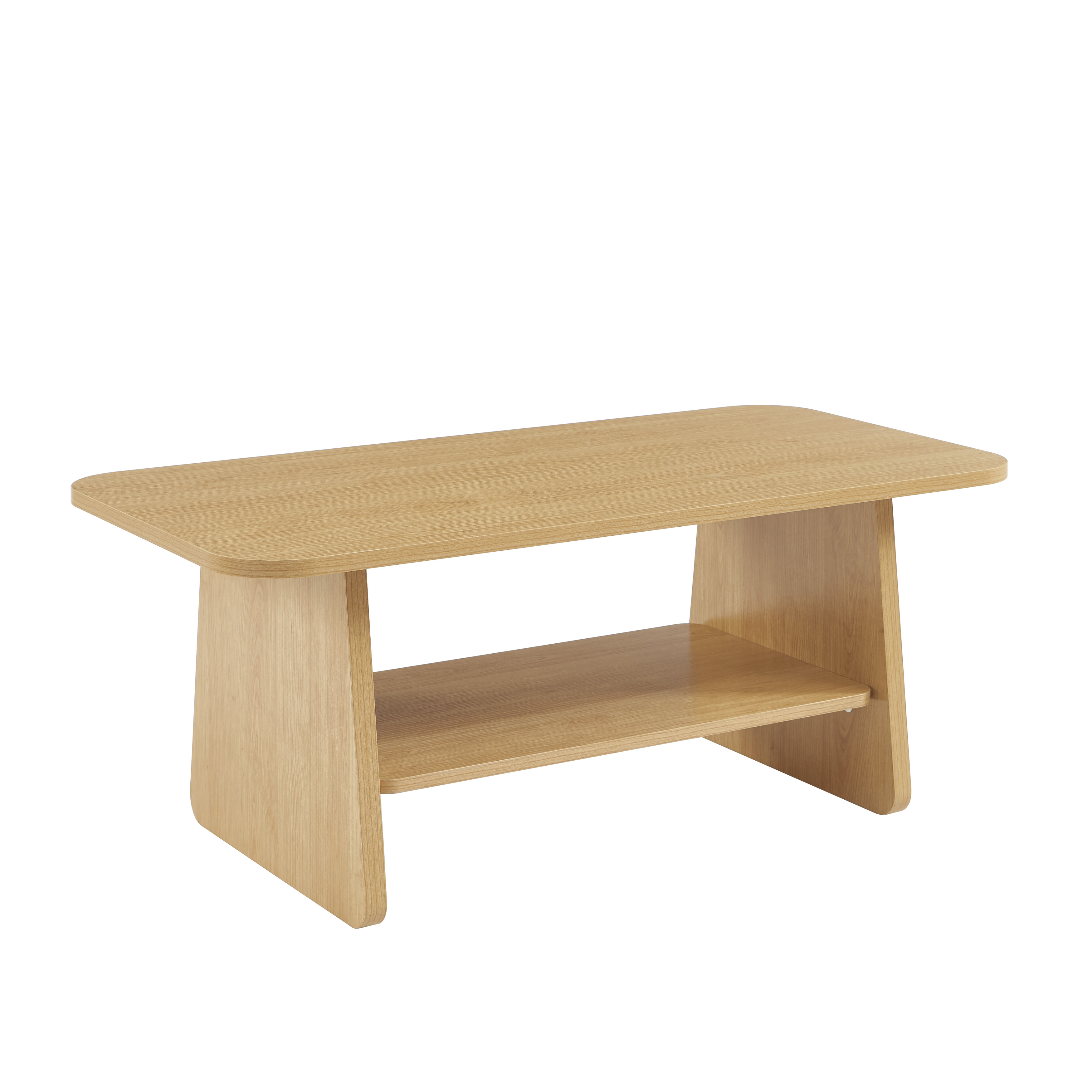 La table basse LANGO séduit par son design effet bois et son piètement asymétrique. Avec son double plateau pratique, elle allie design et fonctionnalité dans un format compact.