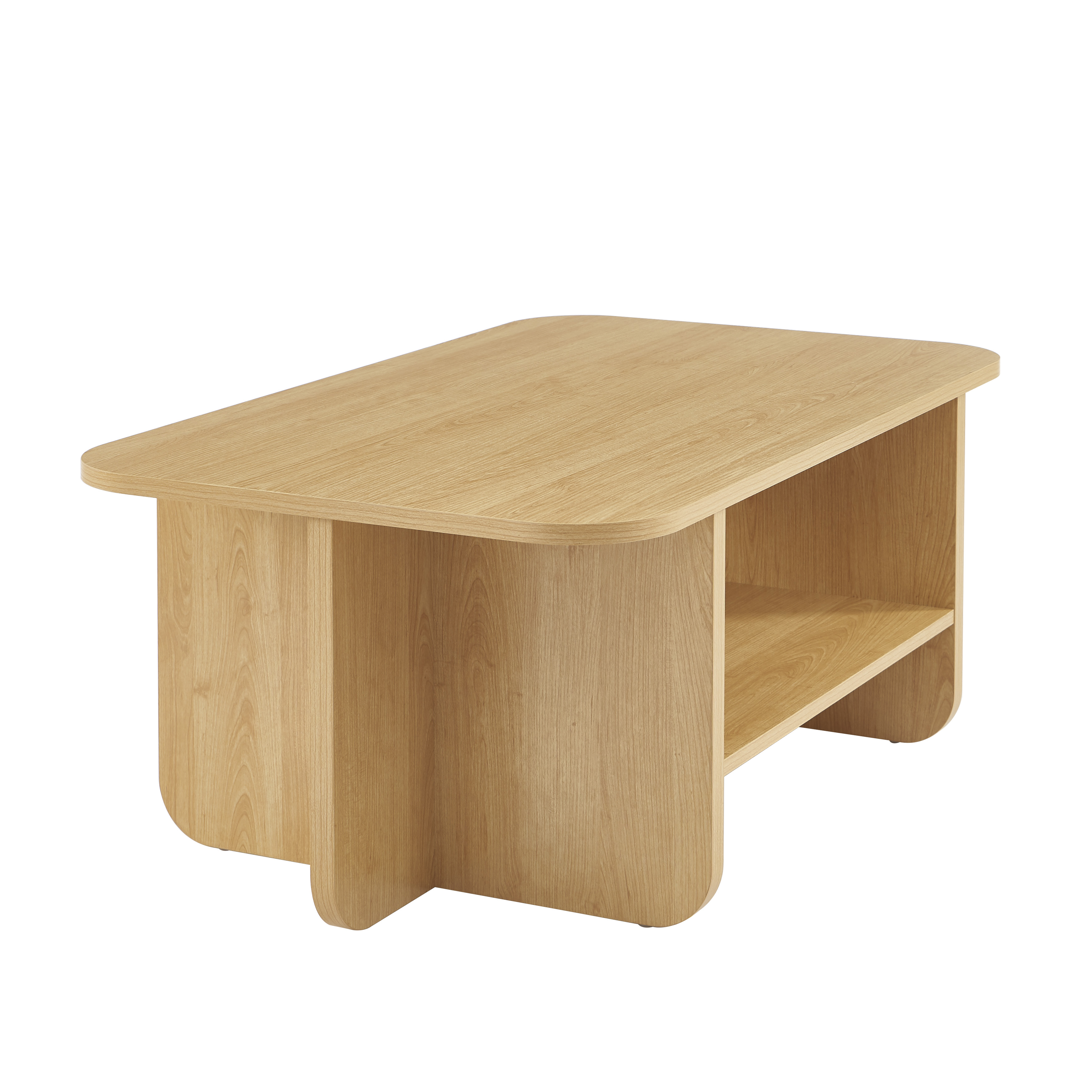 Avec ses lignes arrondies et son look effet chêne, la table basse ROKIA deviendra un indispensable de votre salon.