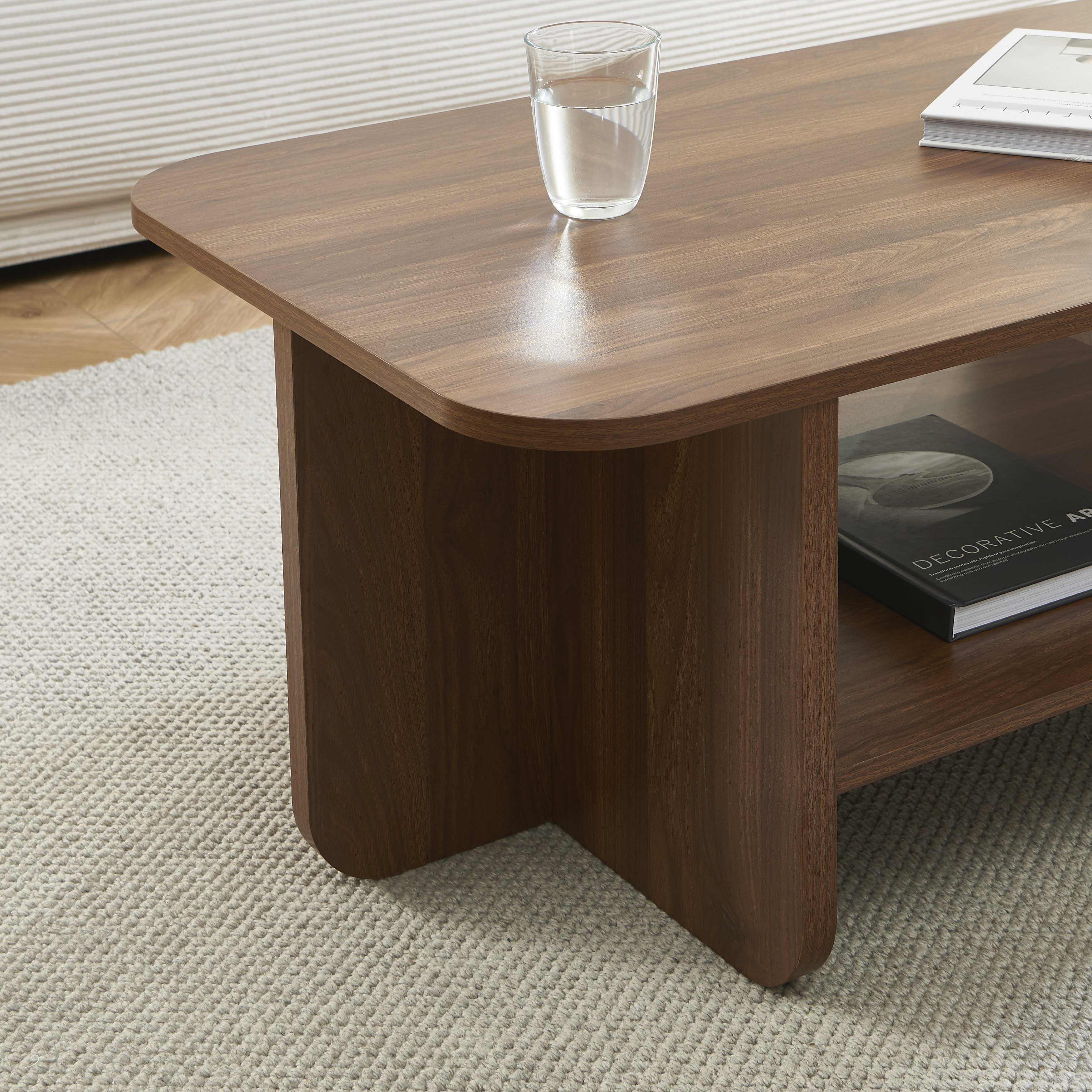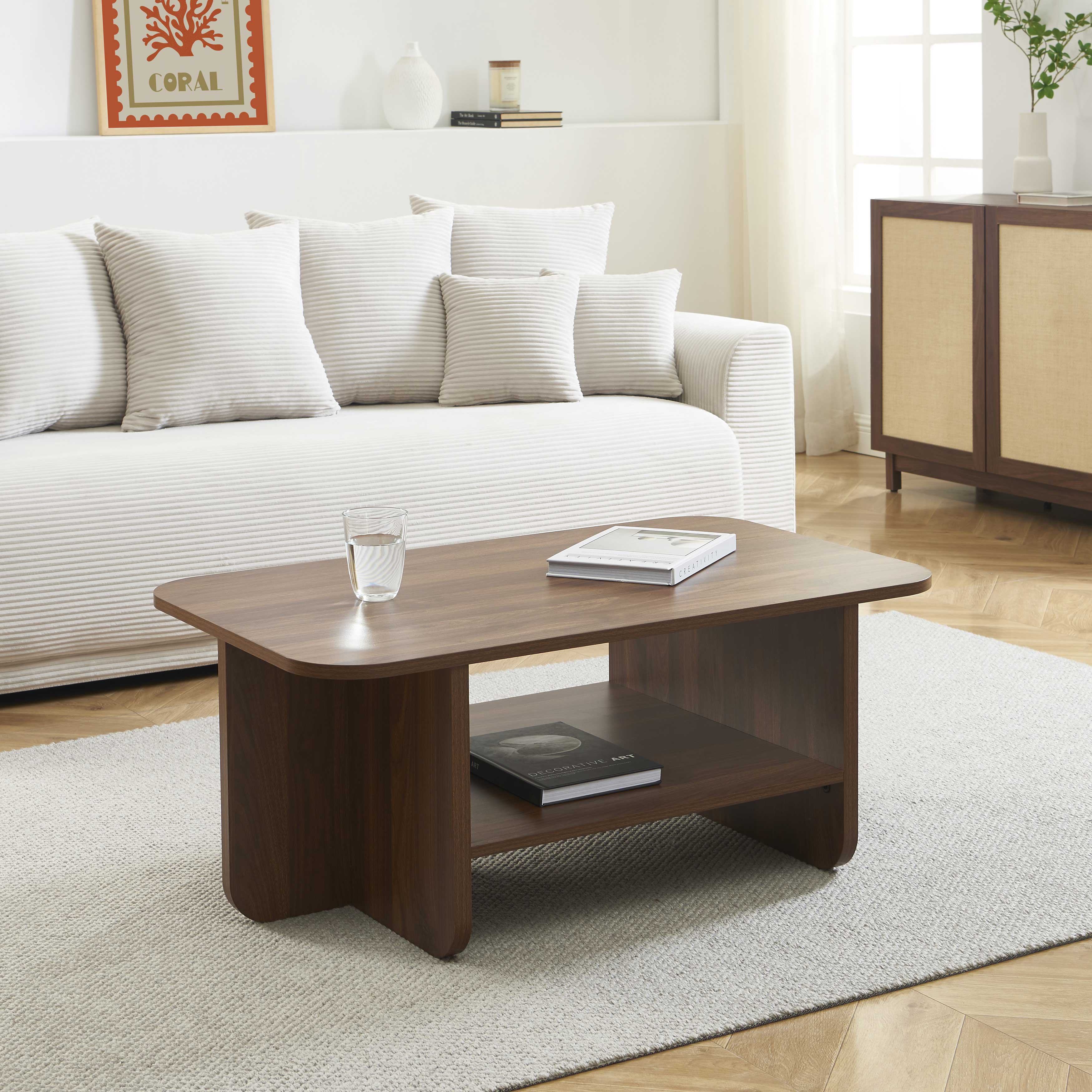 Avec ses lignes arrondies et son look effet noyer, la table basse ROKIA deviendra un indispensable de votre salon.