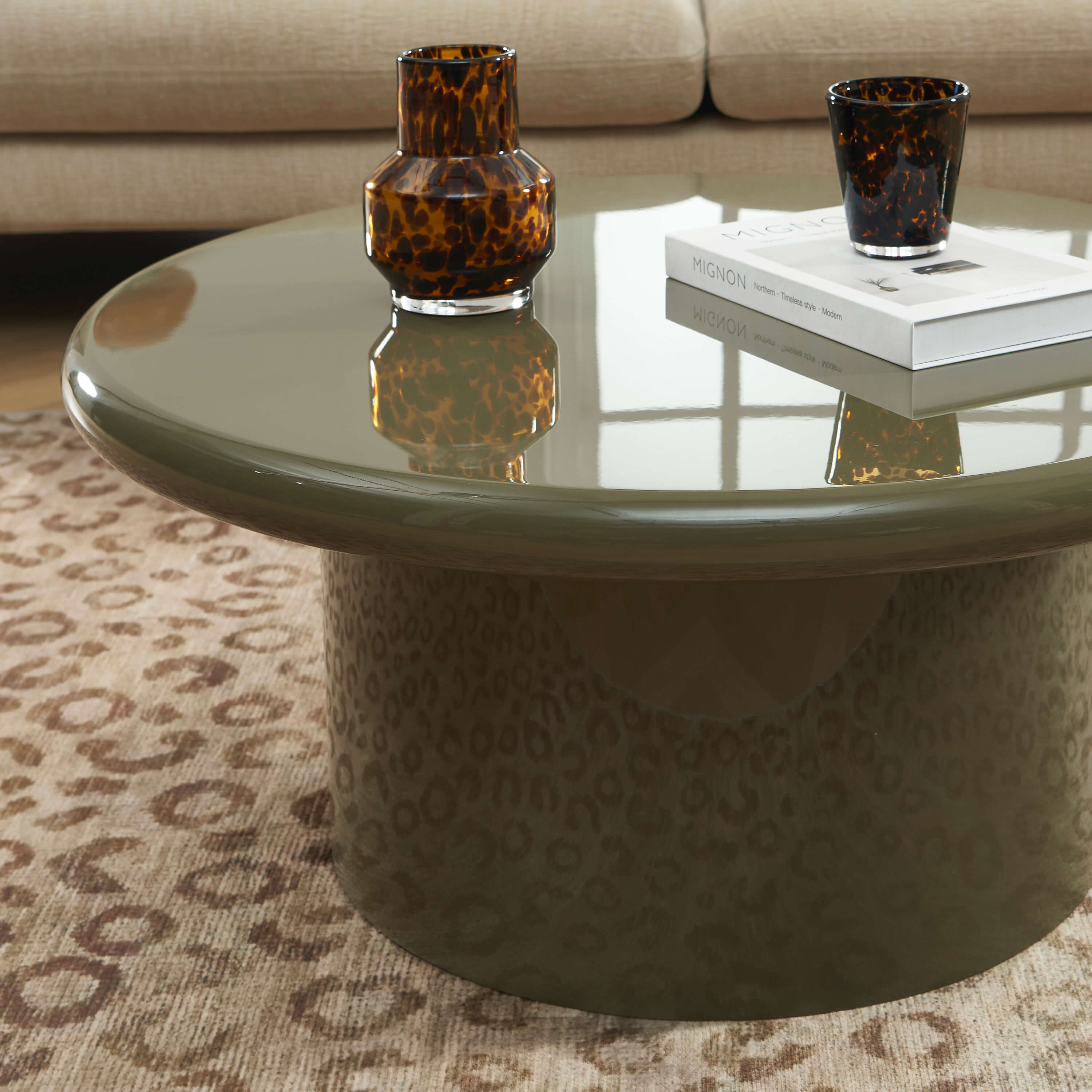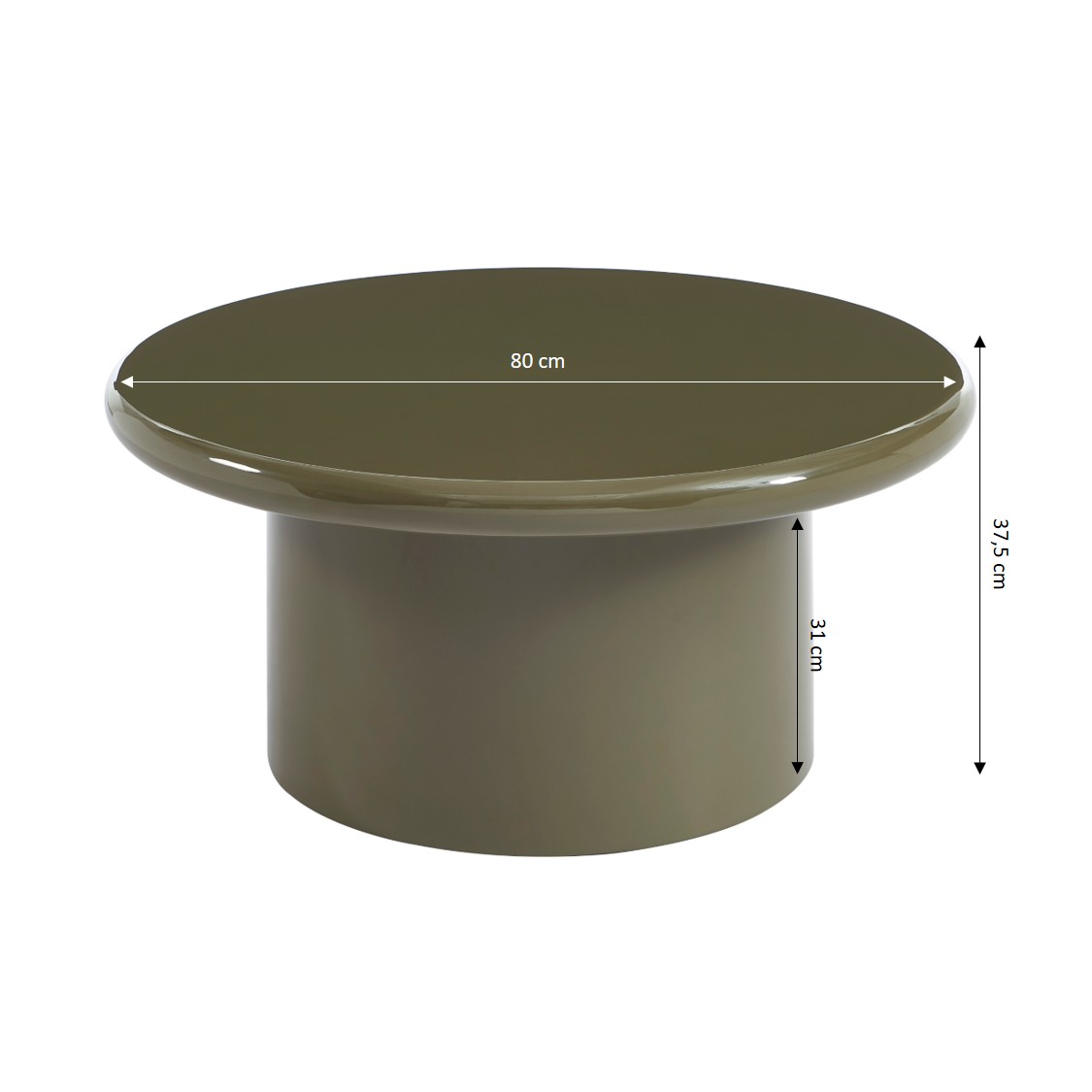 Table basse ronde MOXY finition laquée brillante vert olive 80cm