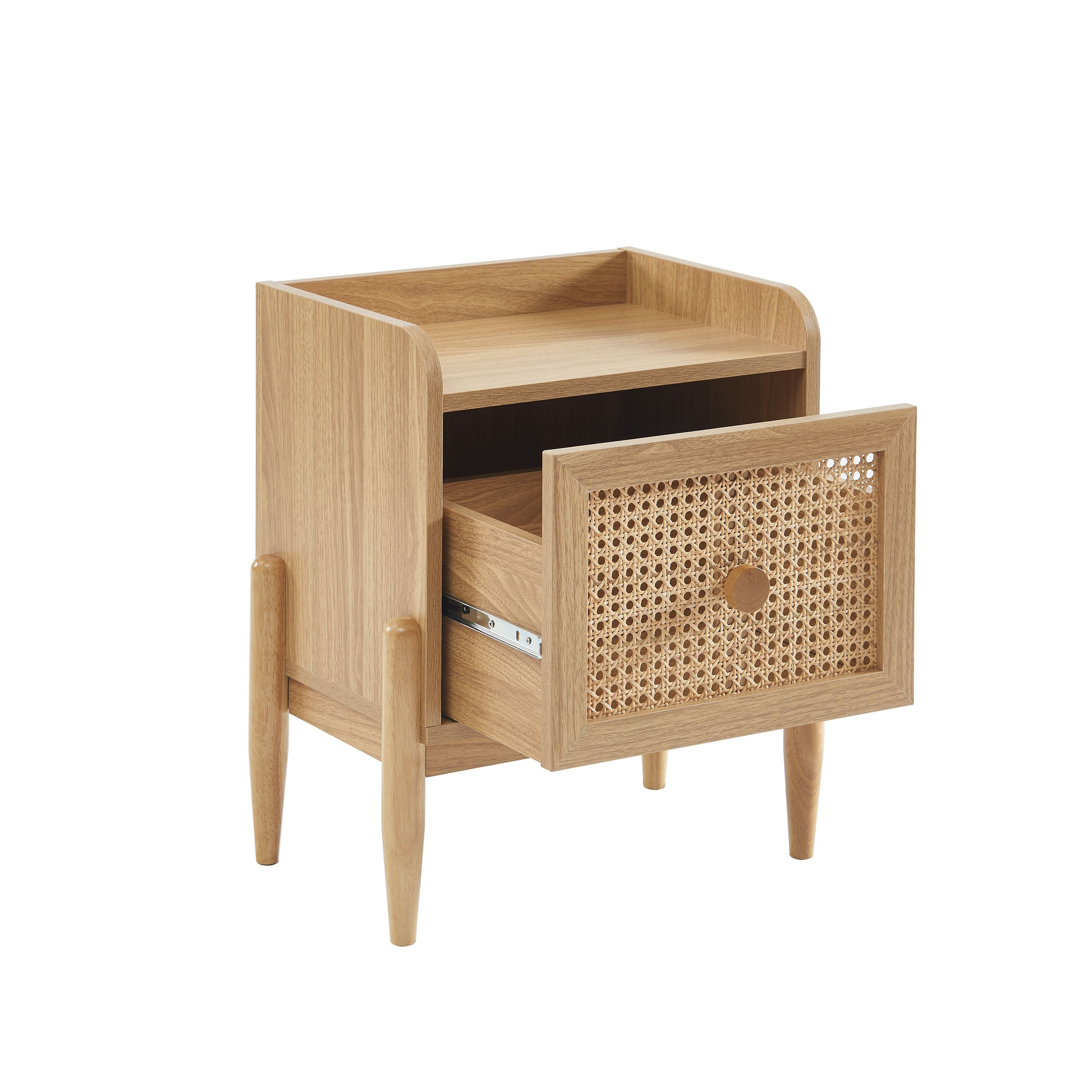 Table de chevet PABLO effet chêne et cannage rotin 40cm