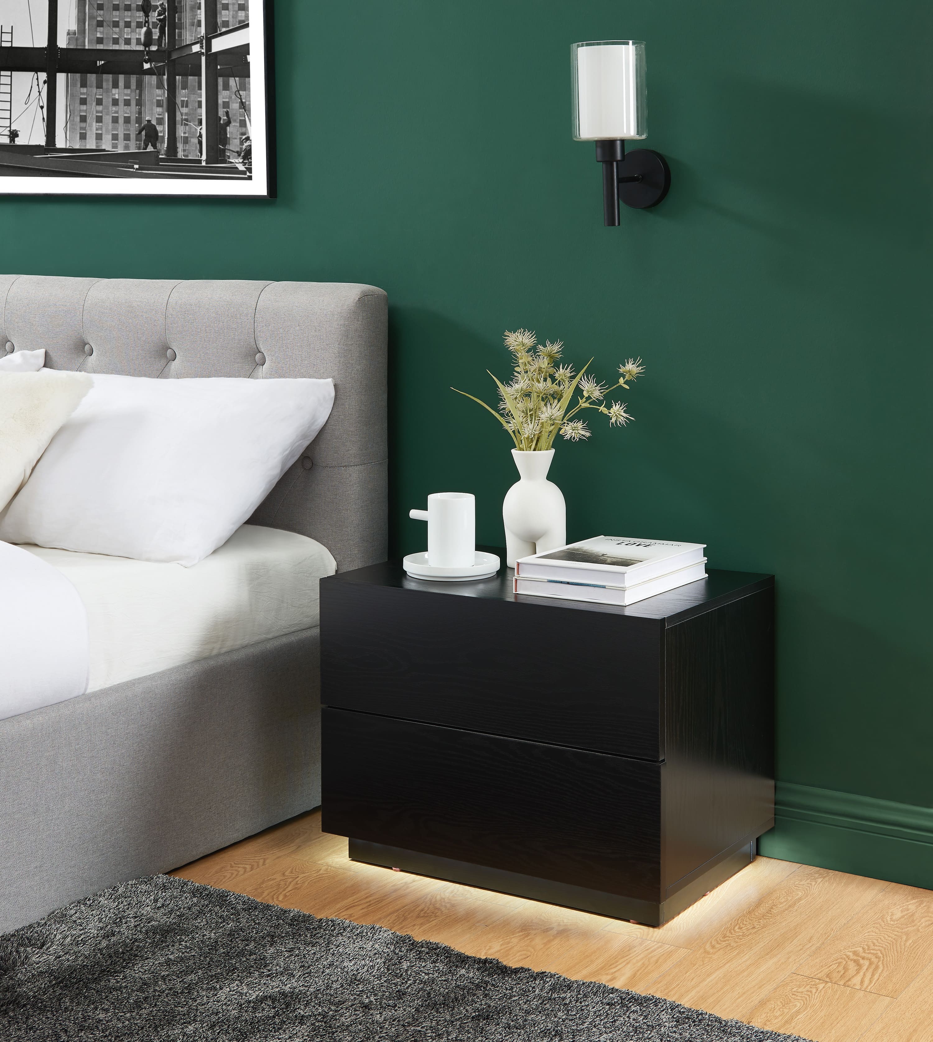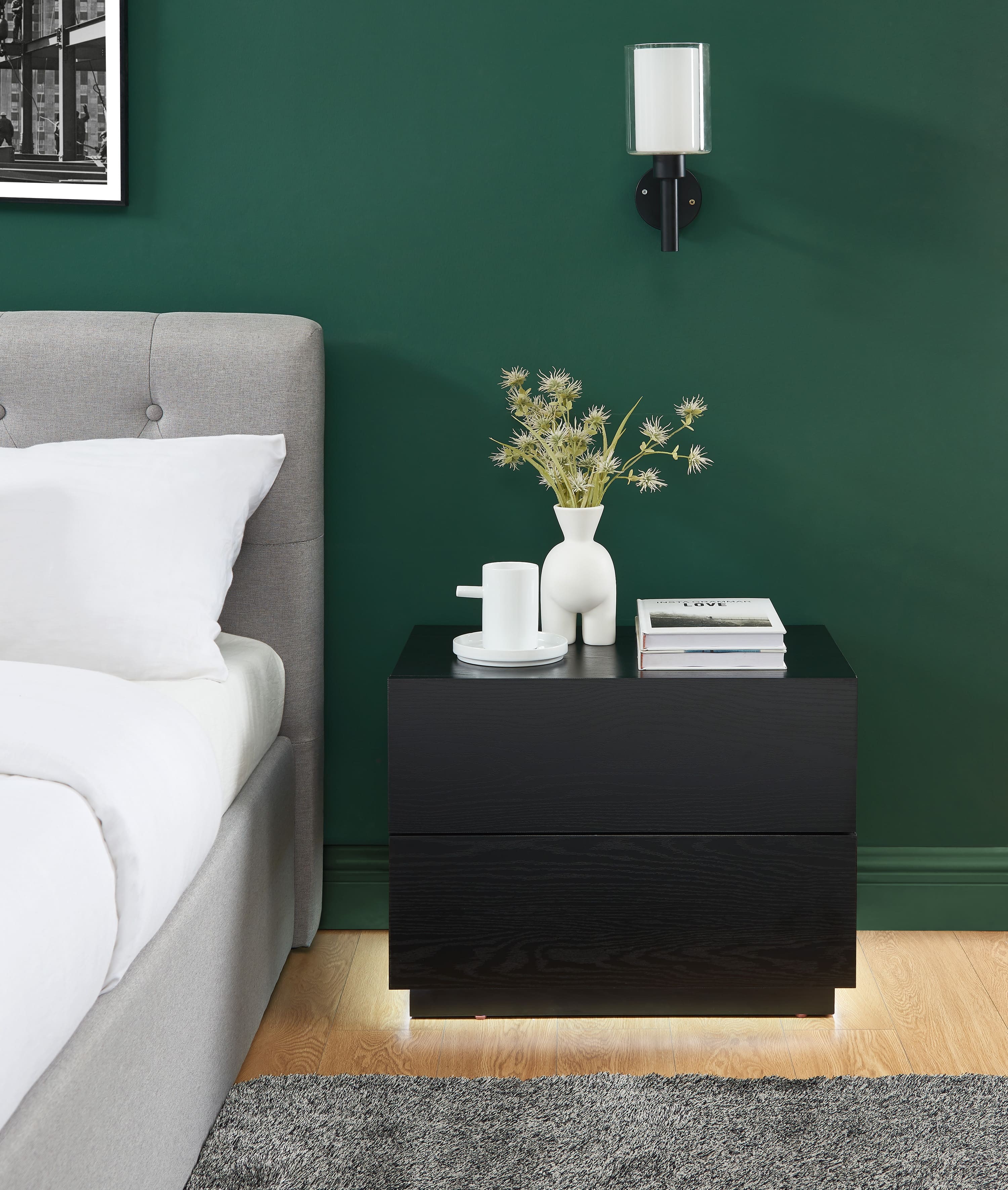 Ajoutez une touche moderne et lumineuse à votre chambre avec la table de chevet MORPHEE, dotée de 2 tiroirs et d'une ceinture à LED blanche.