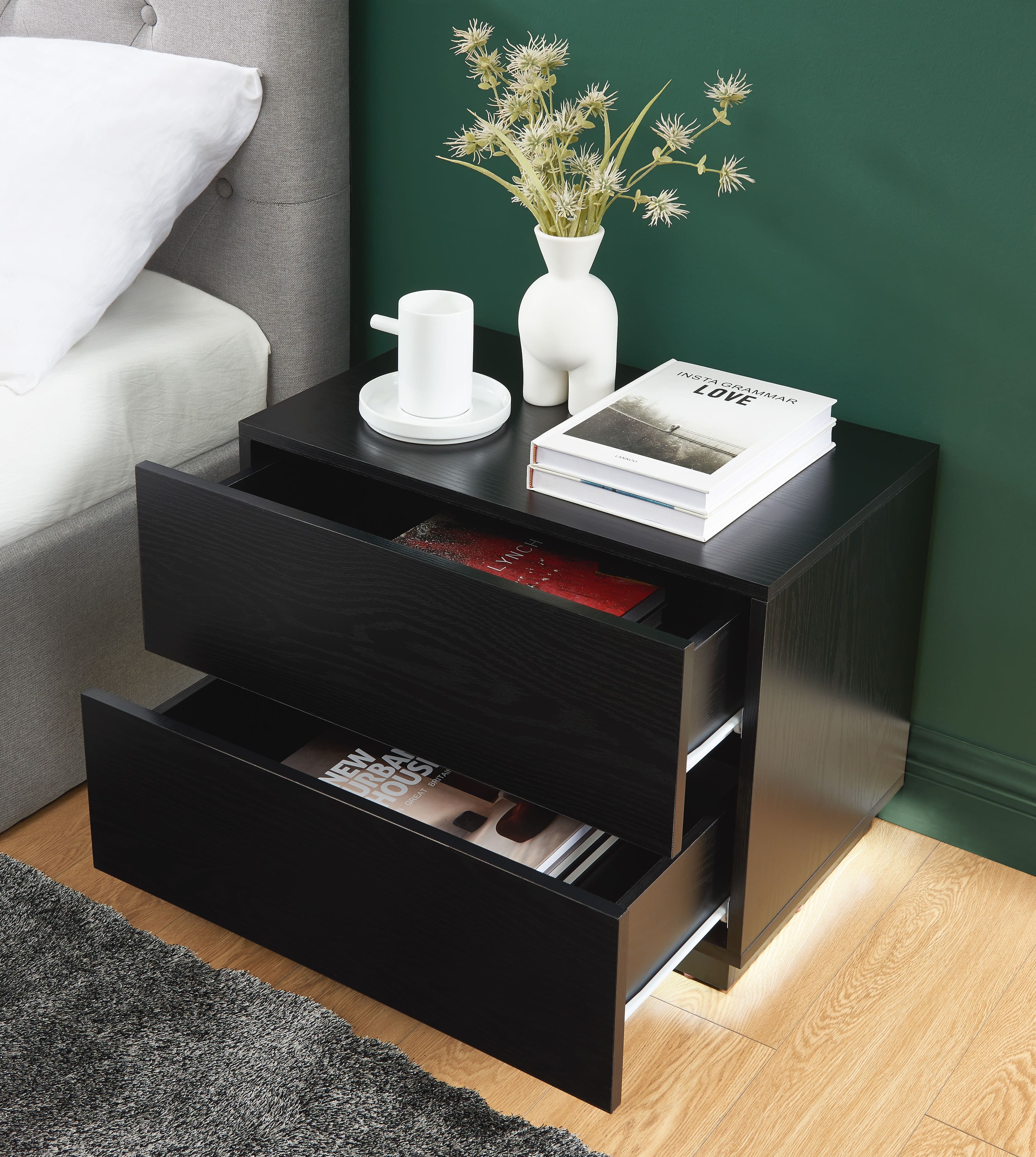 Dotée de 2 tiroirs spacieux, la table de chevet MORPHEE offre un espace de rangement optimisé pour vos livres, vos magazines, vos lunettes et vos petits objets personnels. Les tiroirs coulissants s'ouvrent et se ferment facilement, vous permettant d'accéder rapidement à vos affaires.