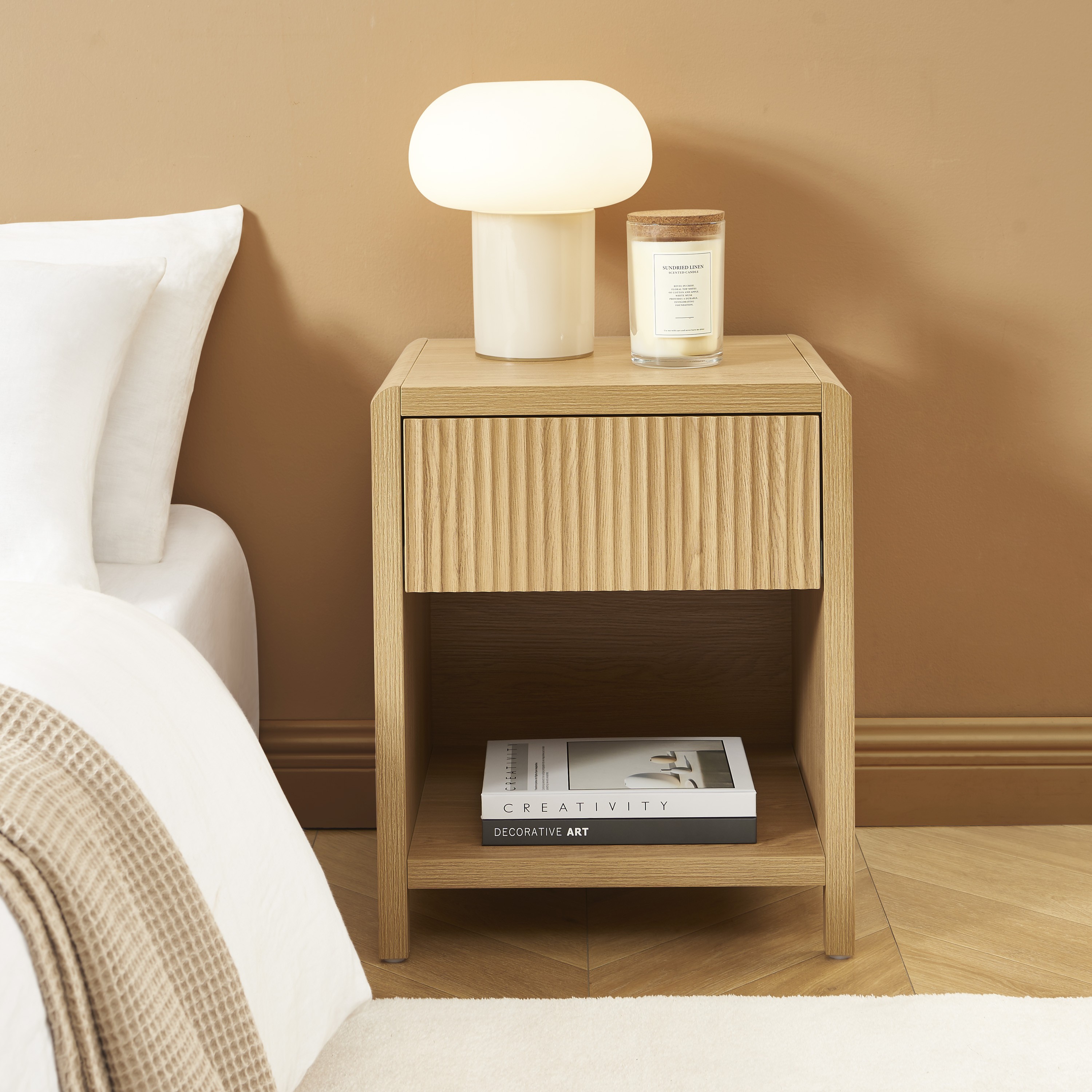 Une table de chevet compacte, idéale pour une chambre cosy ou comme petite table d'appoint.