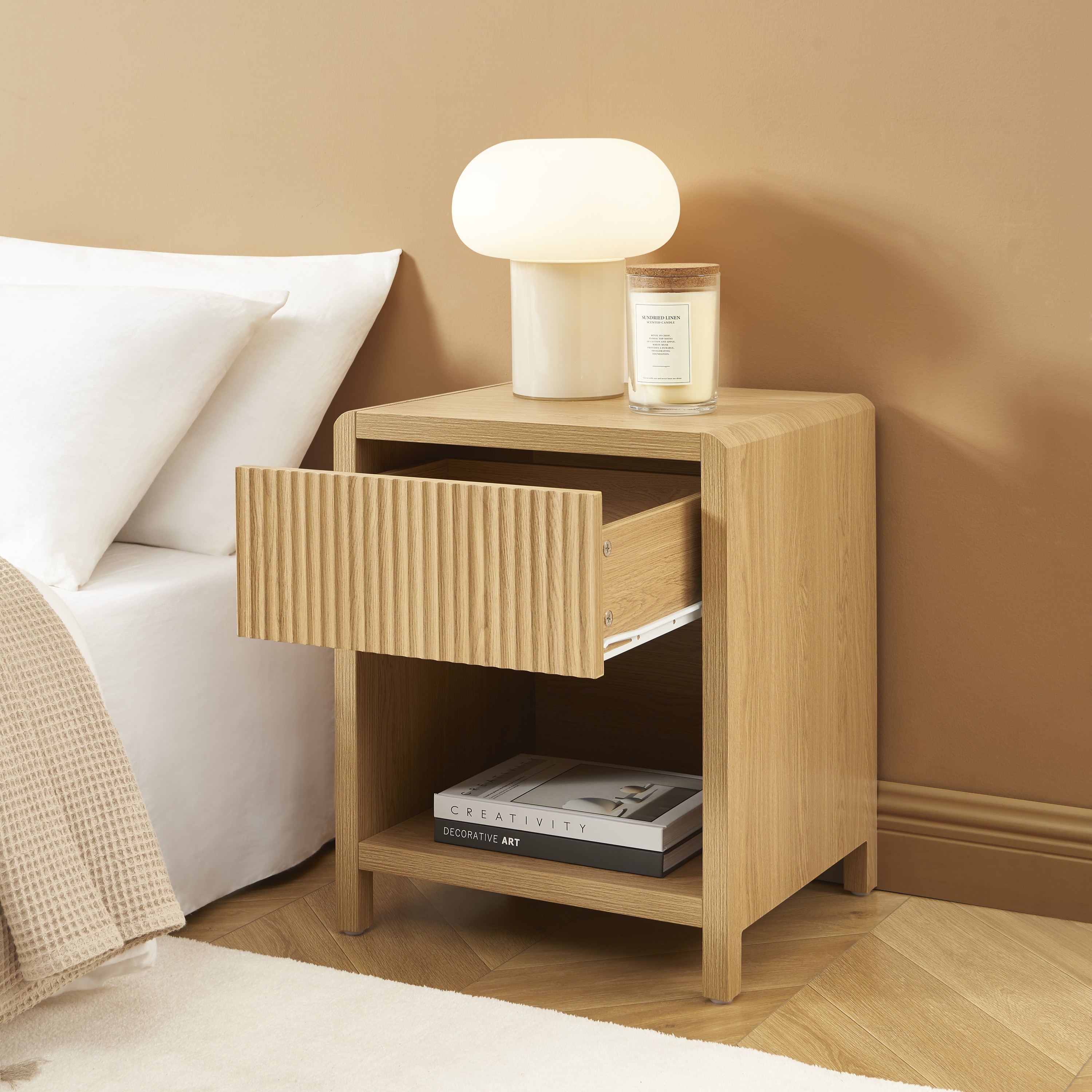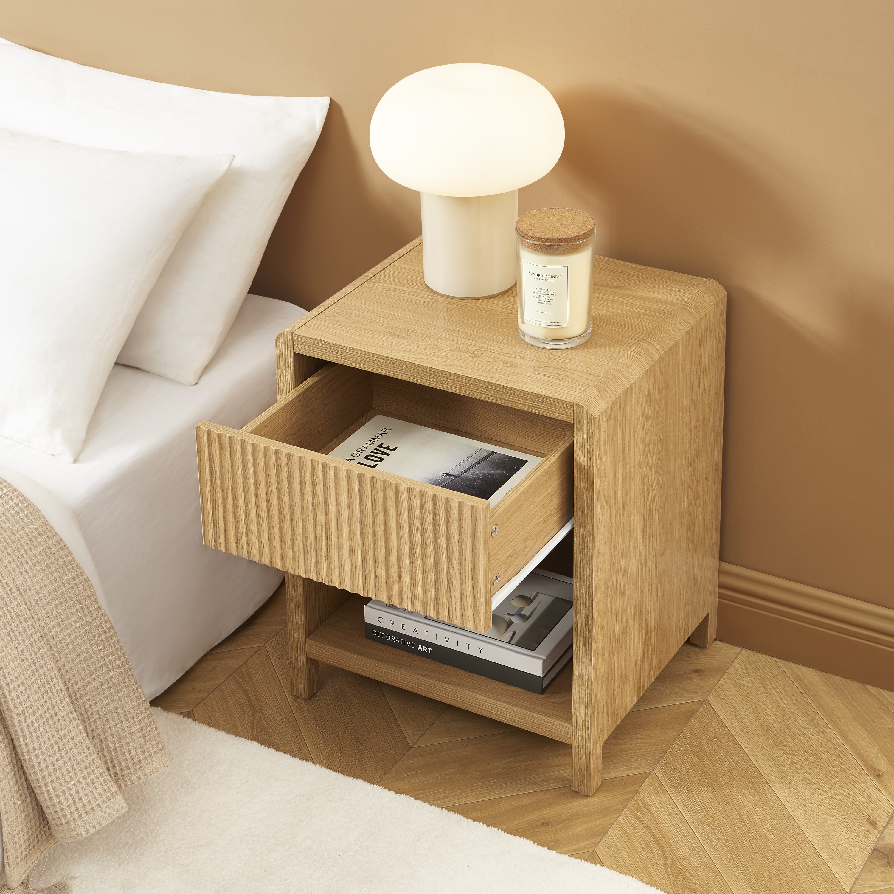 Compacte et bien pensée, la table de chevet UTICA offre une surface idéale pour poser une lampe, un réveil ou vos indispensables du quotidien. Grâce à son format optimisé, elle s'intègre facilement dans les petites comme les grandes chambres sans encombrer l'espace.