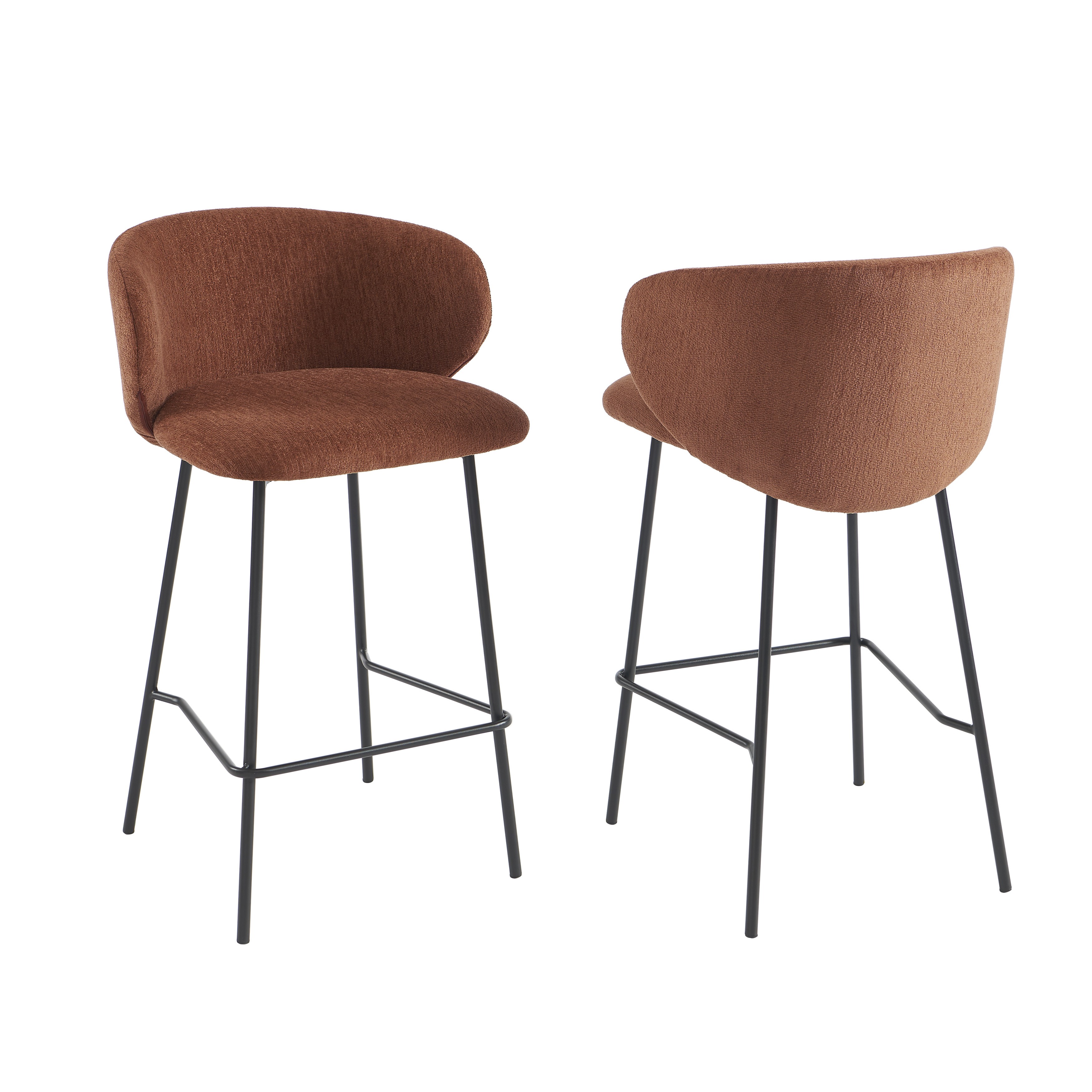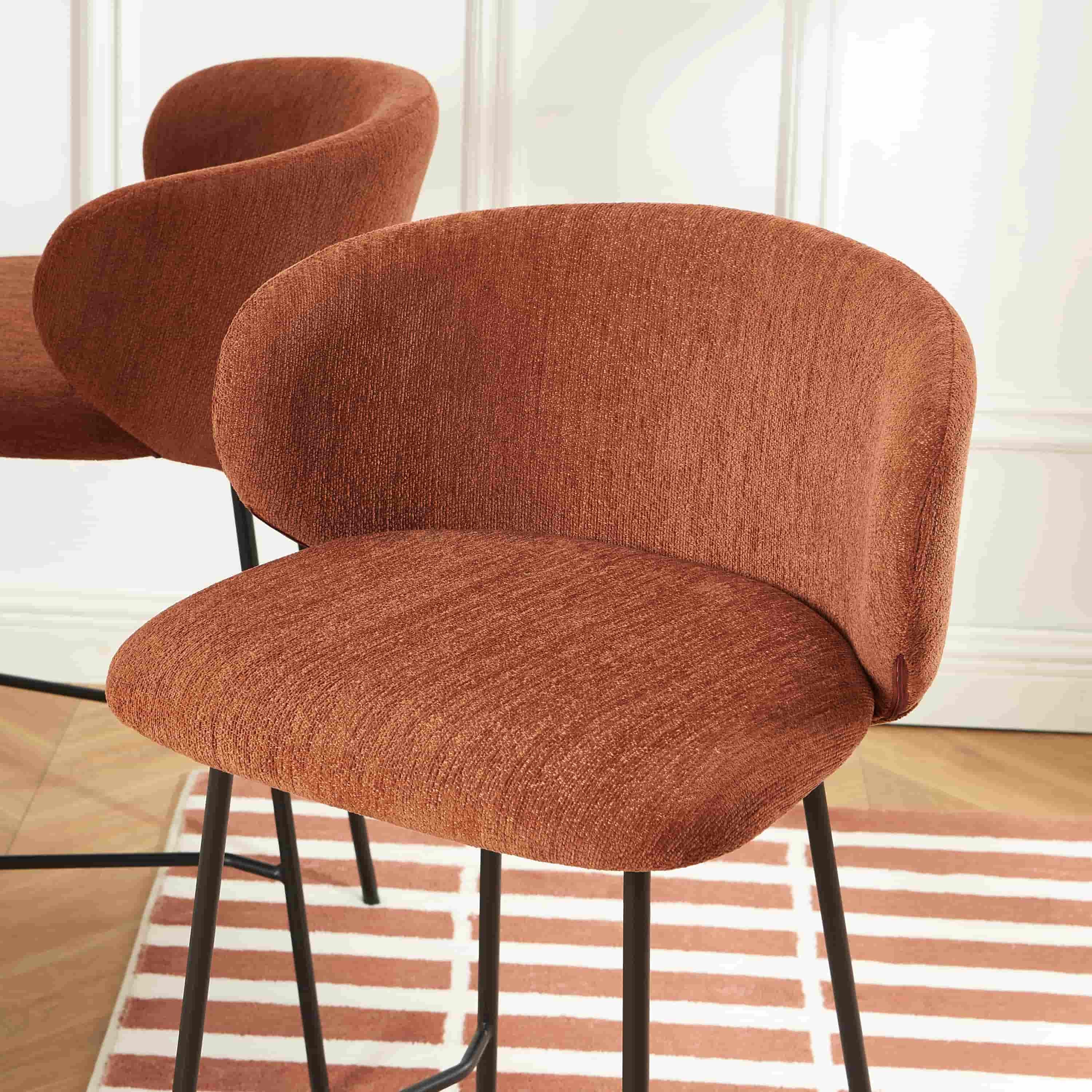 Lot de 2 tabourets CASSIE tissu chenille terracotta et pieds métal noir