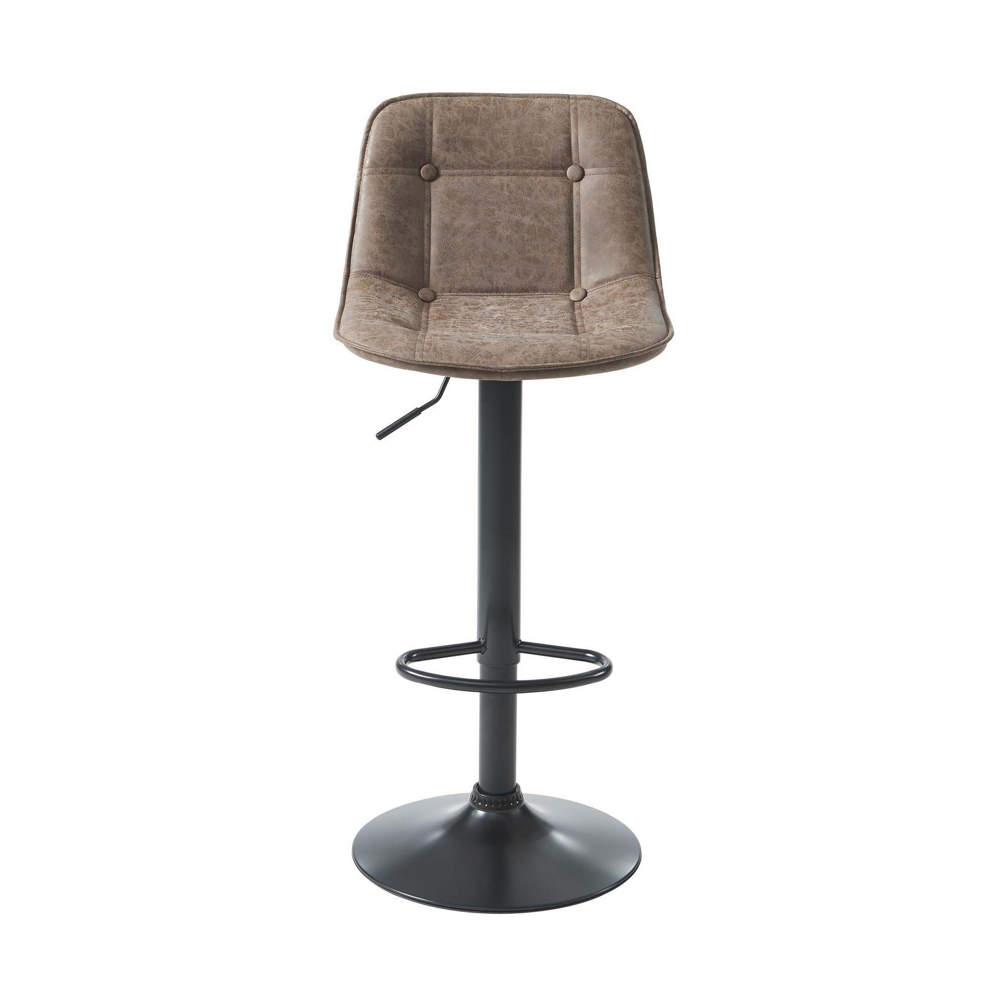 Appréciez son revêtement en PU qui apportera une touche chic à votre pièce. De plus, il est idéal pour les décorations vintages et industrielles. Son piètement en métal noir s'adaptera parfaitement à vos besoins grâce à son repose-pieds ainsi qu'à sa hauteur réglable (de 59 - 79 cm).
