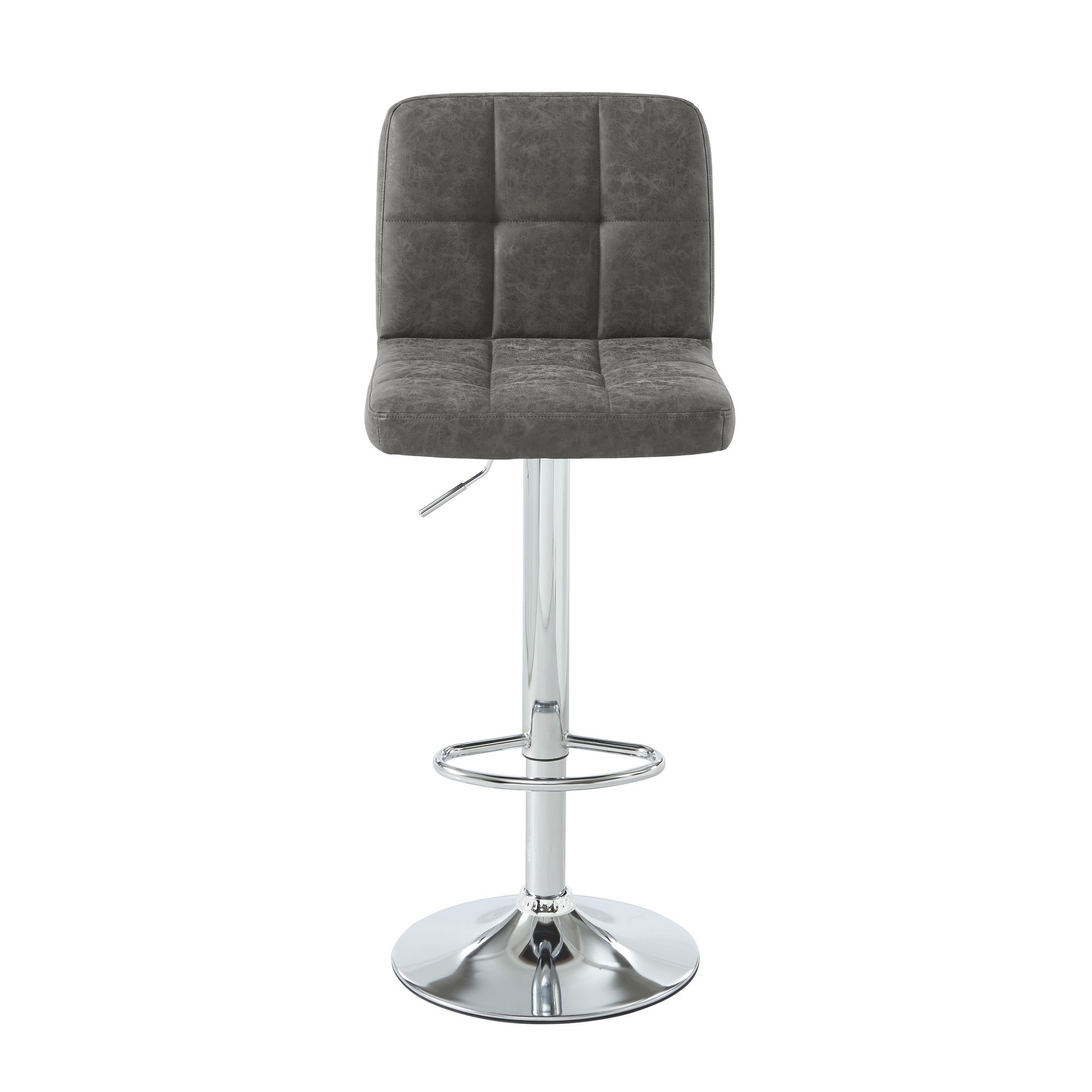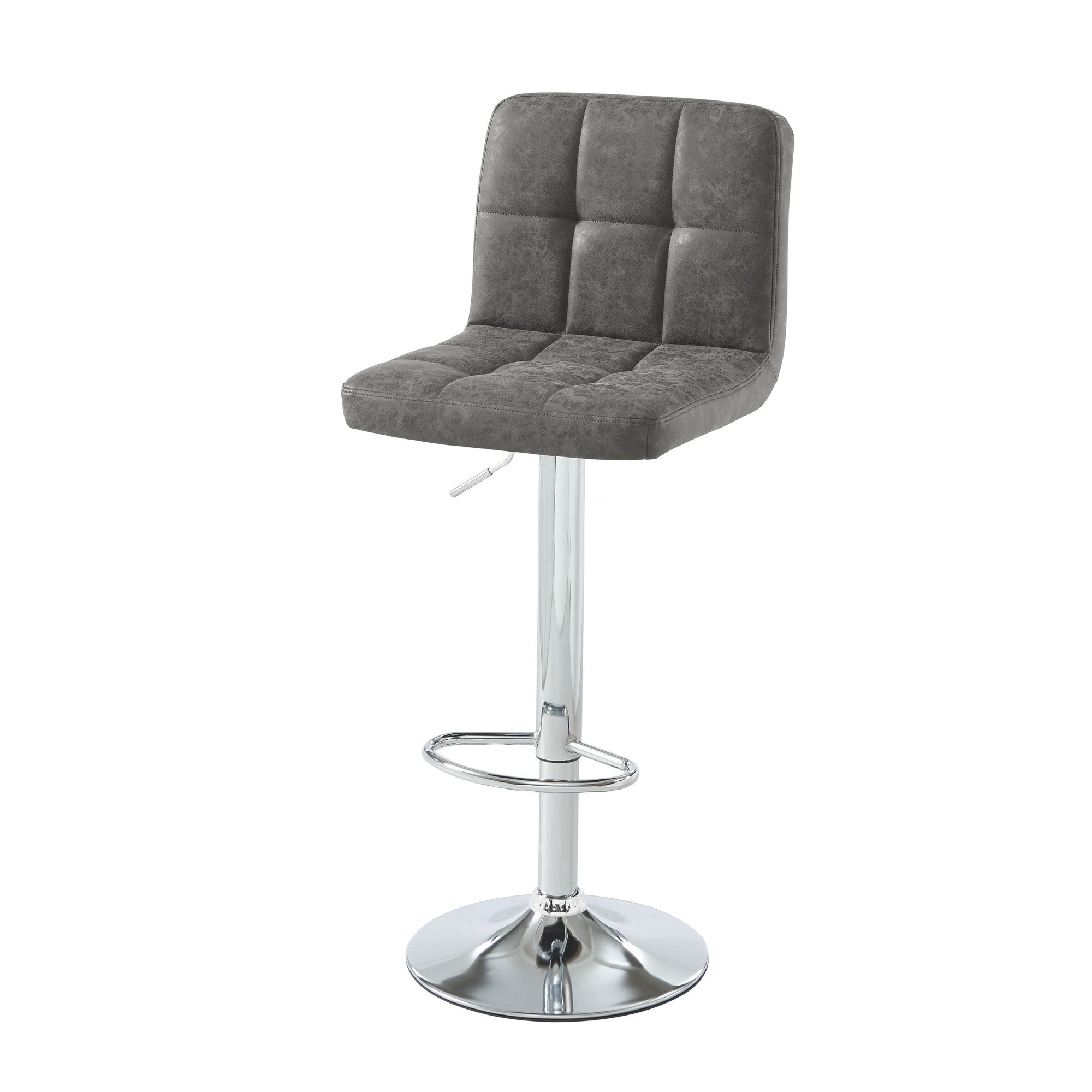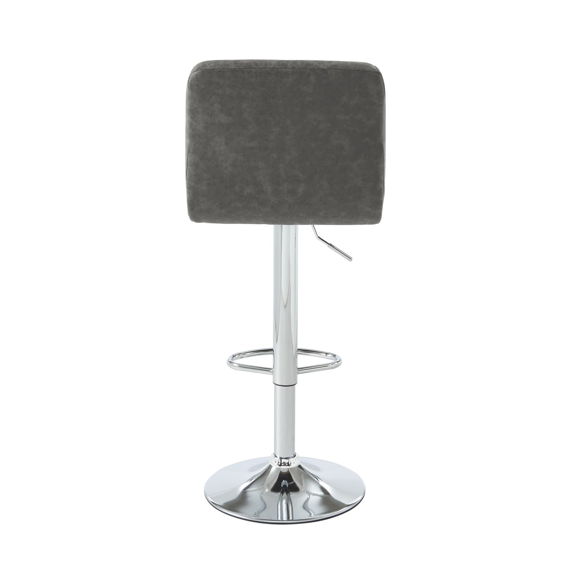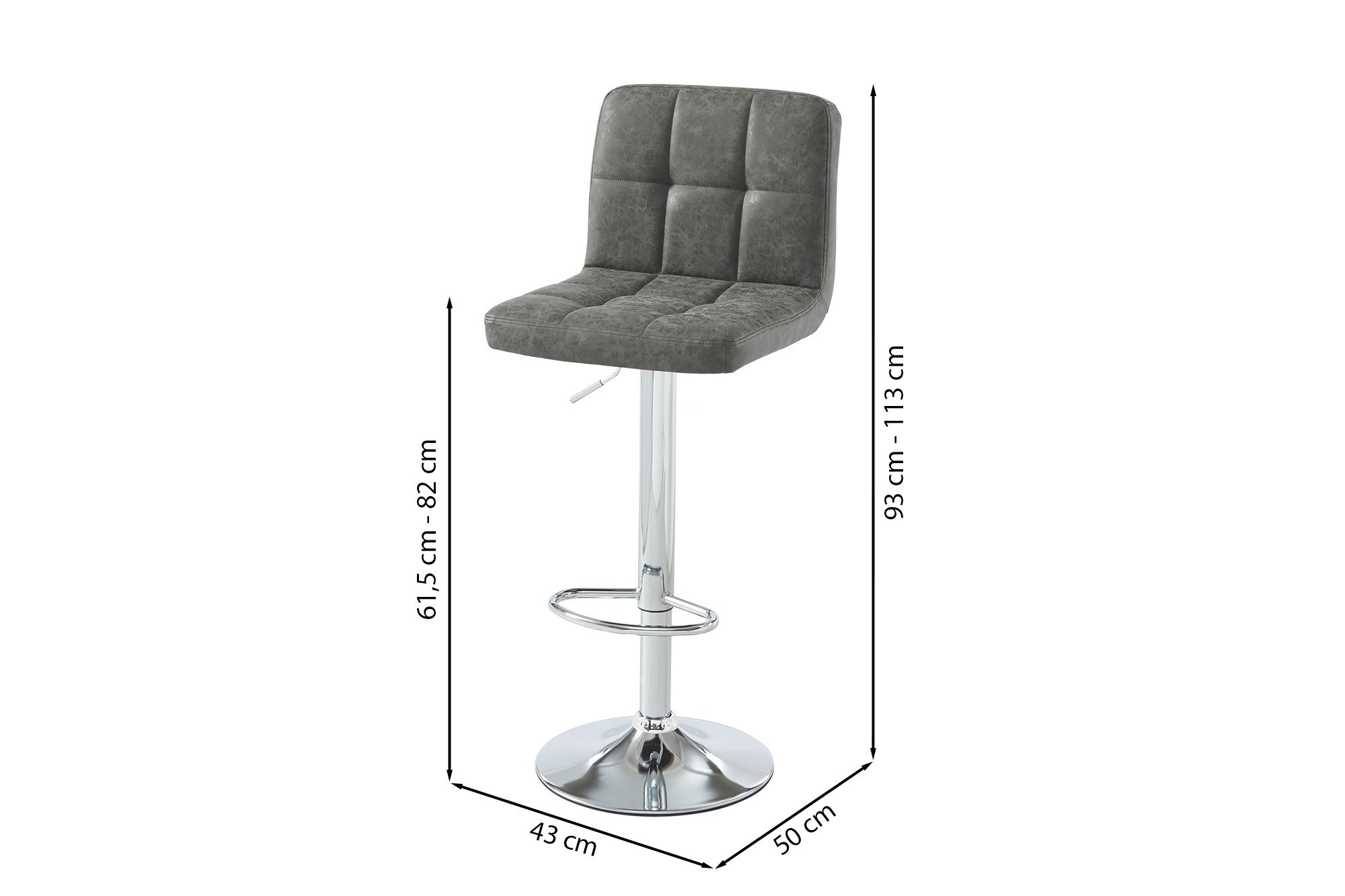 Lot de 2 tabourets de bar GARY en PU gris avec piètement en métal argenté. Dimensions des tabourets : 43 x 50 x 93 - 113 cm