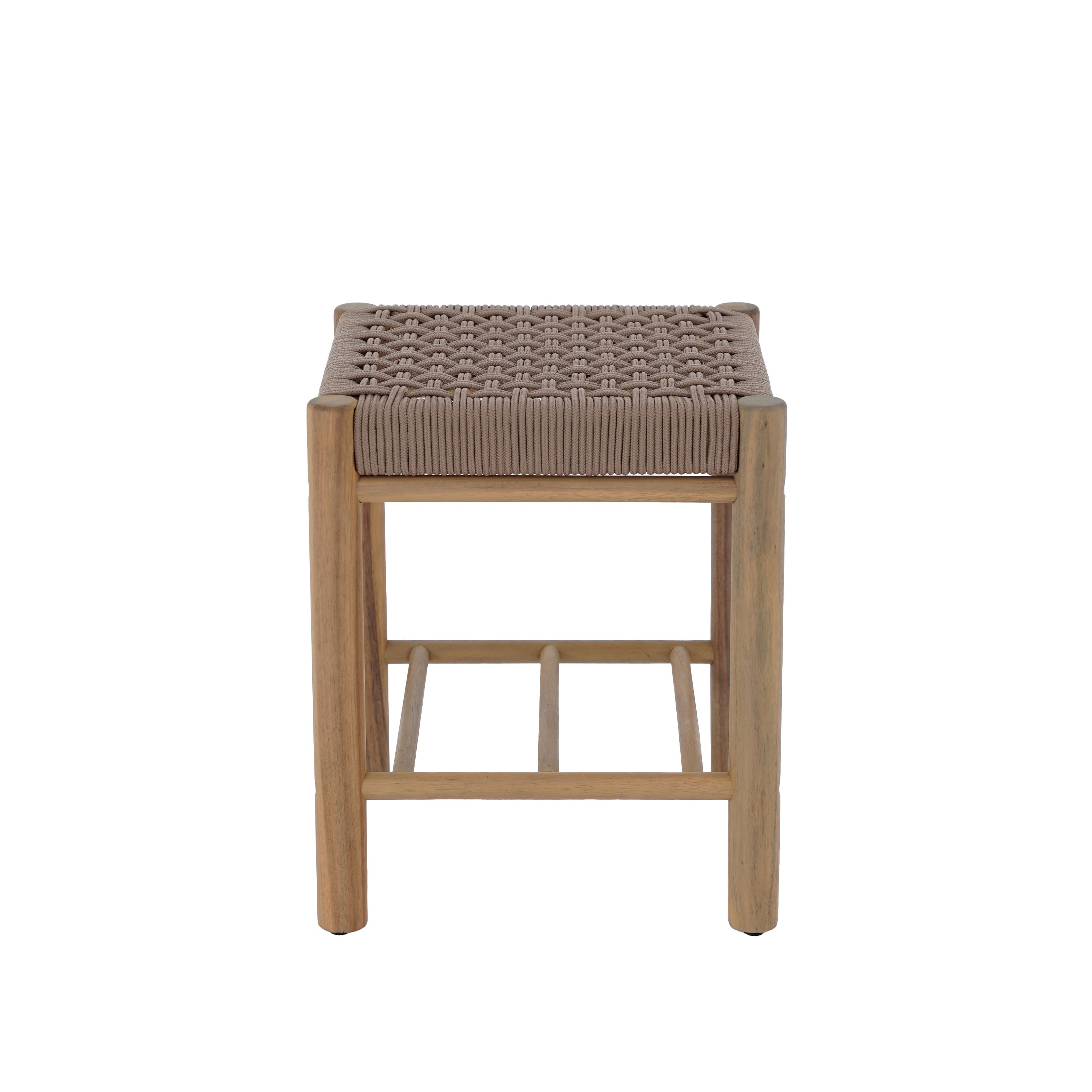 Tabouret intérieur et extérieur AVI en bois d'acacia et corde marron clair