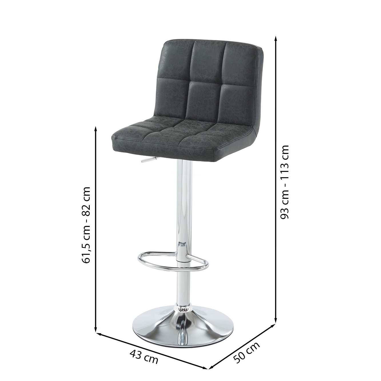 Appréciez son revêtement en PU qui apportera une touche chic, tandis que ses pieds en métal, plus de caractère. Le tabouret GARY s'adapte parfaitement à vos besoins grâce à son repose-pieds ainsi qu'à sa hauteur réglable (de 61,5 - 82 cm). Profitez de sa large assise accessoirisée de capitons pour manger, télétravailler ou discuter avec vos amis autour d'un café.