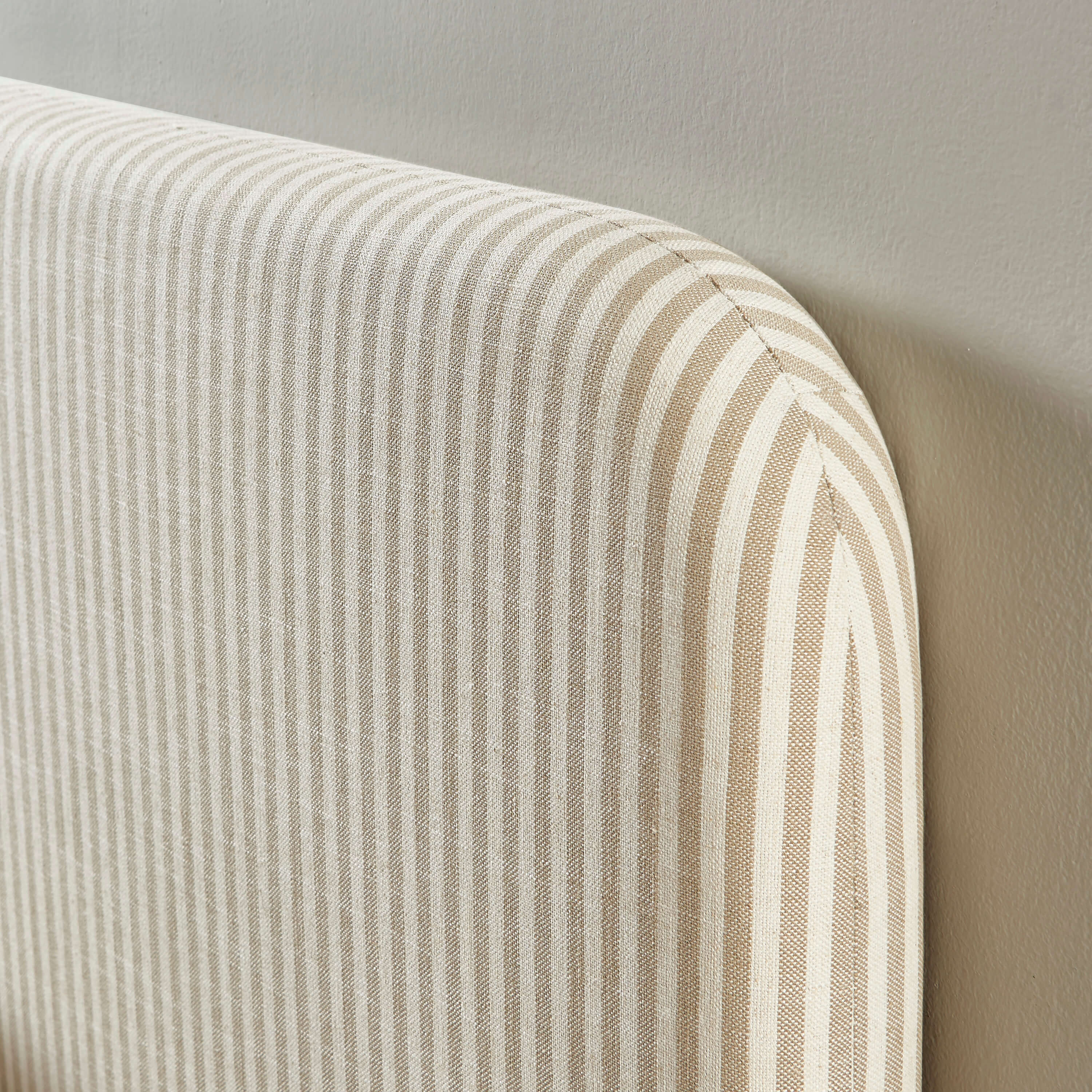 Habillez votre chambre avec élégance grâce à la tête de lit LOUISON en tissu lin rayé, idéale pour un couchage 160x200 cm.
