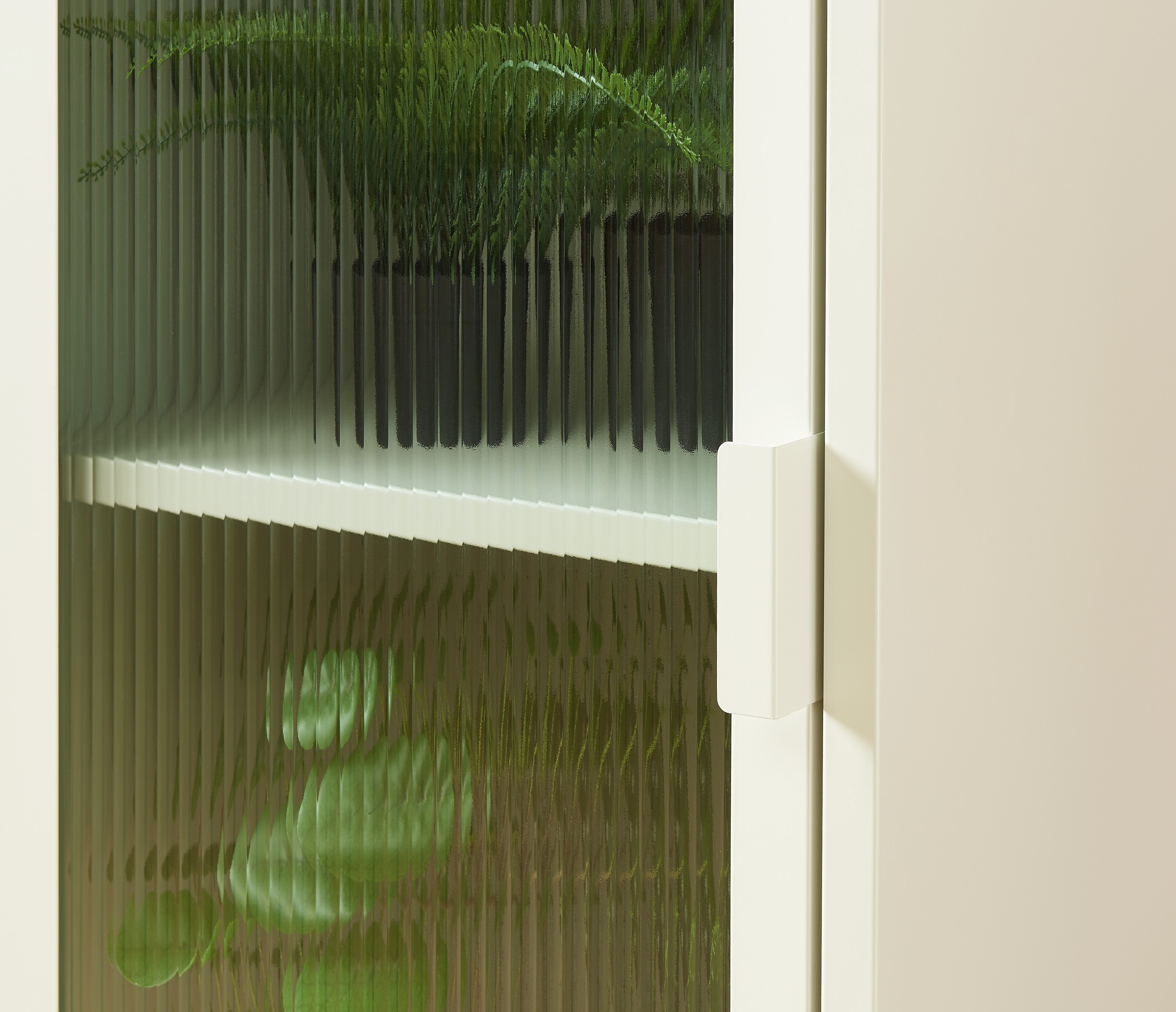 Vestiaire PANTONE beige sable porte en verre cannelé