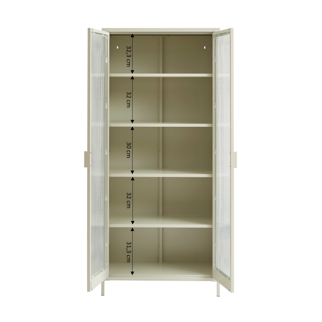 Dotato di due ante in vetro scanalato, questo mobile unisce eleganza e raffinatezza. Il vetro strutturato lascia intravedere il contenuto senza svelarlo completamente, creando un effetto decorativo raffinato che valorizza le stoviglie garantendo al contempo una certa discrezione.