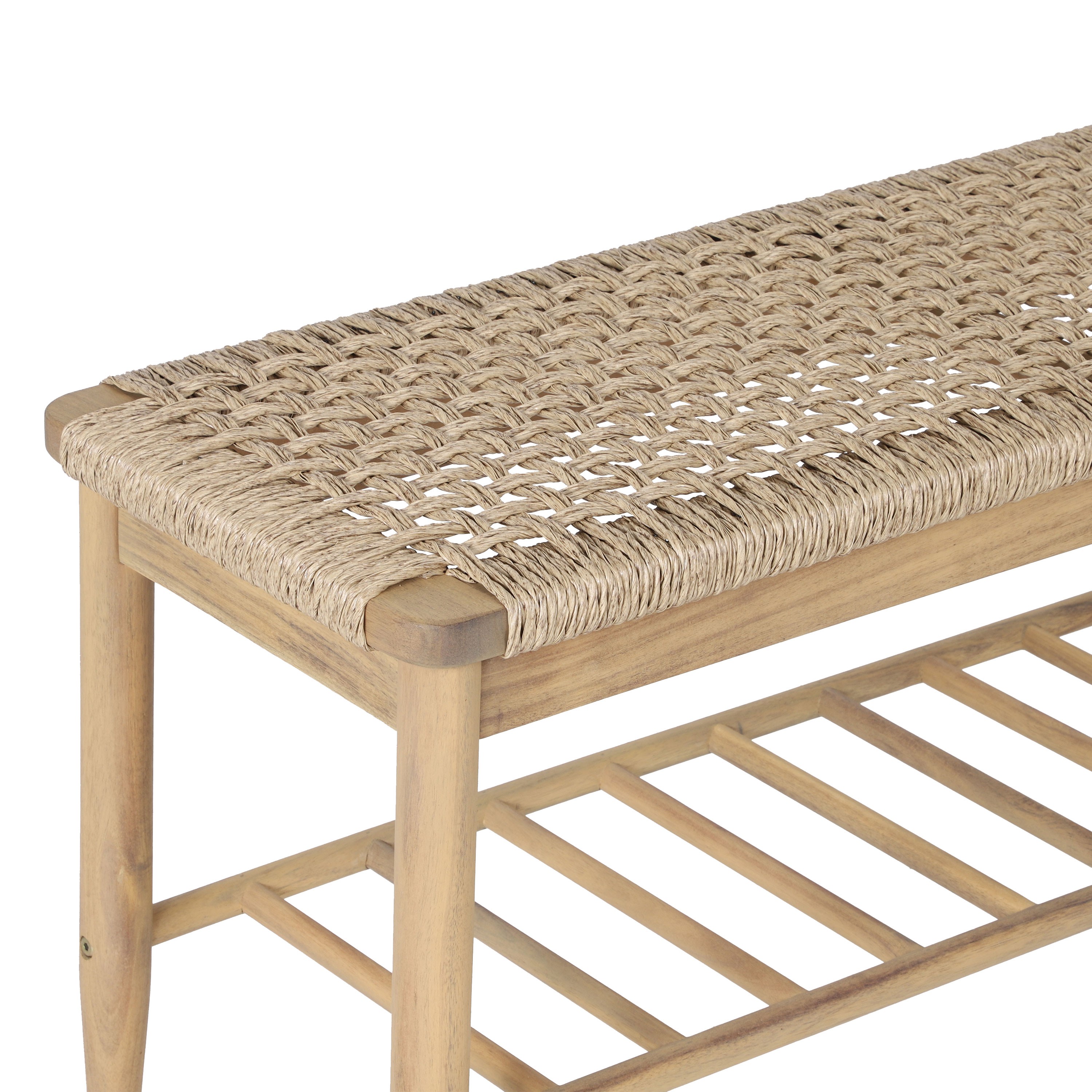Panca HIVA: un design naturale che combina legno di acacia e vimini intrecciato, perfetto per valorizzare i vostri interni o i vostri spazi esterni riparati.