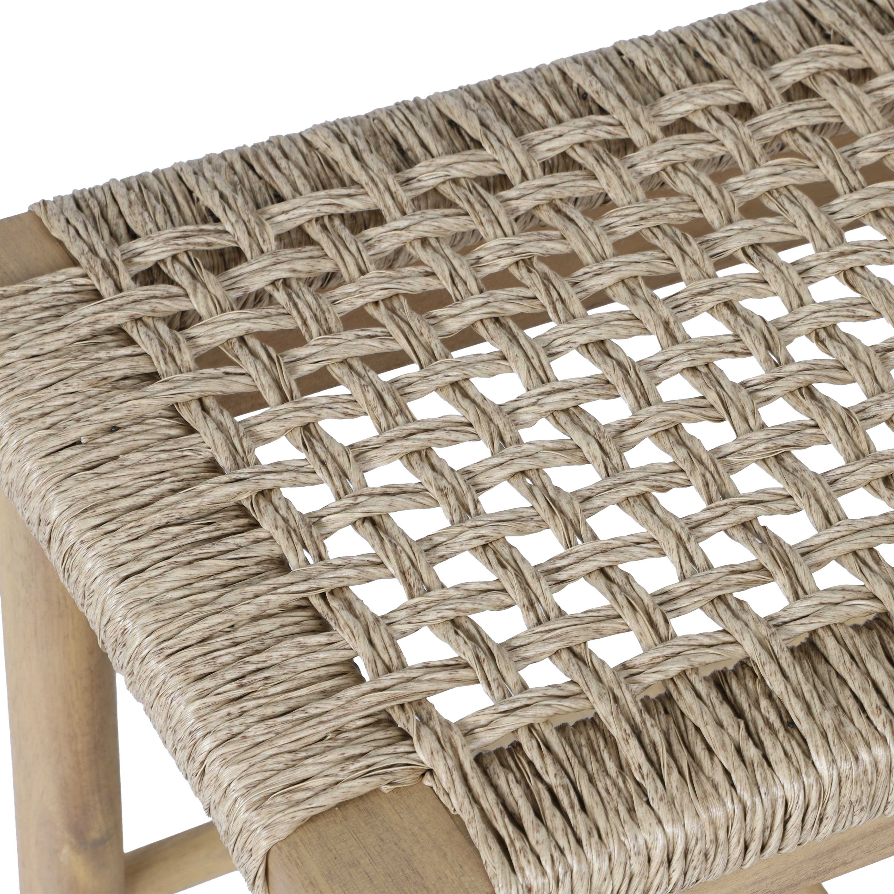 Combinando la solidità del legno di acacia certificato FSC e la finezza del vimini intrecciato, questa panca è il perfetto equilibrio tra design e durata. La sua seduta traforata aggiunge un tocco artigianale, rafforzandone il fascino naturale.