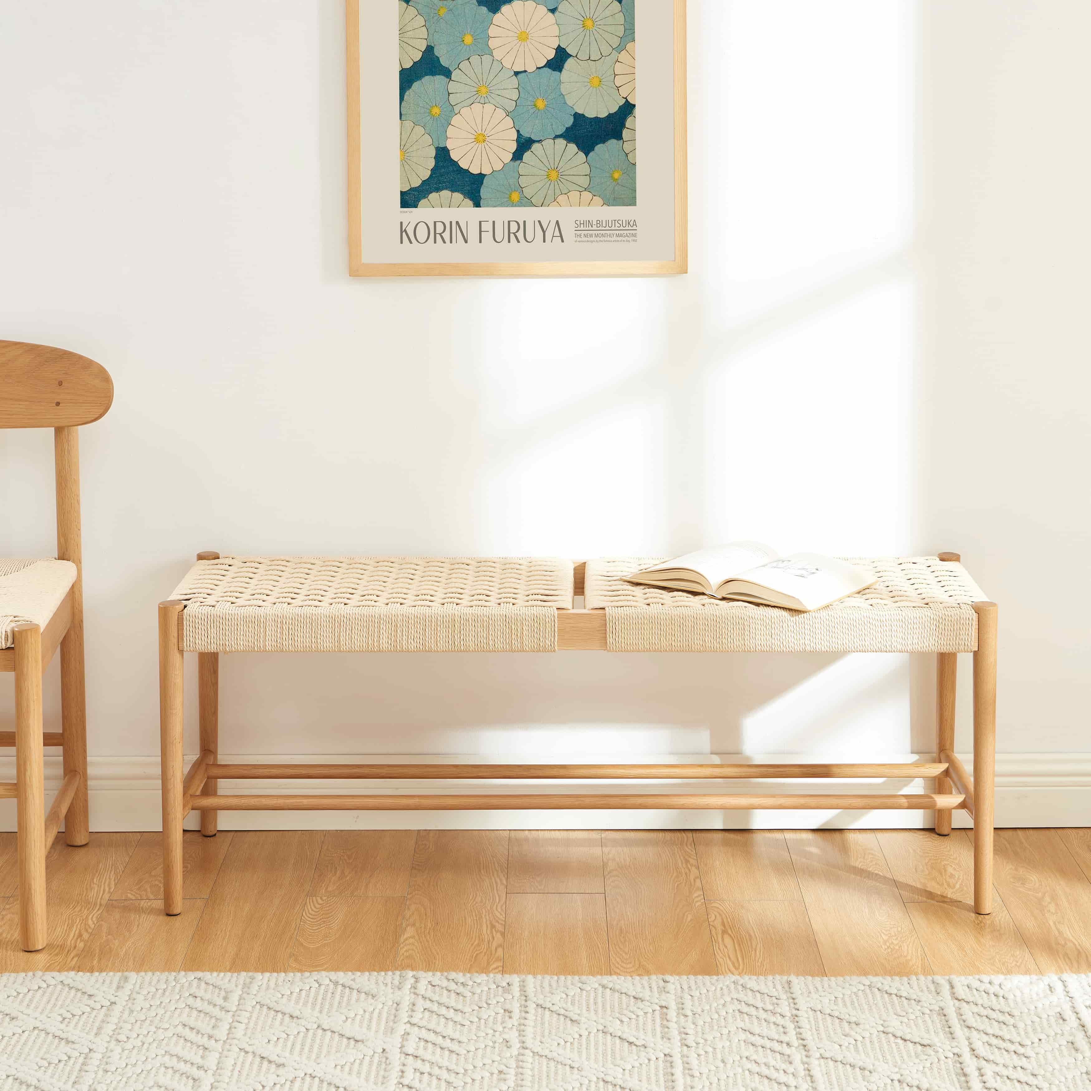 La panca MOTTO si distingue per la struttura e le gambe in rovere massiccio, che offrono robustezza e calore al suo arredamento. Il suo rivestimento in corda intrecciata aggiunge una texture naturale e uno stile artigianale che si abbina perfettamente agli interni moderni, scandinavi o bohémien.