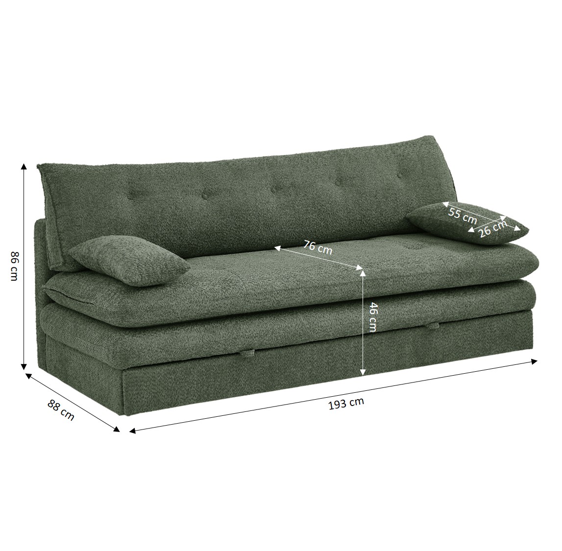 Dotata di una generosa larghezza della seduta di 193 cm e di una densità di 25 kg/m³, KIARA offre una seduta comoda e adatta ad un uso regolare. L'altezza della seduta di 46 cm assicura una posizione naturale, perfetta per rilassarsi o ricevere ospiti.