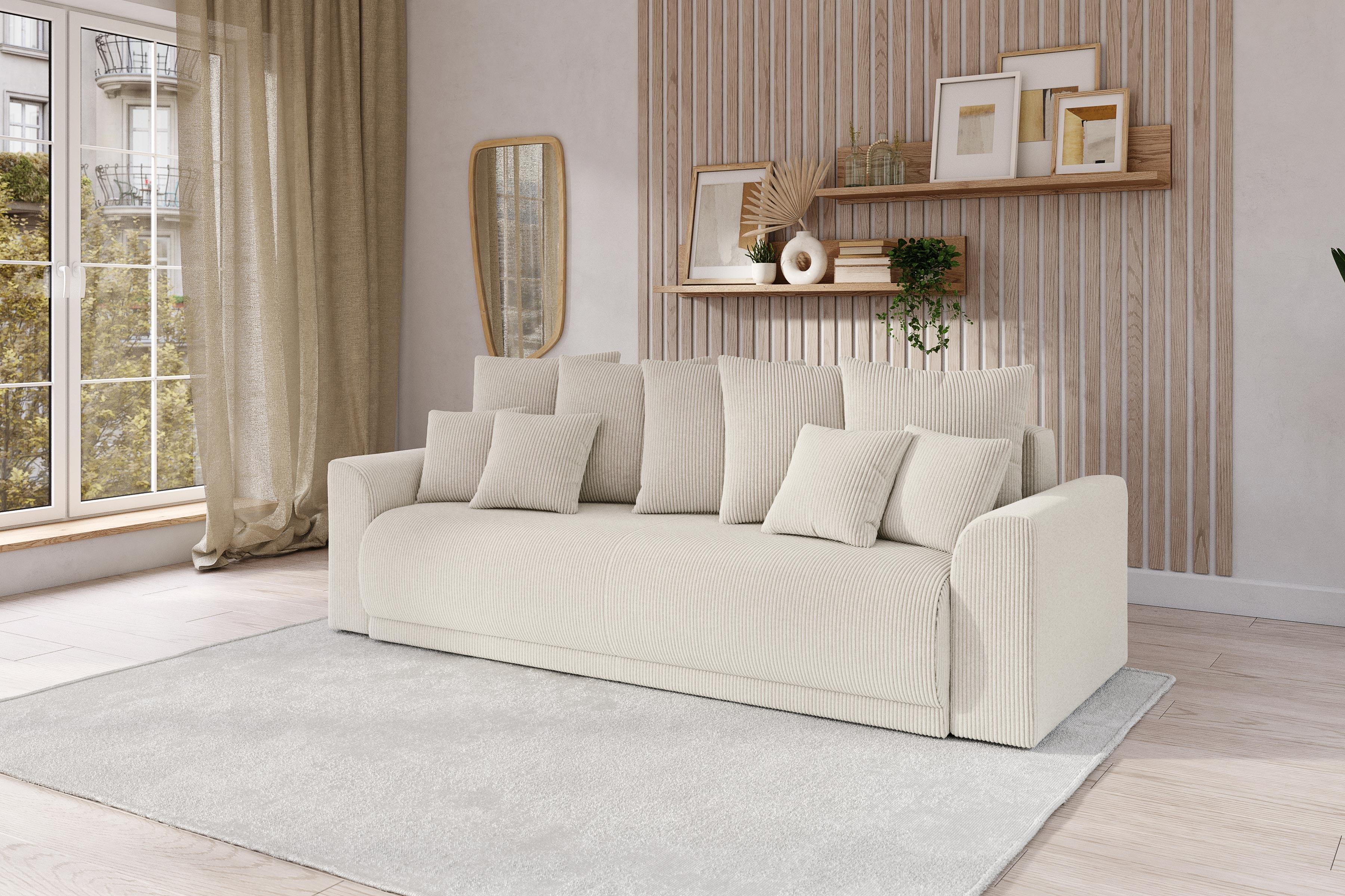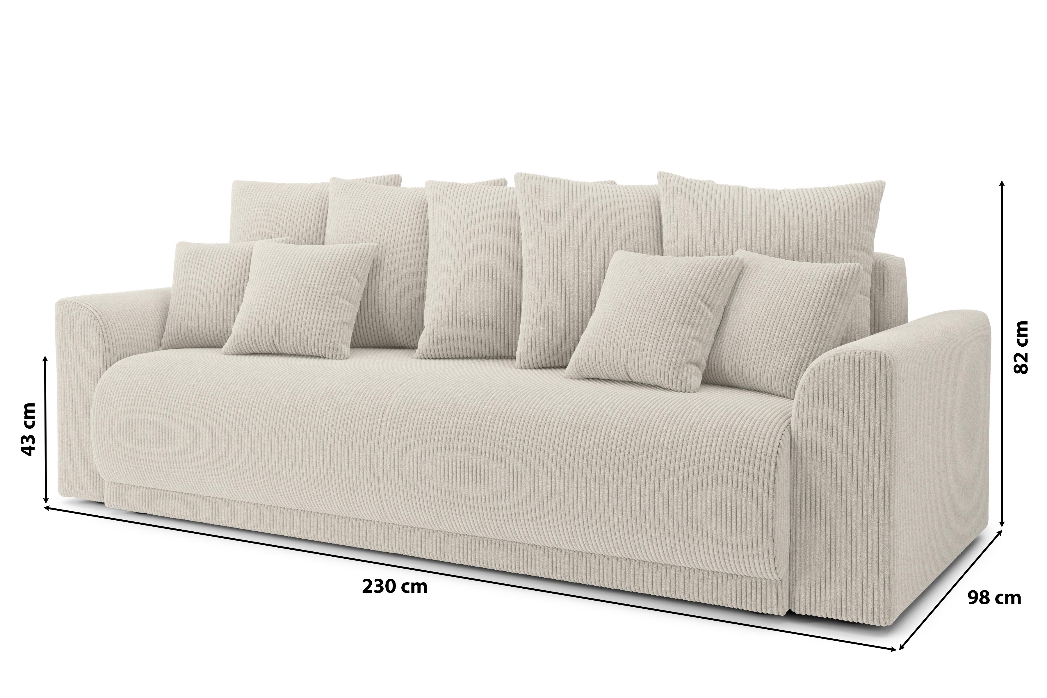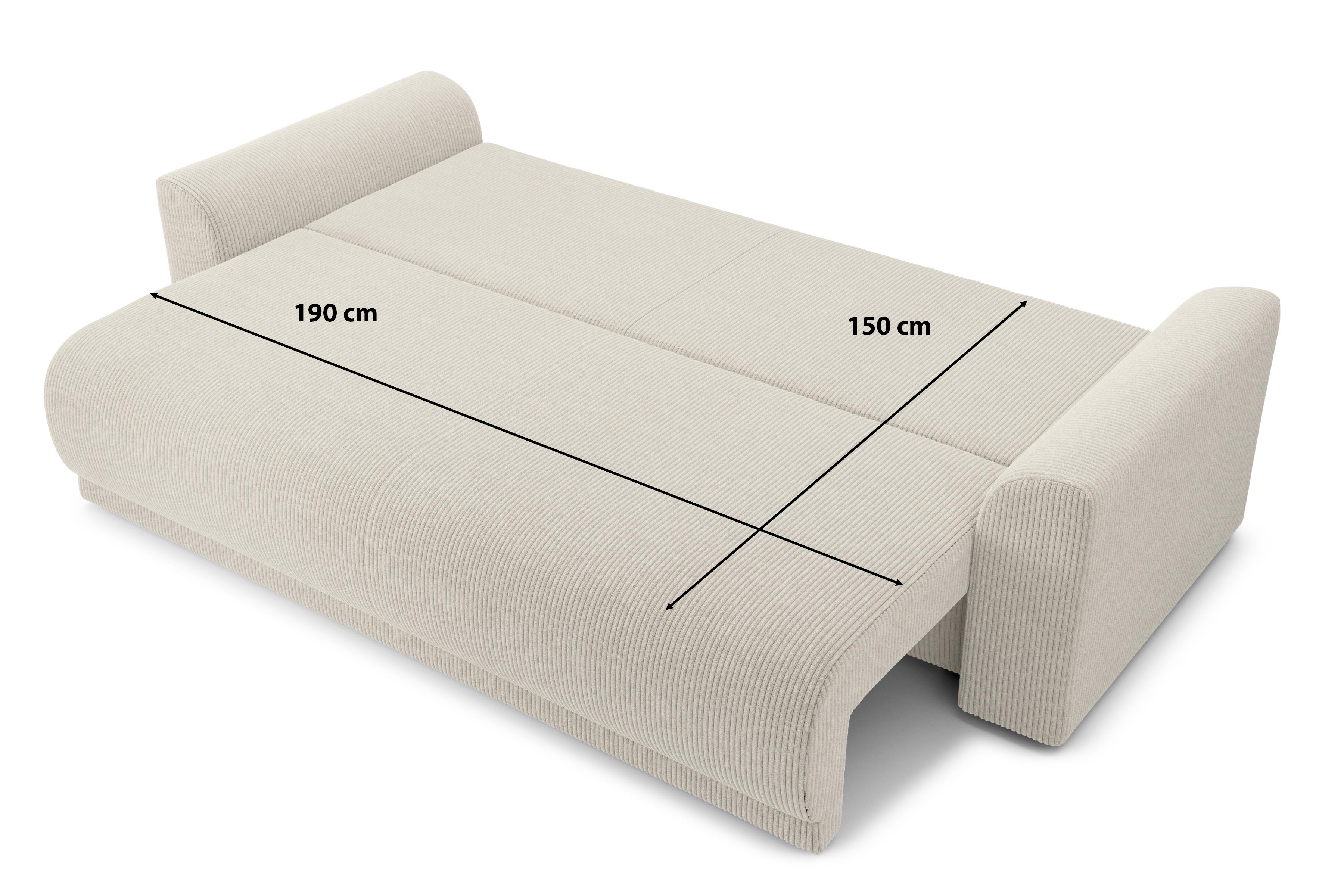 Divano convertibile a 3 posti in velluto a coste beige NOVA, verticale