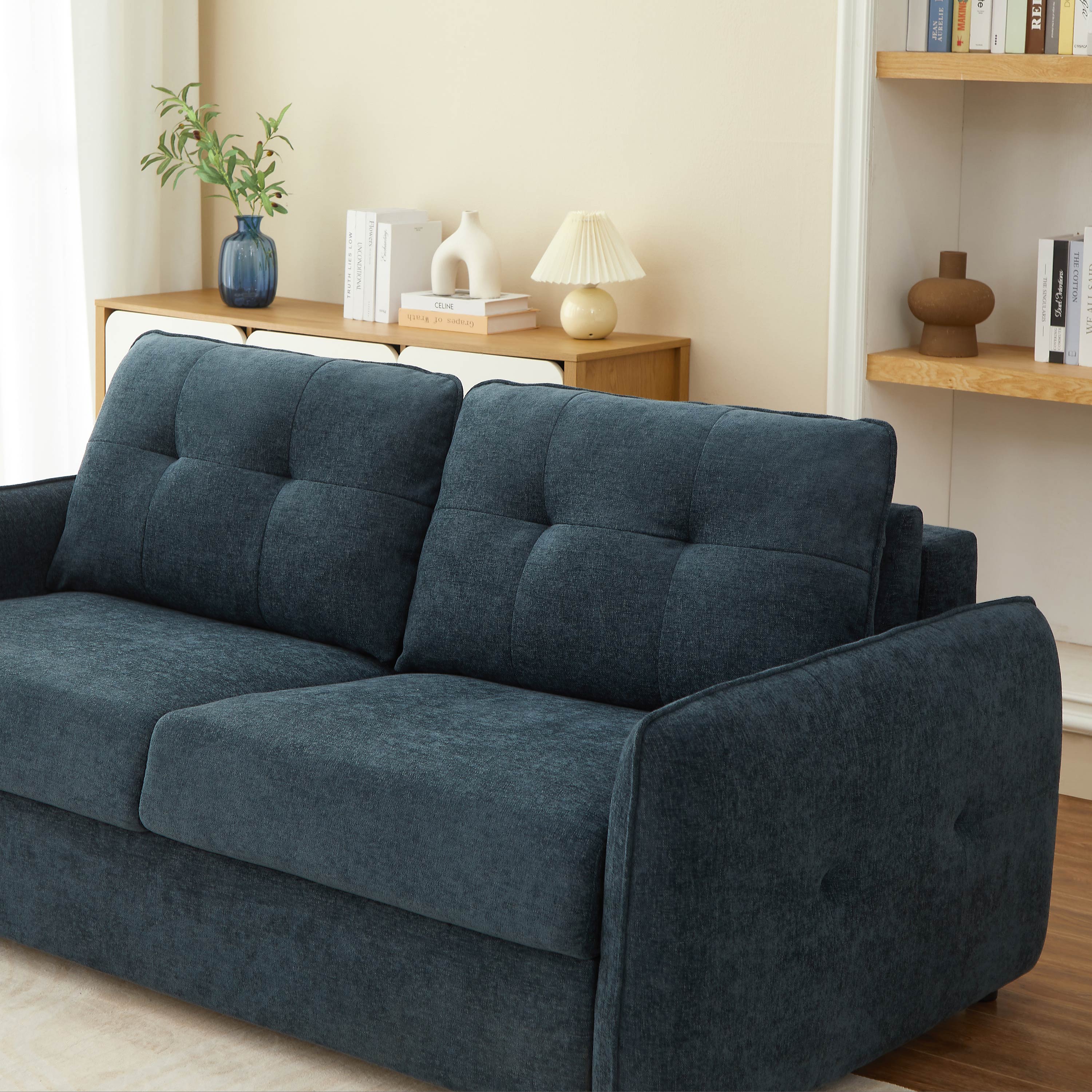 Divano letto express IMPA 3 posti in tessuto ciniglia blu petrolio