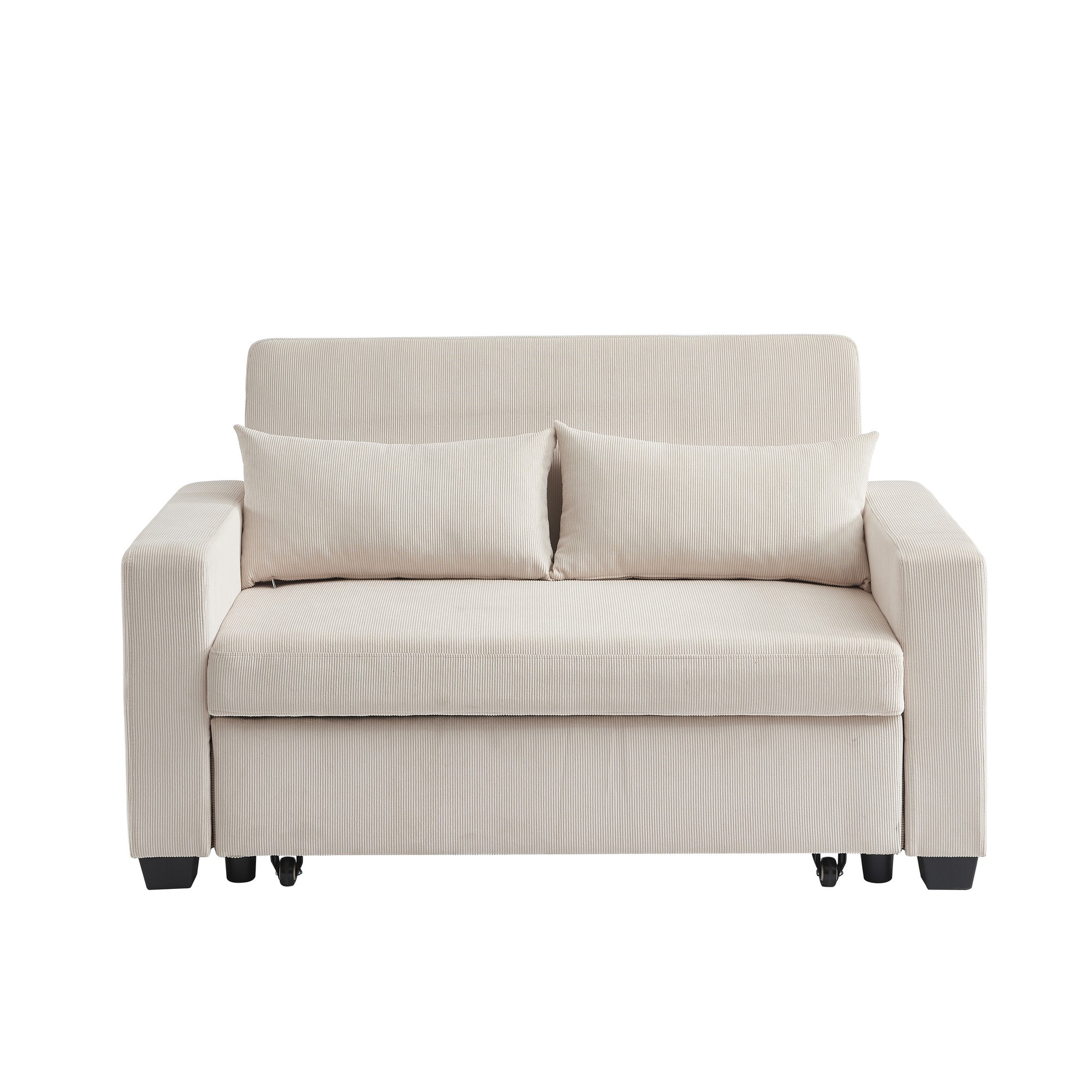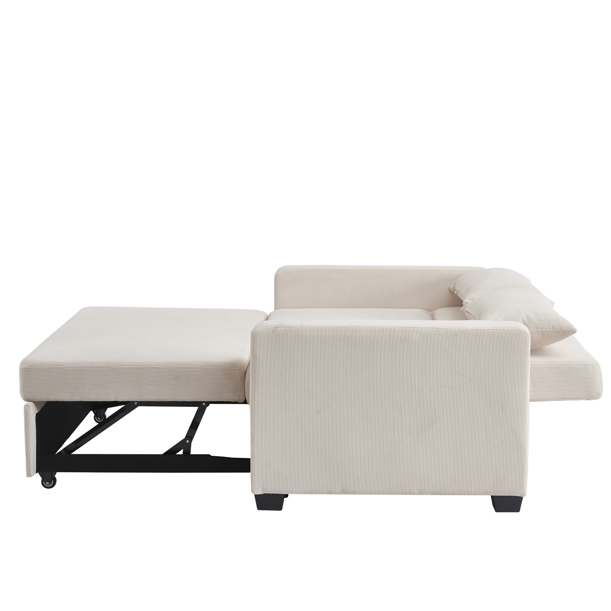 Divano lineare EVA convertibile in velluto a coste beige a 2 posti