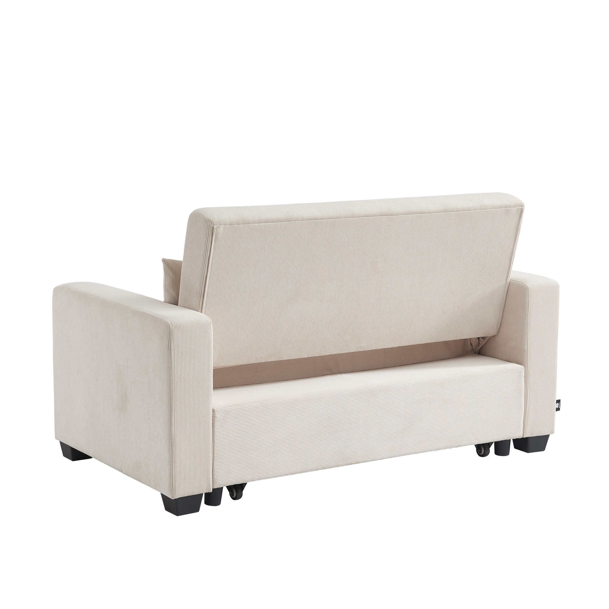 Divano letto diritto EVA a 2 posti in velluto a coste beige. Dimensioni del divano: 151 x 89,5 x 89,5 cm. Dimensioni della superficie di riposo: 188 x 118,5 cm