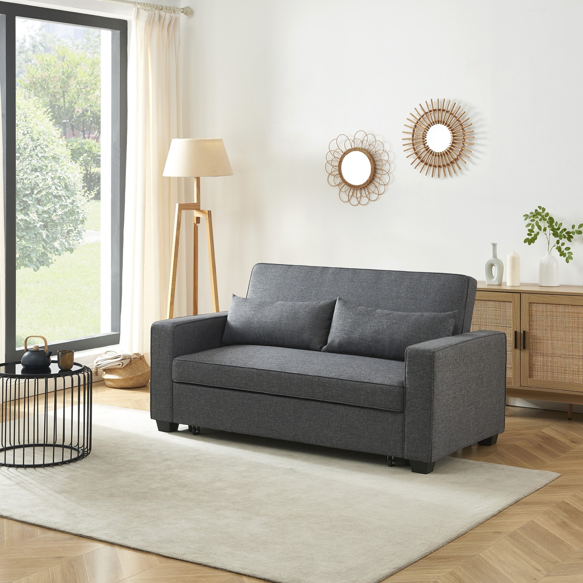 Divano lineare LENA trasformabile in tessuto grigio a 3 posti