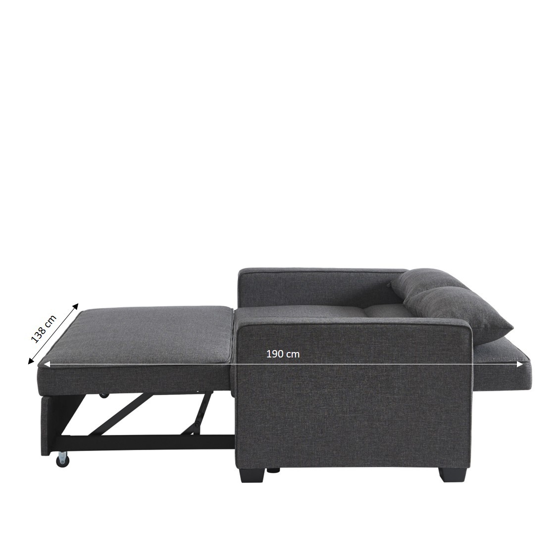 Divano letto lineare LENA a 3 posti in tessuto grigio. Dimensioni del divano: 170 x 91,5 x 89 cm. Dimensioni della superficie di riposo: 140 x 190 cm.