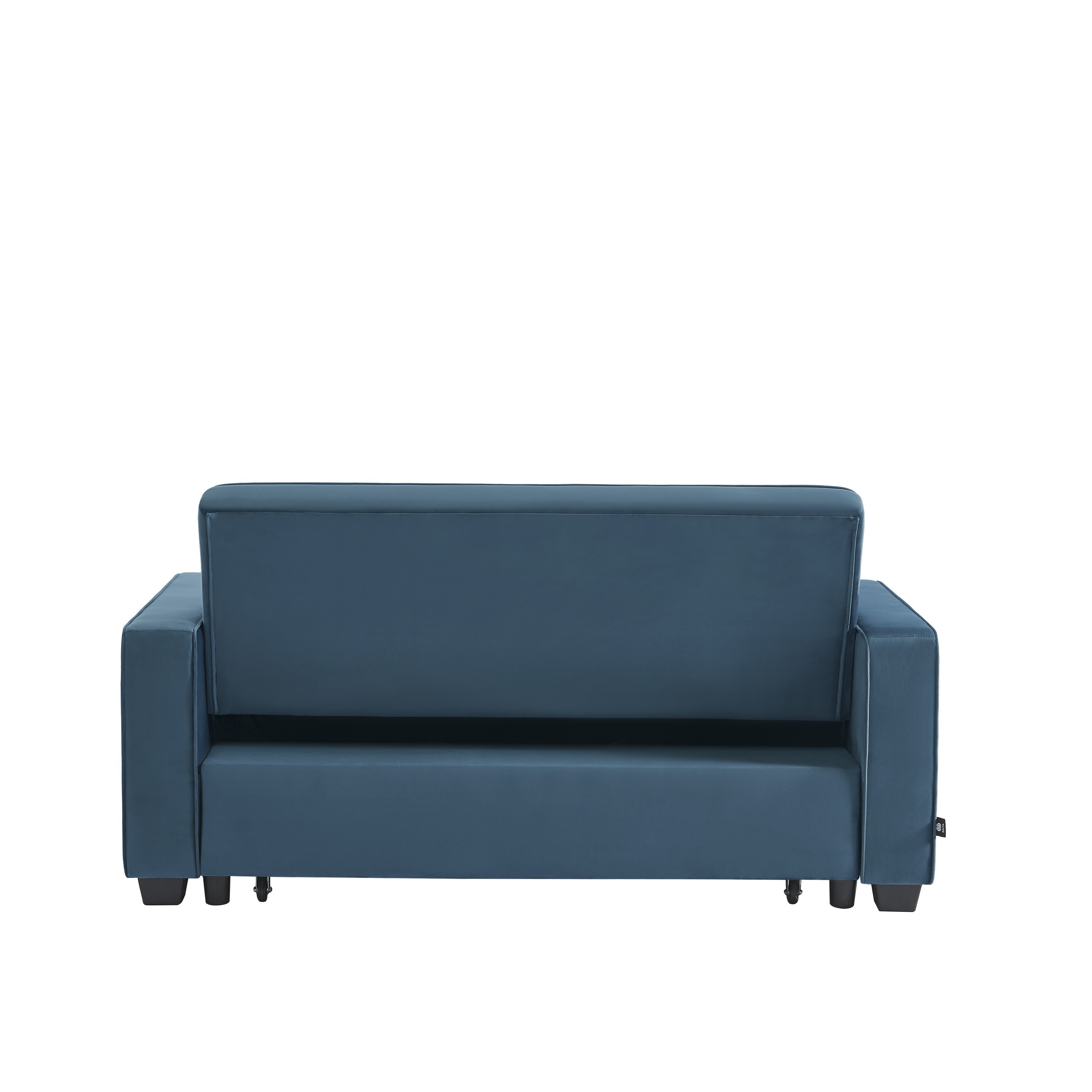 Divano lineare LENA trasformabile in velluto blu a 3 posti