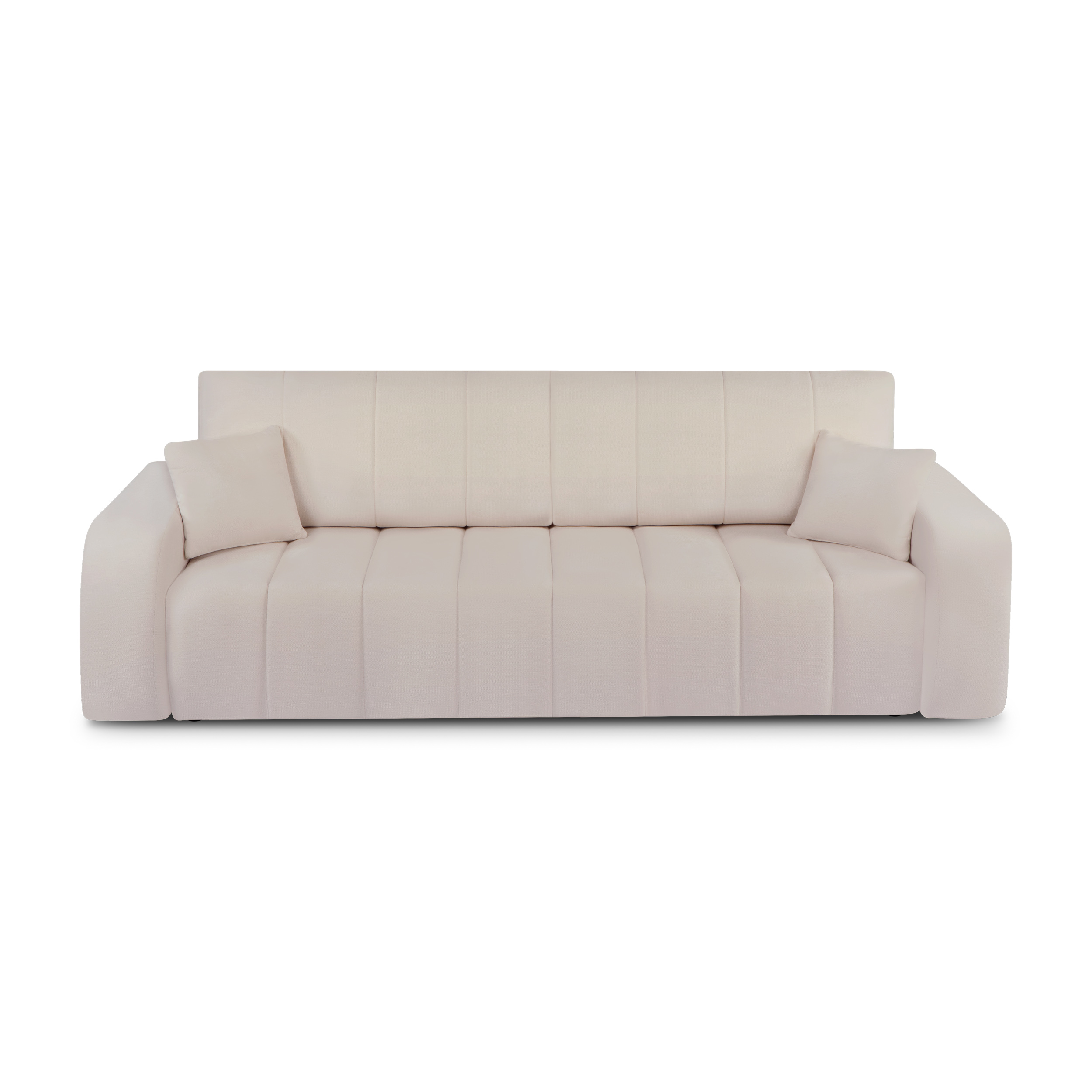 Lasciatevi conquistare dal divano diritto BELEM, 3 posti, che unisce comfort e funzionalità. Il rivestimento in tessuto ciniglia conferisce morbidezza ed eleganza, mentre la funzione convertibile lo rende un alleato pratico per la vita quotidiana.
