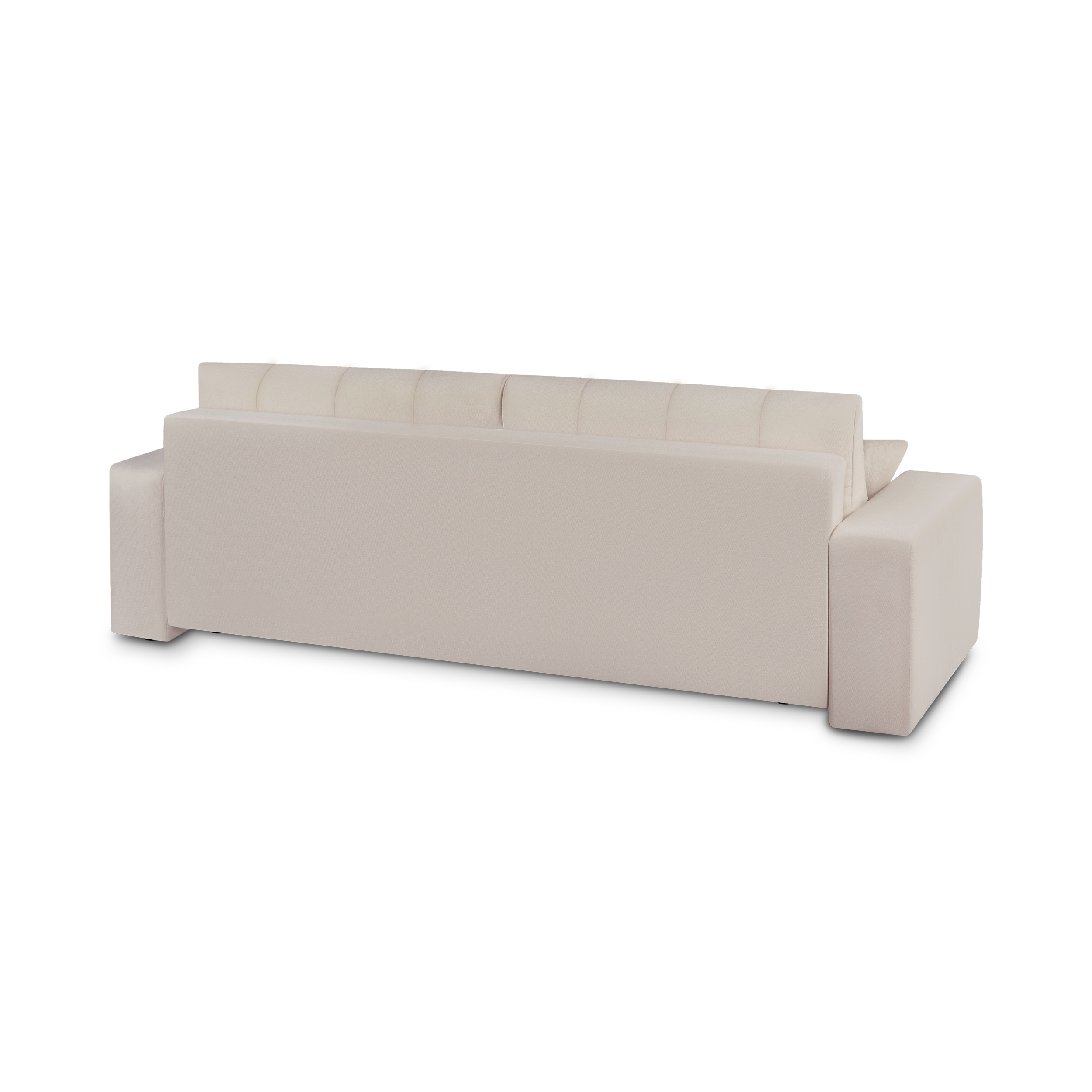 Sotto la seduta si nasconde un ampio vano contenitore, ideale per tenere a portata di mano plaid, cuscini o biancheria da letto. La sua struttura, che combina legno di pino e pannelli di particelle, garantisce una buona robustezza nel tempo, mentre la schiuma offre un comfort di seduta solido ed equilibrato per tutti i giorni. Con i suoi piedini discreti, i suoi 248 cm di lunghezza e il suo design intramontabile, il divano BELEM unisce stile e funzionalità con semplicità.