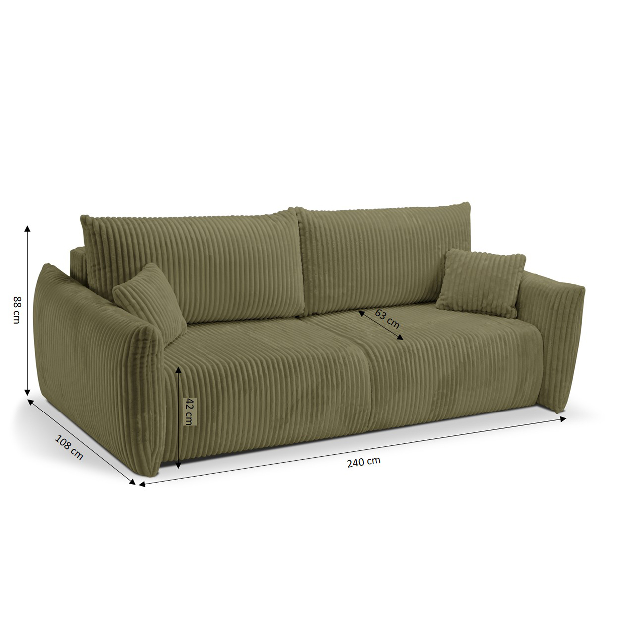 Divano letto GLORIA 3 posti in velluto a coste verde salvia