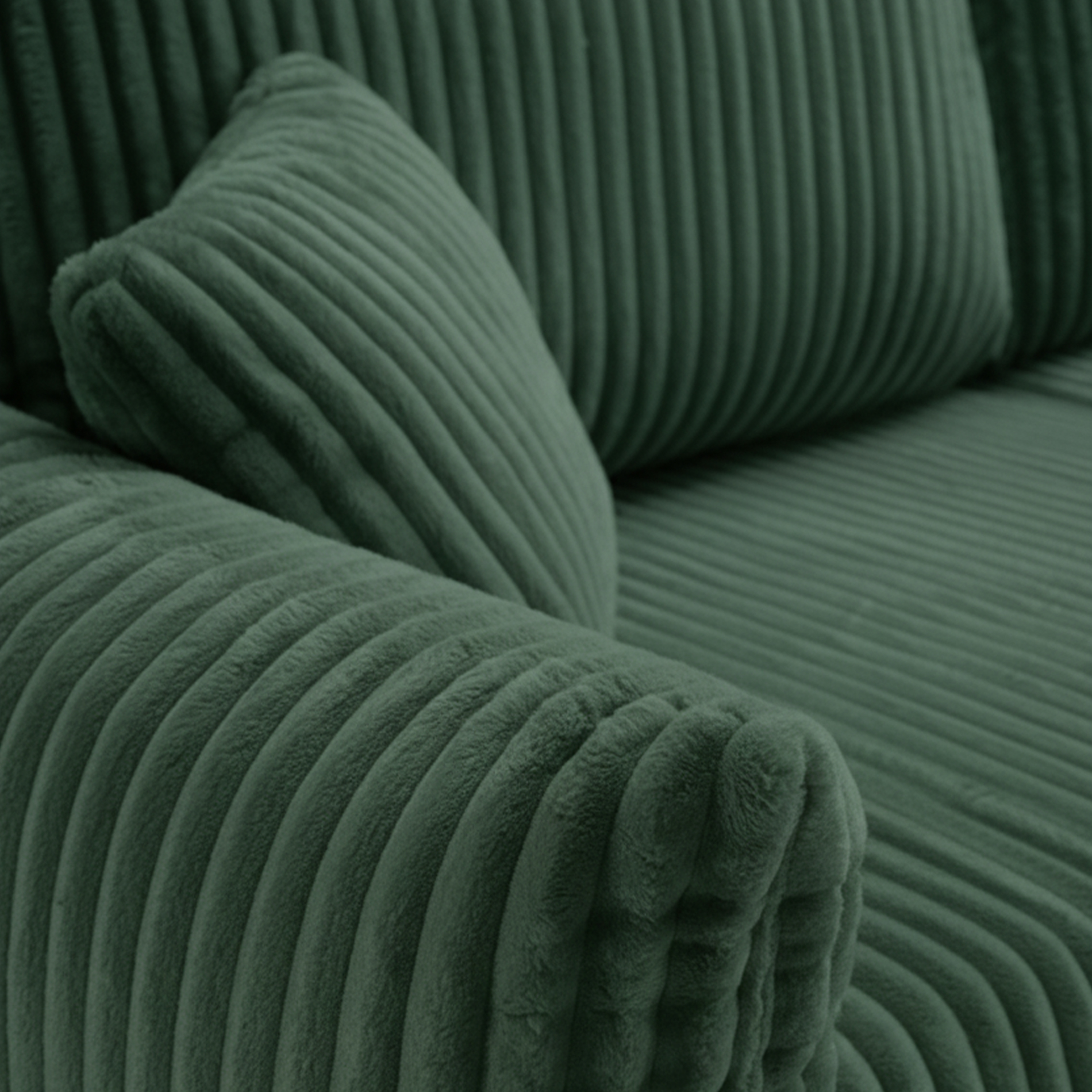 Rivestito in morbido velluto a coste, il divano GLORIA invita al relax. La sua texture soffice e il suo tocco confortevole creano un'atmosfera accogliente, che invita a lasciarsi andare. Questo divano trova il suo posto in un arredamento essenziale, naturale o contemporaneo e i suoi due cuscini coordinati ne rafforzano l'aspetto accogliente. Disponibile in diversi colori, il divano GLORIA si adatta a tutti i vostri desideri di arredamento.