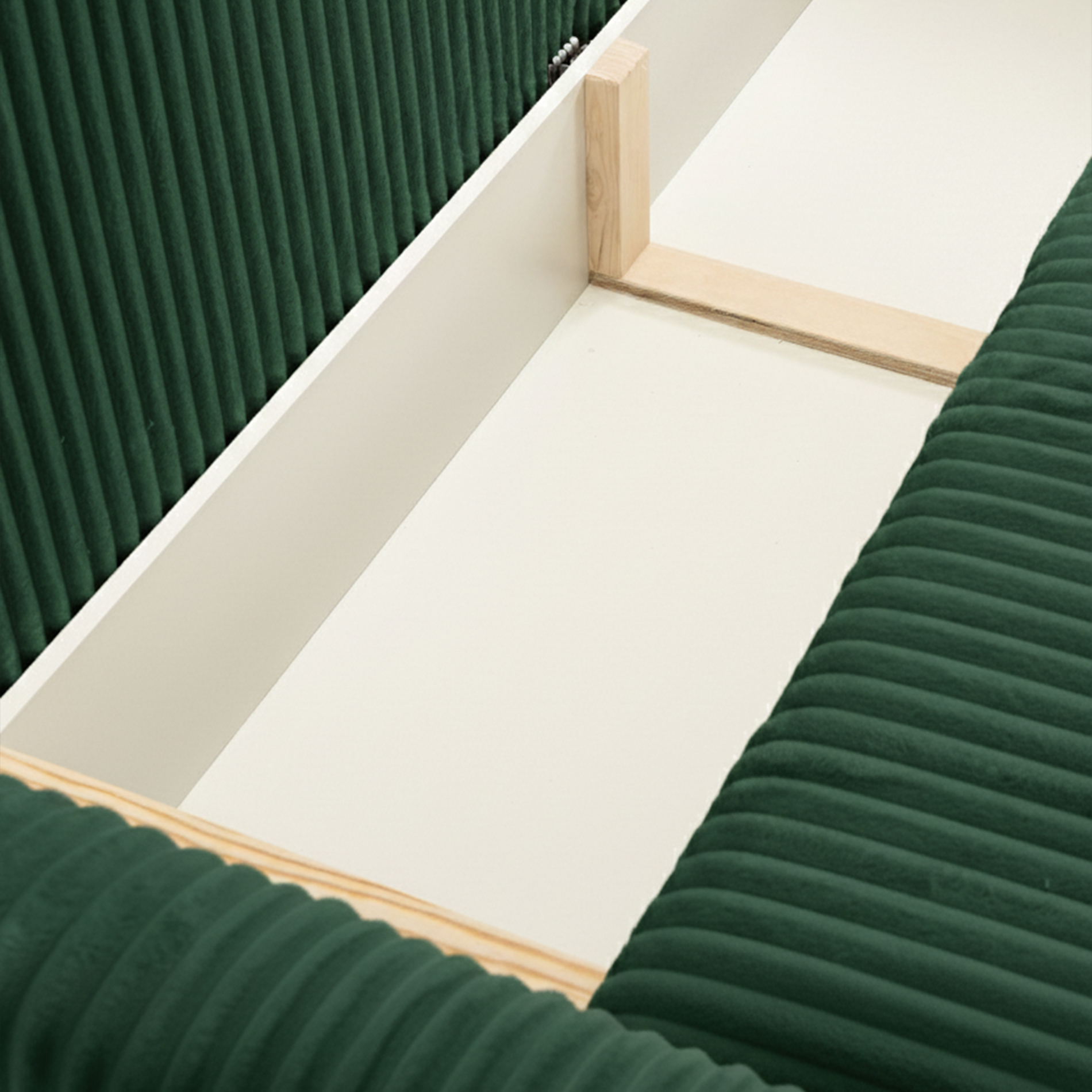 Progettato per soddisfare le vostre esigenze quotidiane, il divano GLORIA nasconde sotto la seduta un ampio vano contenitore: ideale per riporre biancheria da letto, cuscini o plaid. La struttura in legno di pino e pannelli di particelle garantisce robustezza e durata, mentre la seduta assicura un comfort duraturo. Con i suoi 6 piedini discreti e le linee armoniose, coniuga perfettamente stile e funzionalità. Prodotto in Europa, unisce savoir-faire, qualità e sostenibilità.
