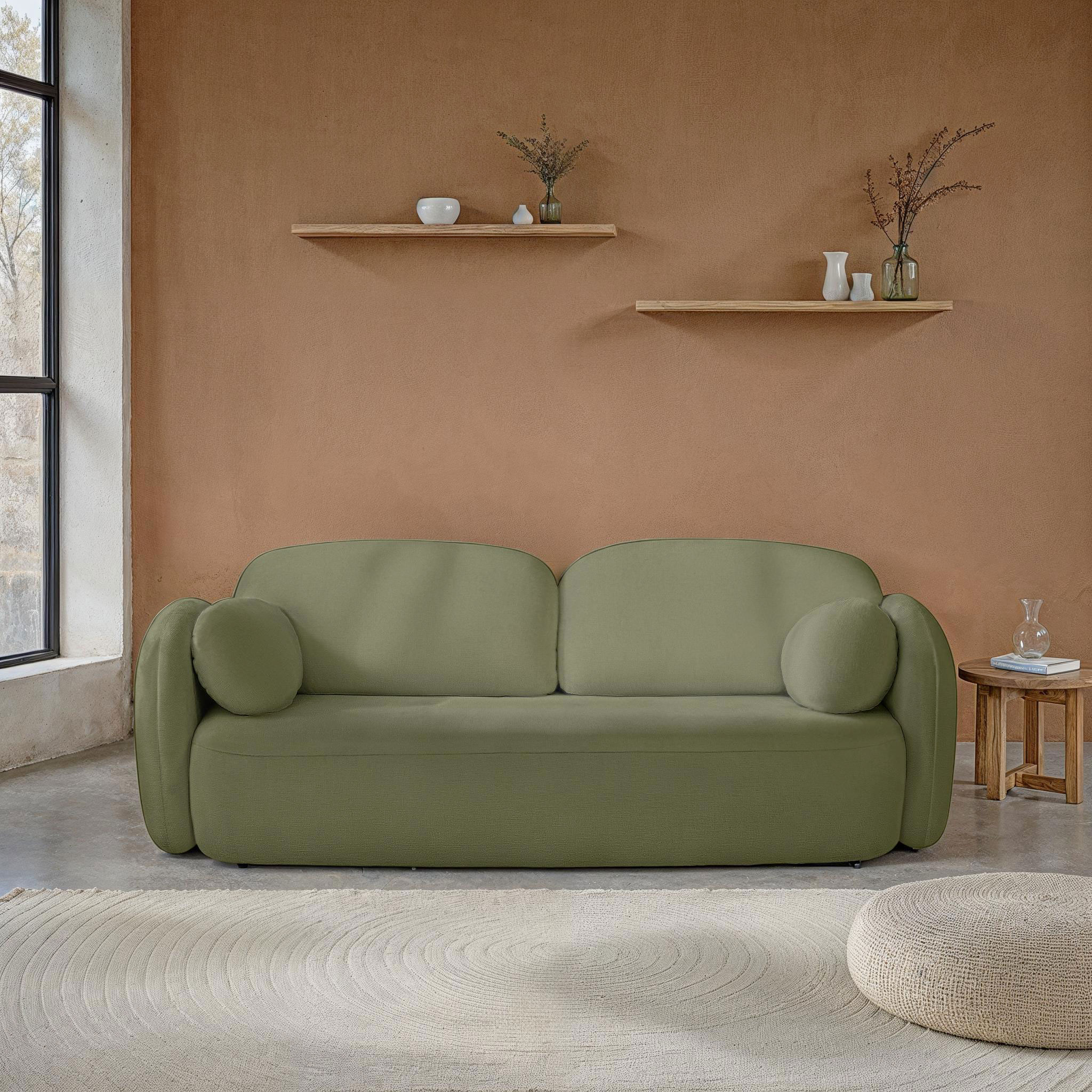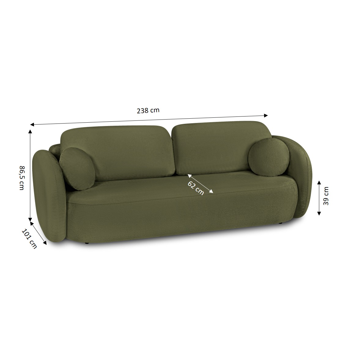 Divano letto CARLOTTA 3 posti in tessuto ciniglia verde kaki