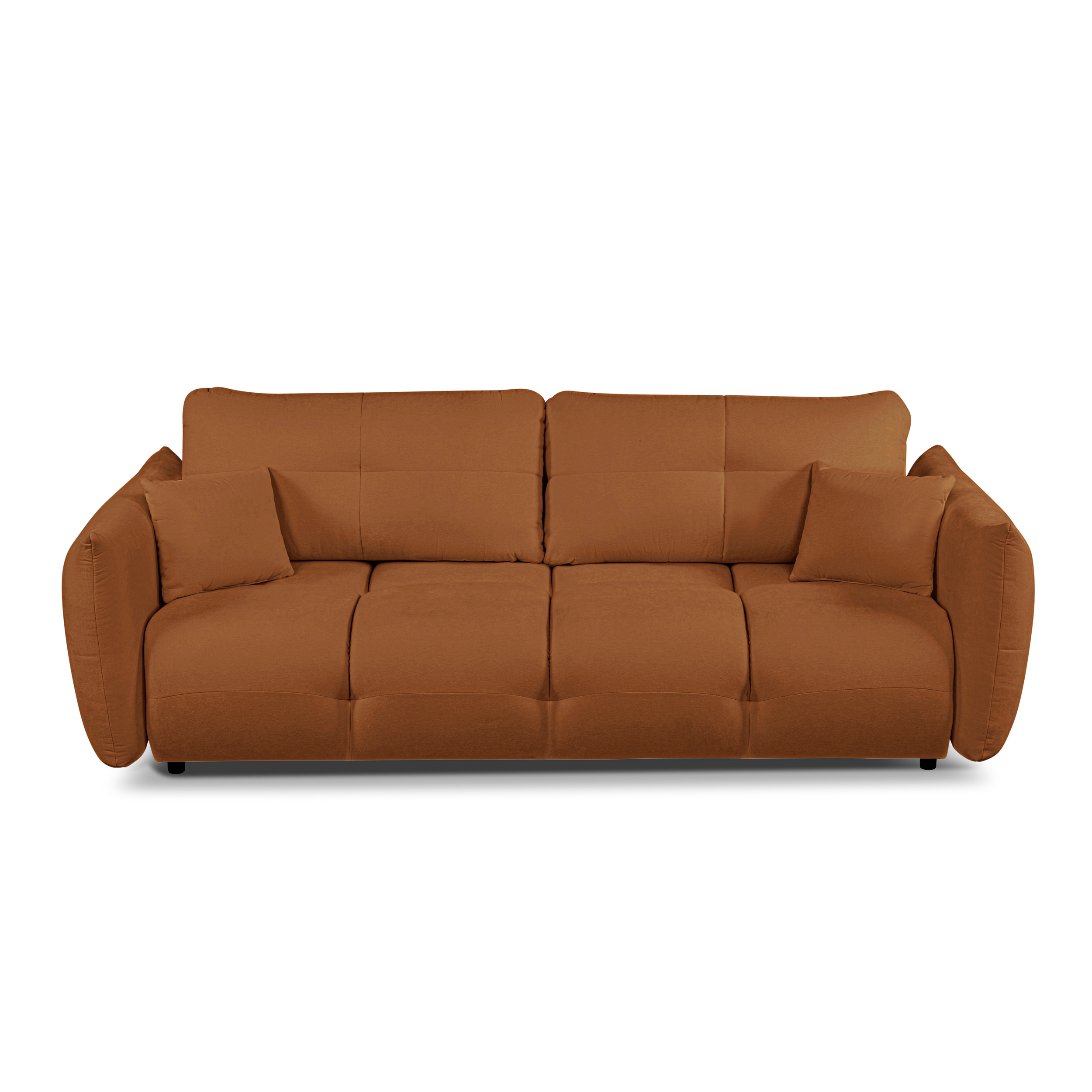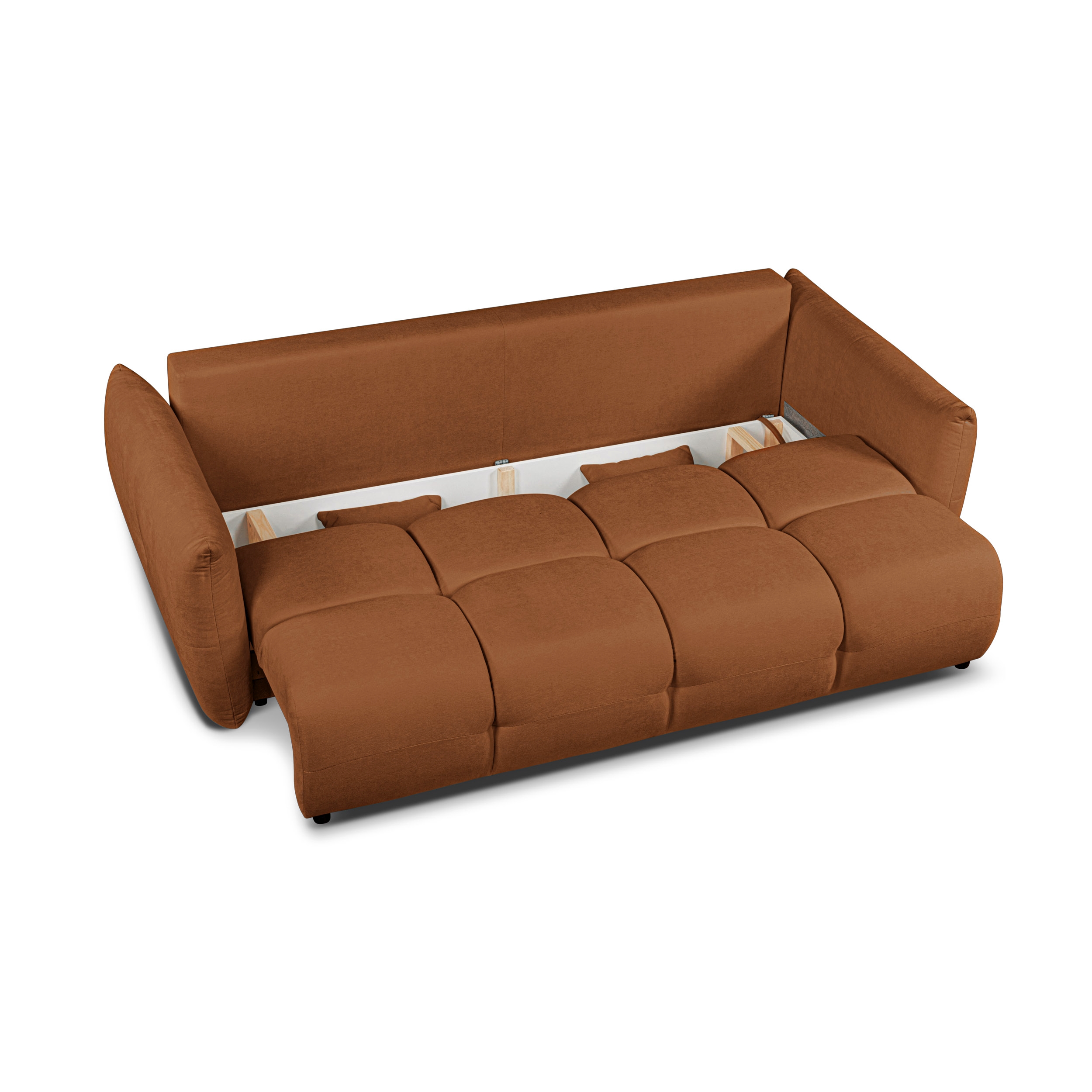 Divano letto COMO 3 posti in tessuto ciniglia cognac