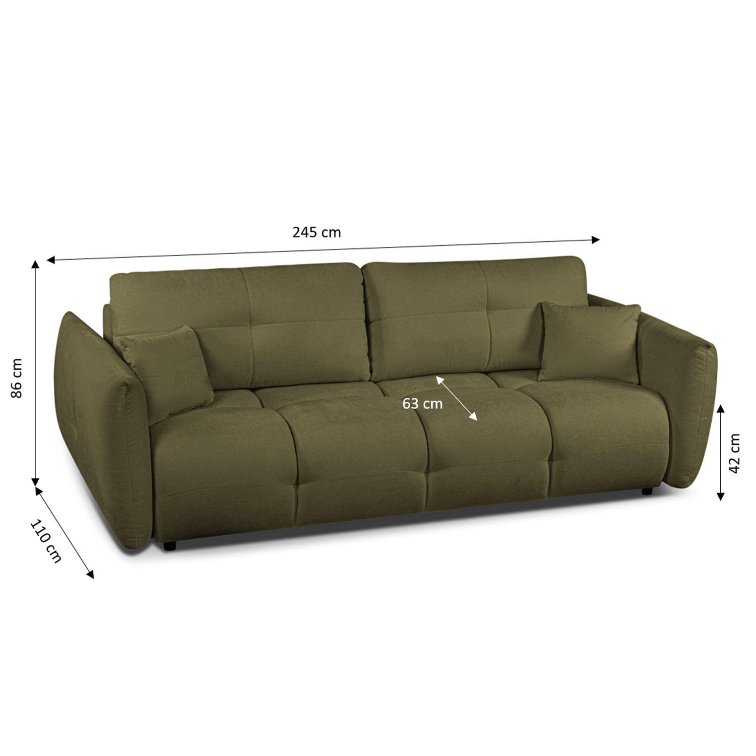 Progettato per spazi piccoli e grandi, questo divano a 3 posti nasconde un ampio vano contenitore sotto la seduta, ideale per riporre coperte, cuscini o biancheria per la casa.