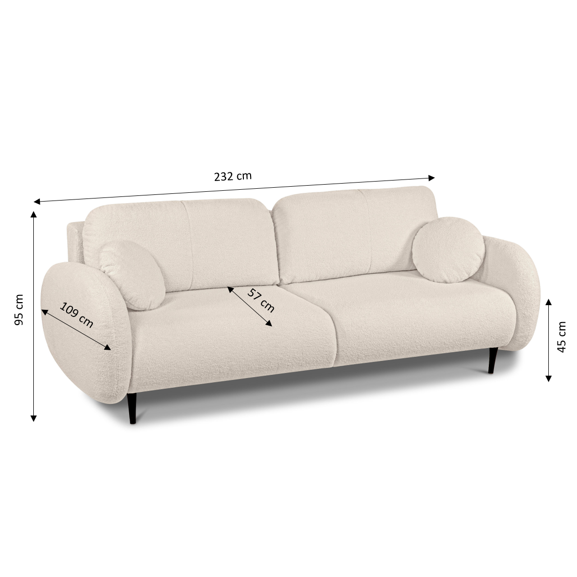 Divano letto CARINO 3 posti in tessuto bouclé grezzo