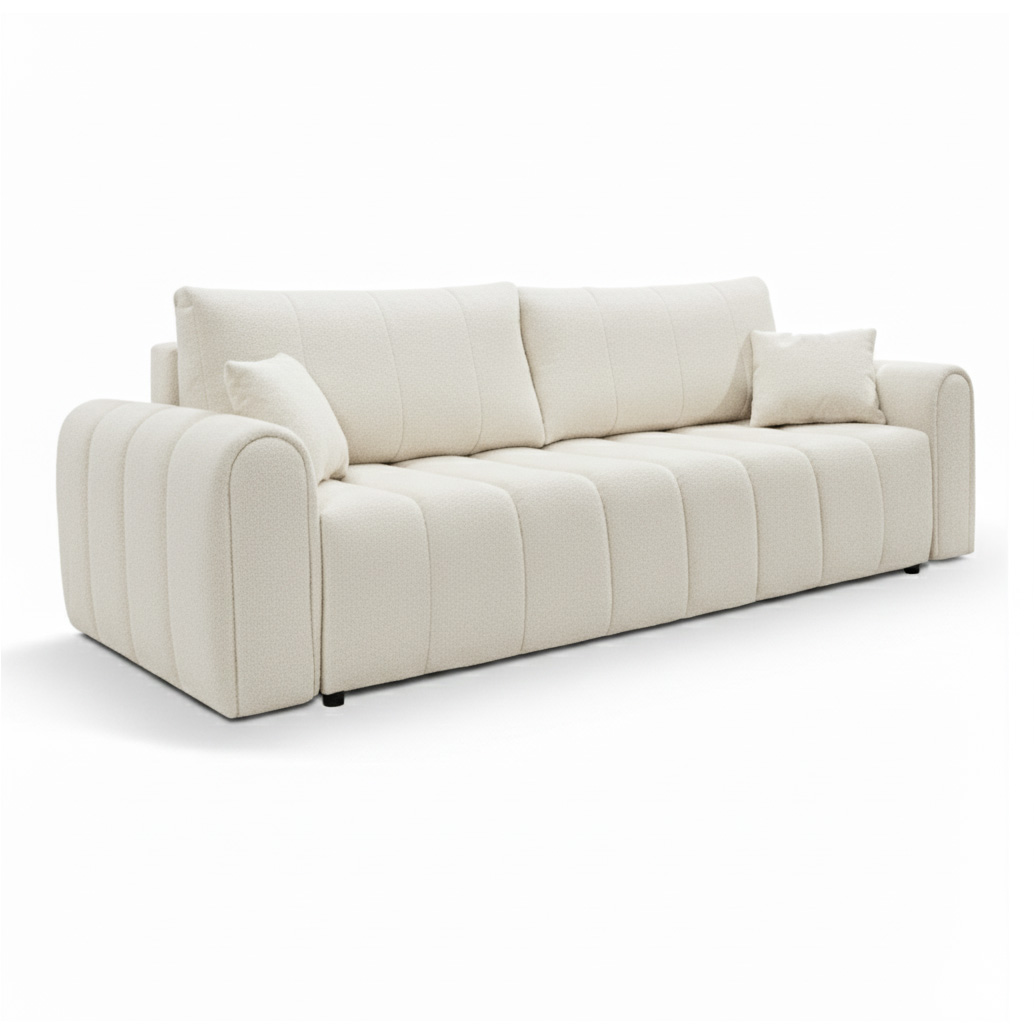 Divano letto GIORGIO 3 posti in tessuto bouclé grezzo