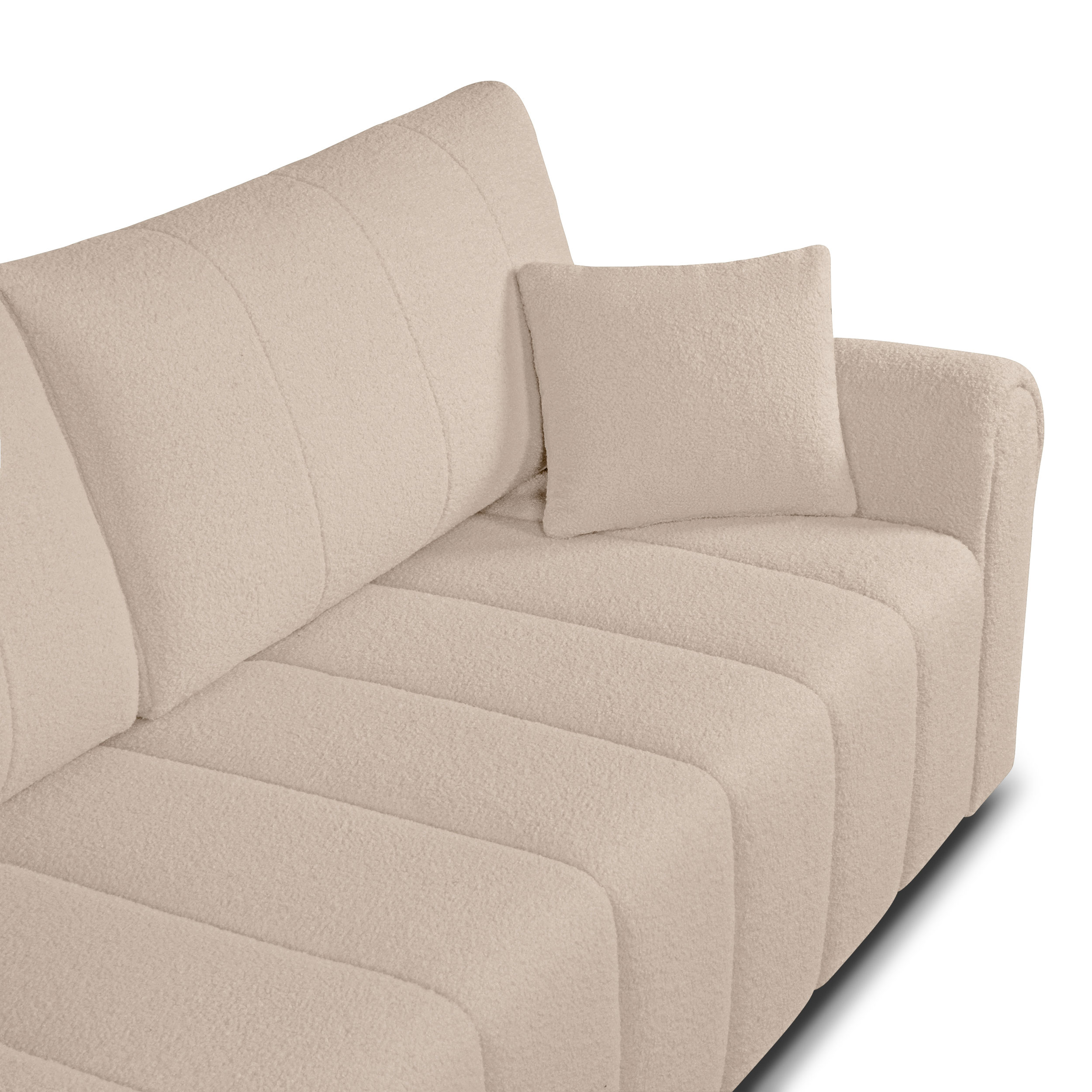 Con il suo morbido tessuto bouclé, la funzione convertibile e il vano contenitore integrato, il divano GIORGIO è l'alleato perfetto per un salotto accogliente e pratico. Prodotto in Europa, coniuga comfort e stile nella vita di tutti i giorni.