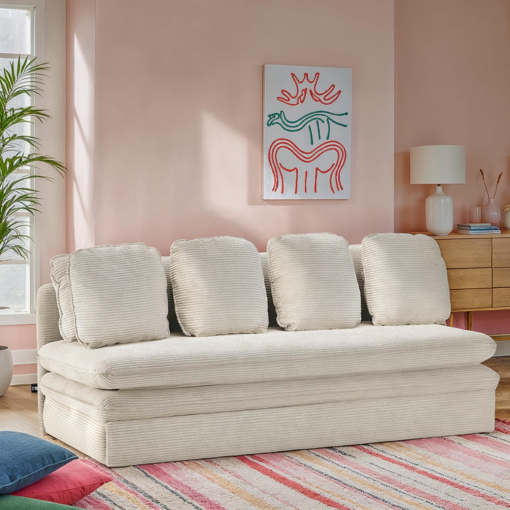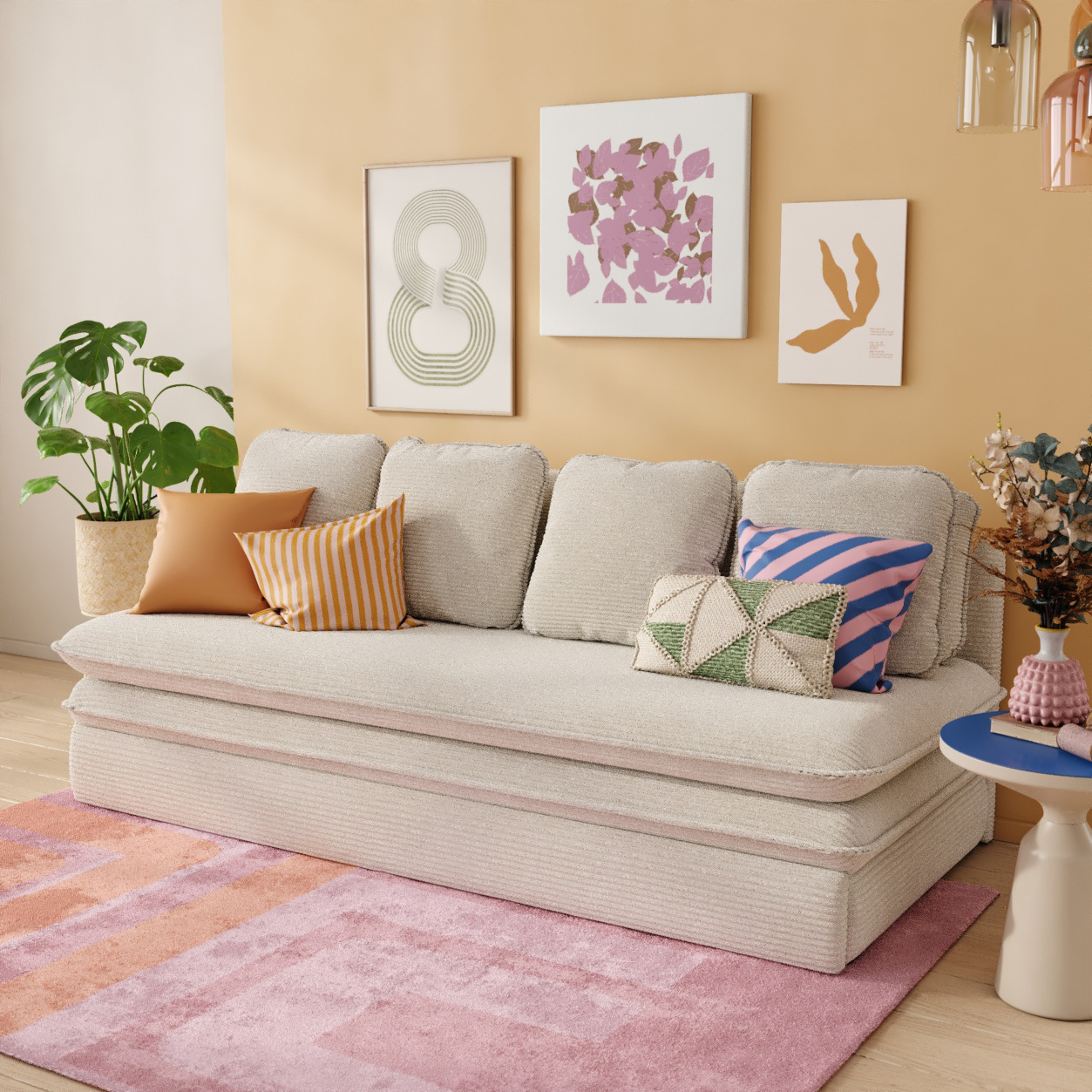 Progettata per soddisfare le esigenze degli interni di piccole dimensioni, la panca convertibile NOMA si adatta perfettamente a un monolocale, una camera degli ospiti o un salotto compatto. Con le sue dimensioni ottimizzate e la sua funzione convertibile, consente di risparmiare spazio senza rinunciare al comfort. In un solo gesto, si trasforma in un letto aggiuntivo per 2 persone, pratico per ospitare familiari e amici in visita o per creare un angolo notte nel vostro soggiorno.