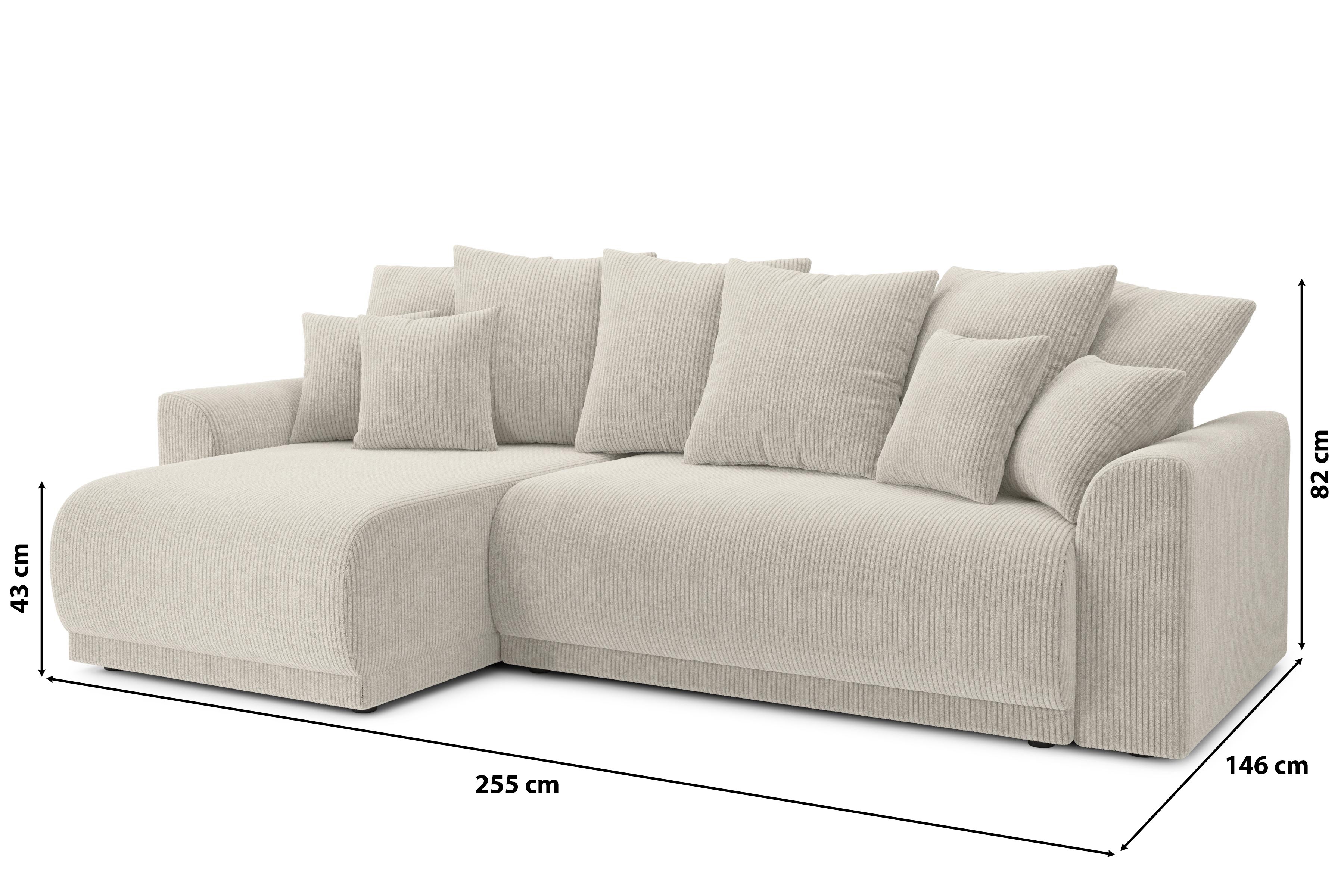 Divano letto angolare NOVA a 4 posti in velluto a coste beige