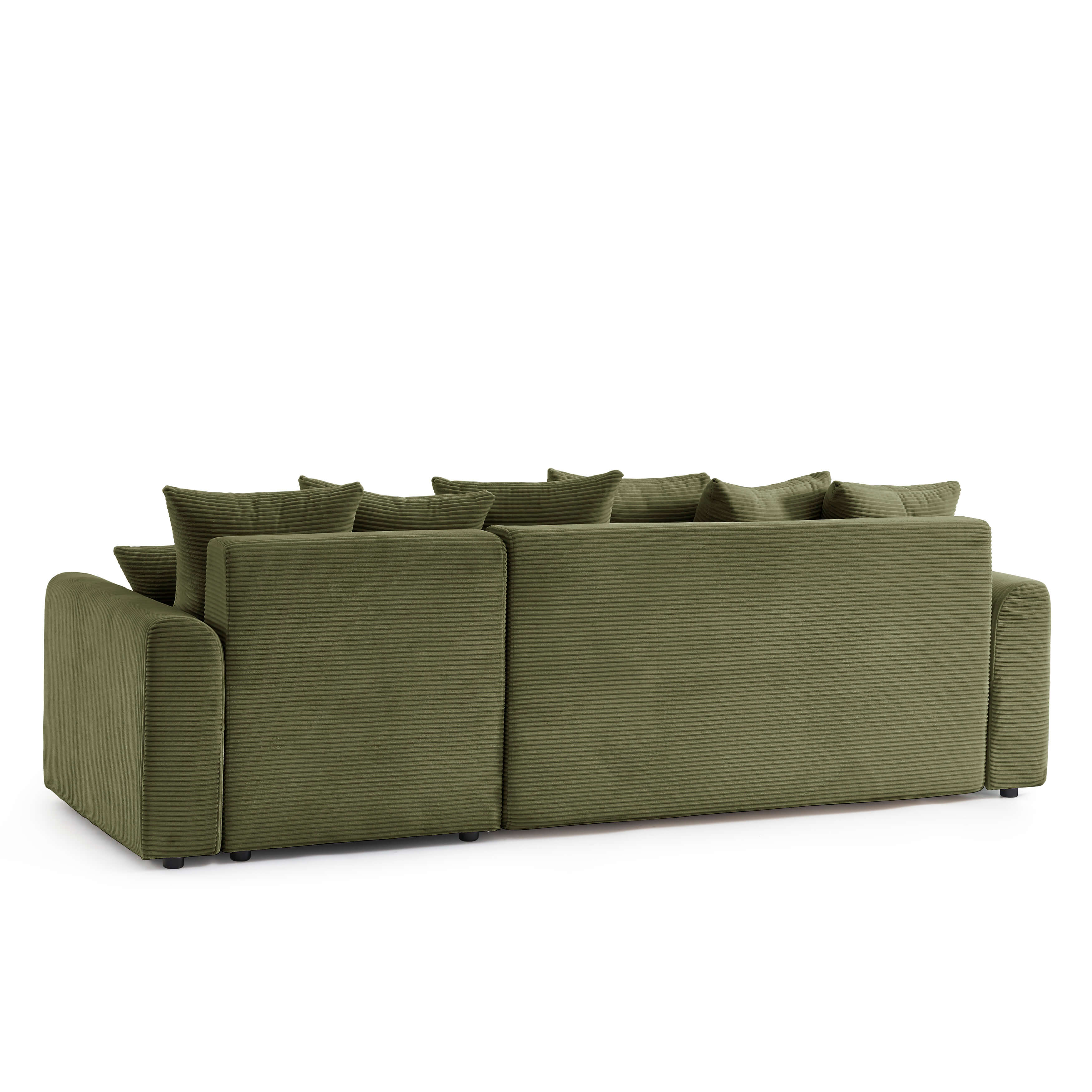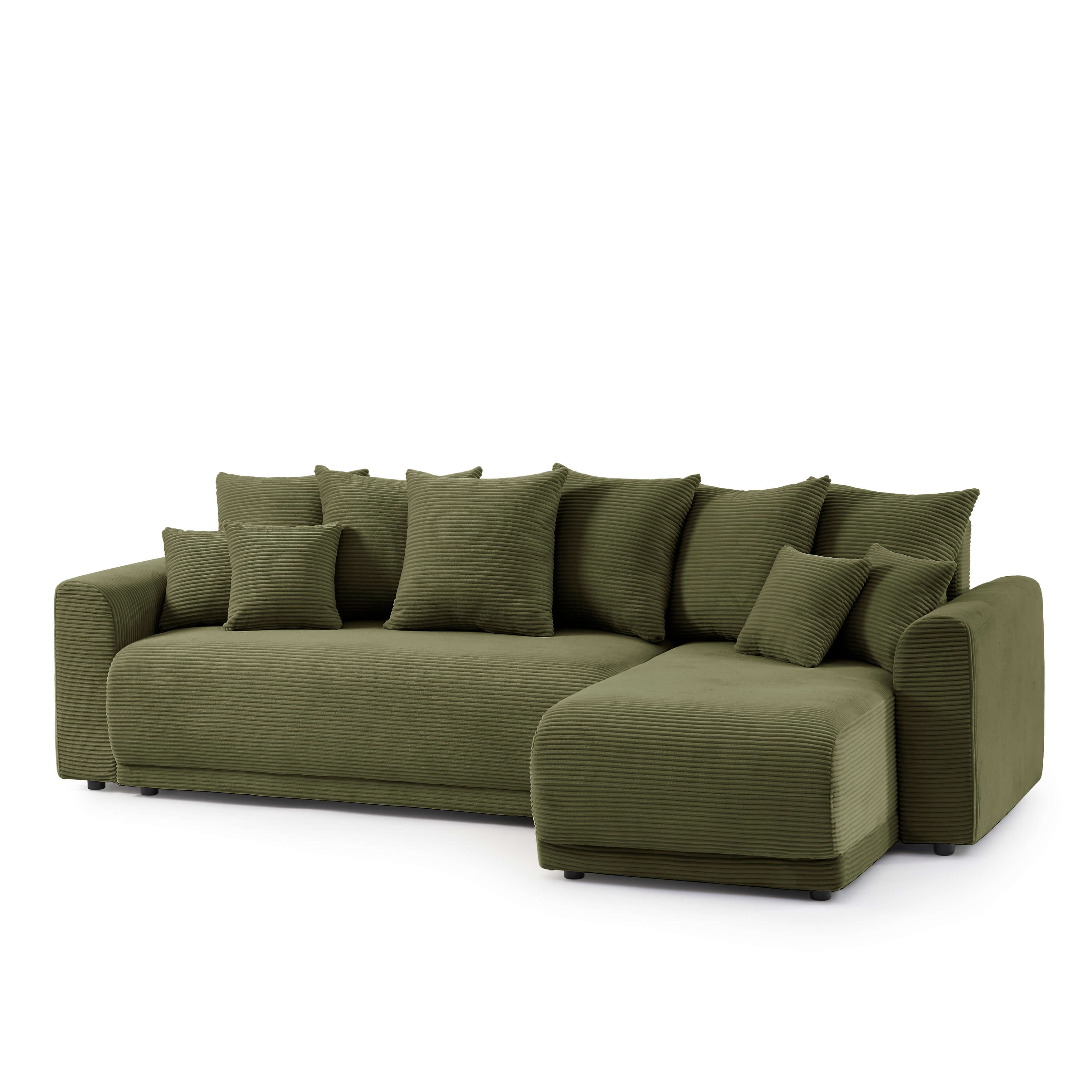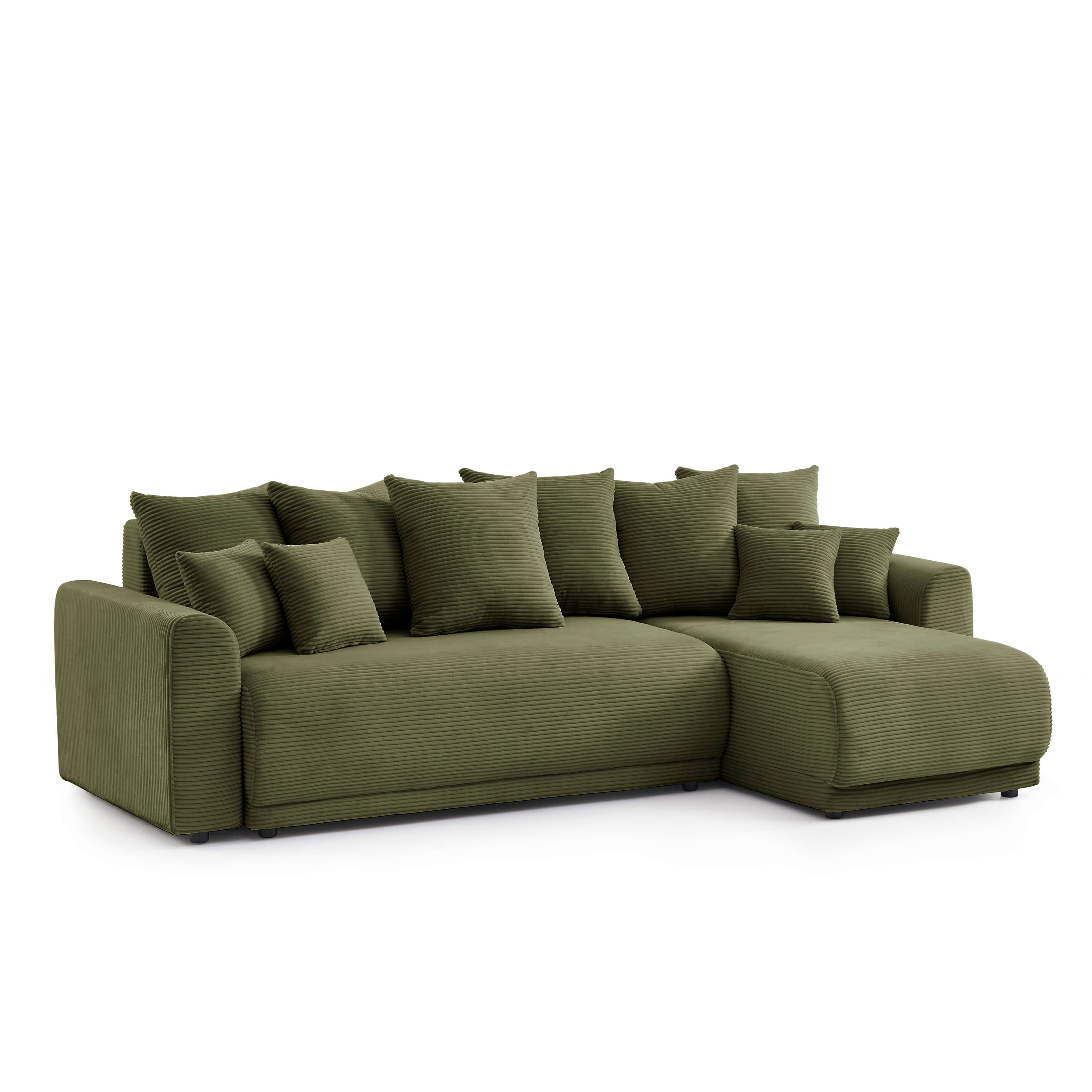 Divano angolare convertibile e reversibile a 4 posti SOLINE in velluto a coste verde